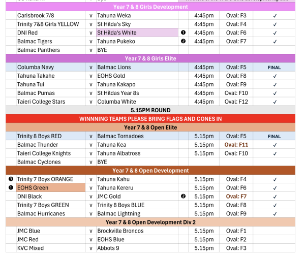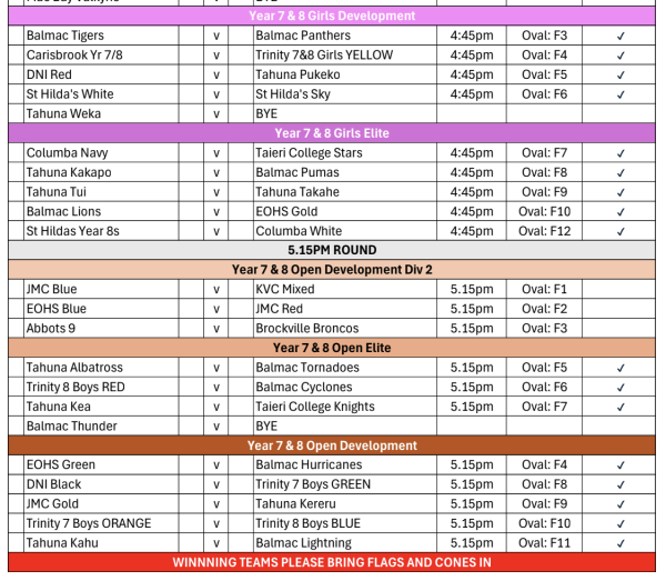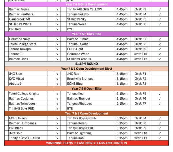 Touch draw for final games: Thursday 27th November: