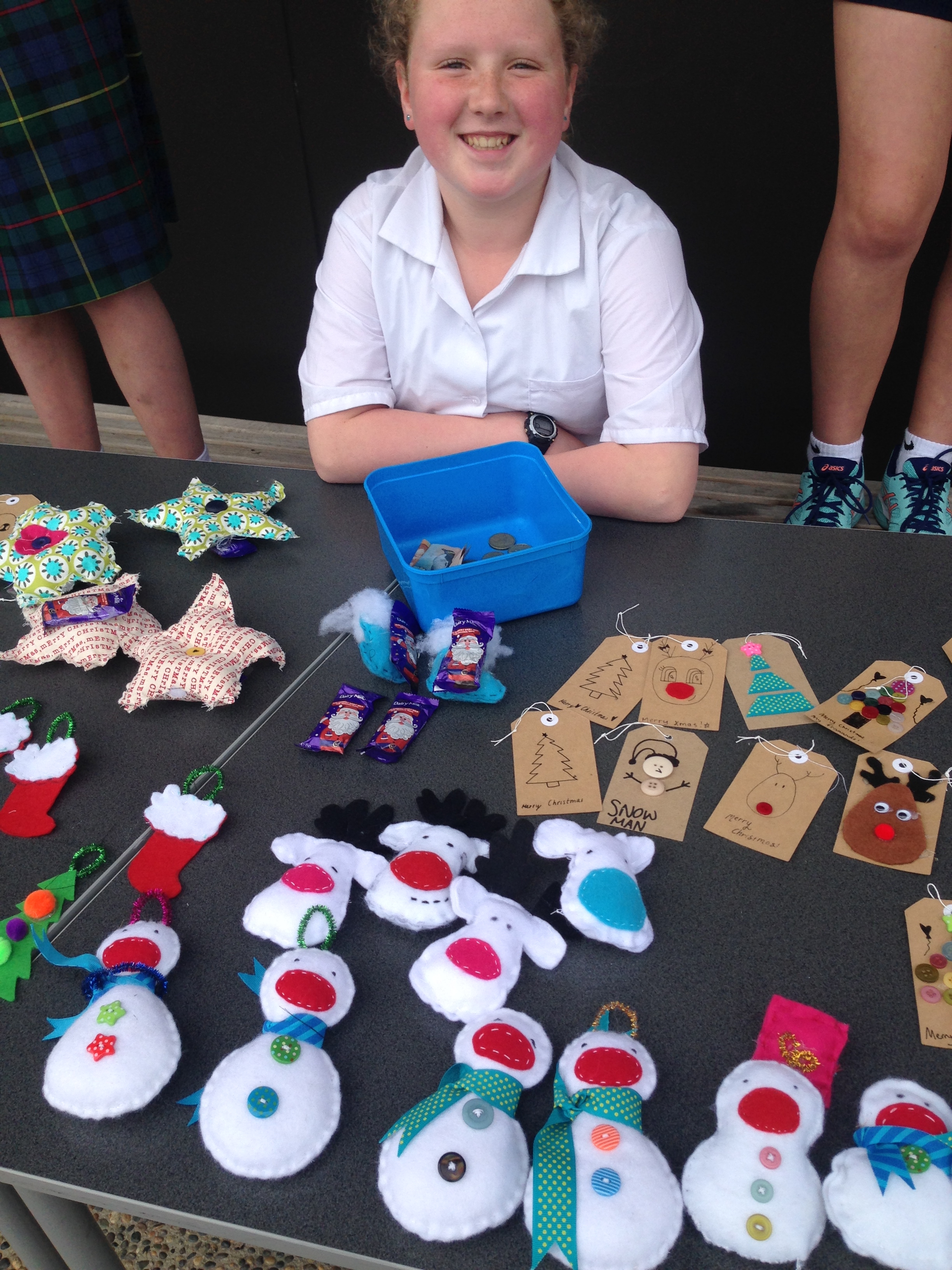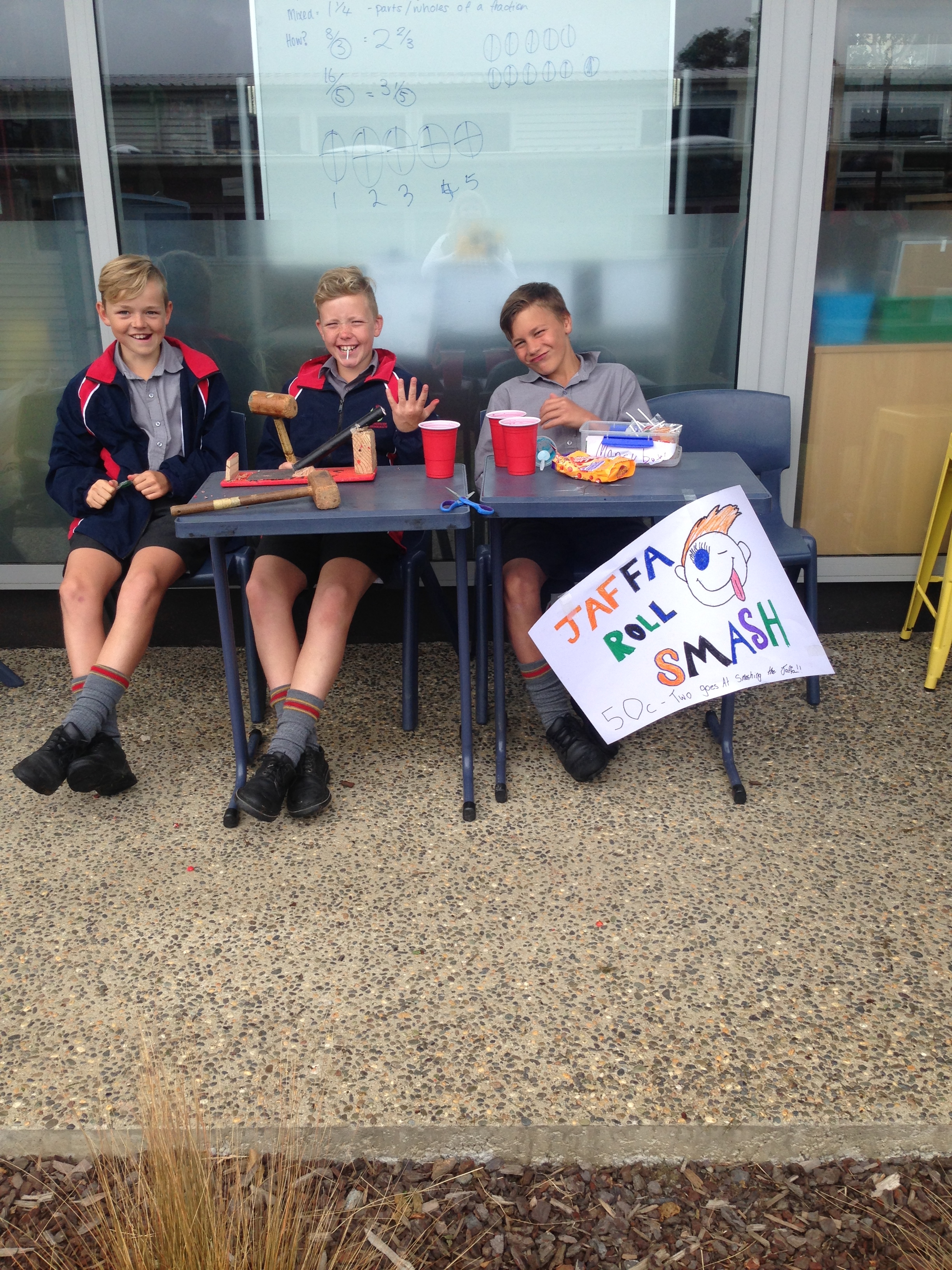 After a lot of consideration we had a plan of what stalls we were going to hold. The stalls we held were the following; baking stall, sherbet stall, white elephant stall, handmade Christmas craft stall, lucky number table stall, guess how many chocolates in the box stall, guess how many lollies in the jar stall, American hot dog stall and a jaffa smash stall. We also had many fun games at the fair including shoot the goal, shot for pops and dunk the teacher.