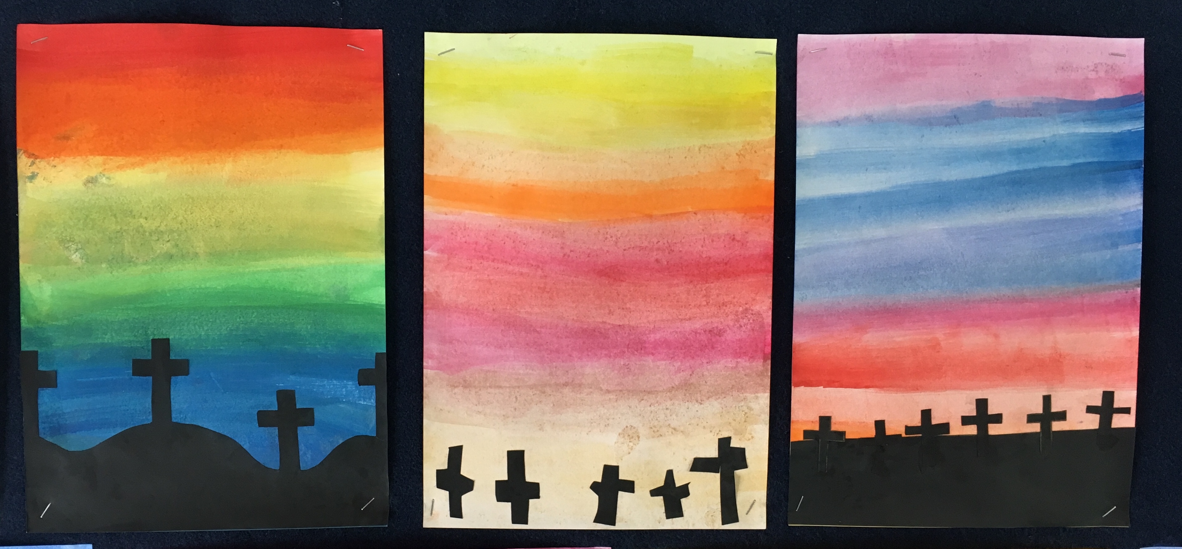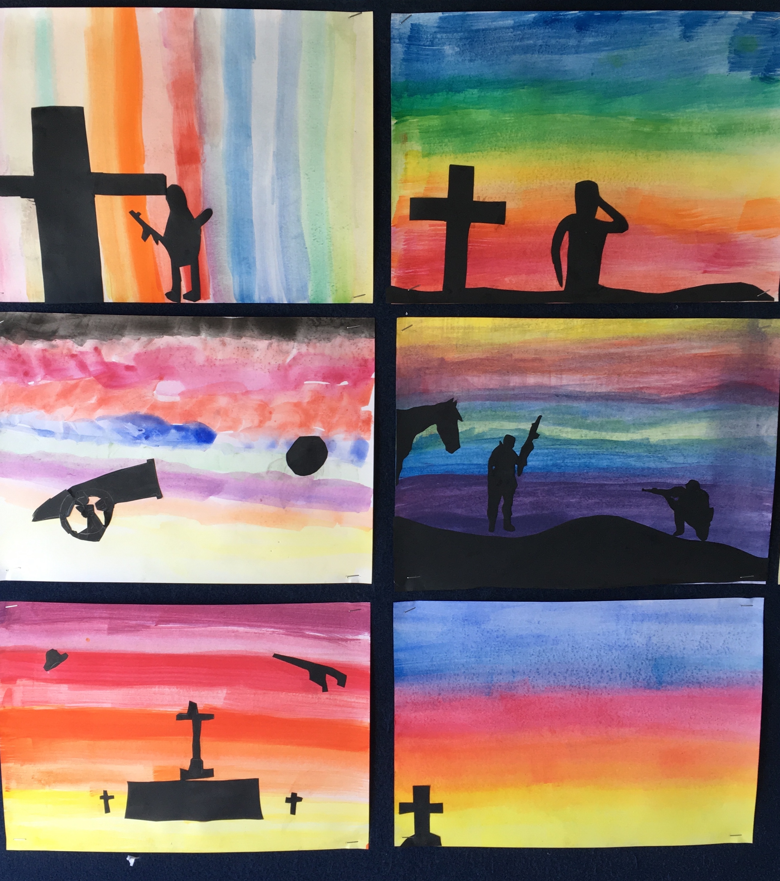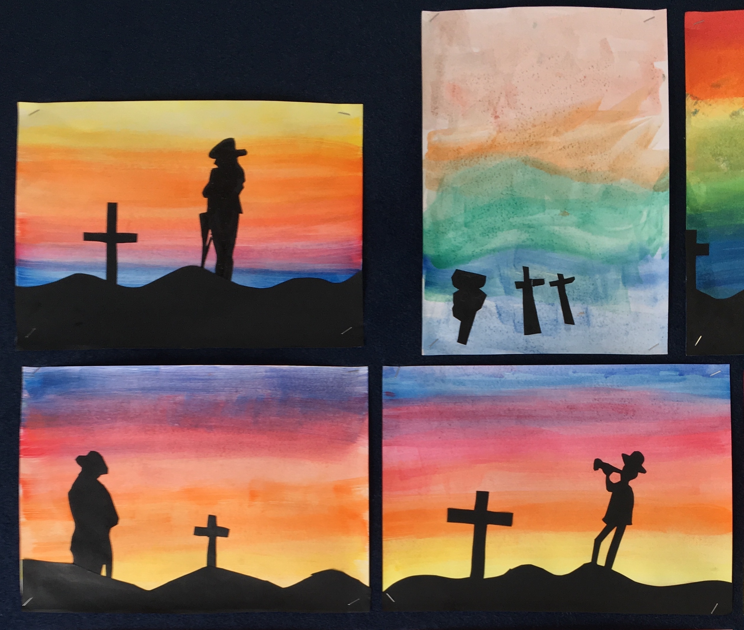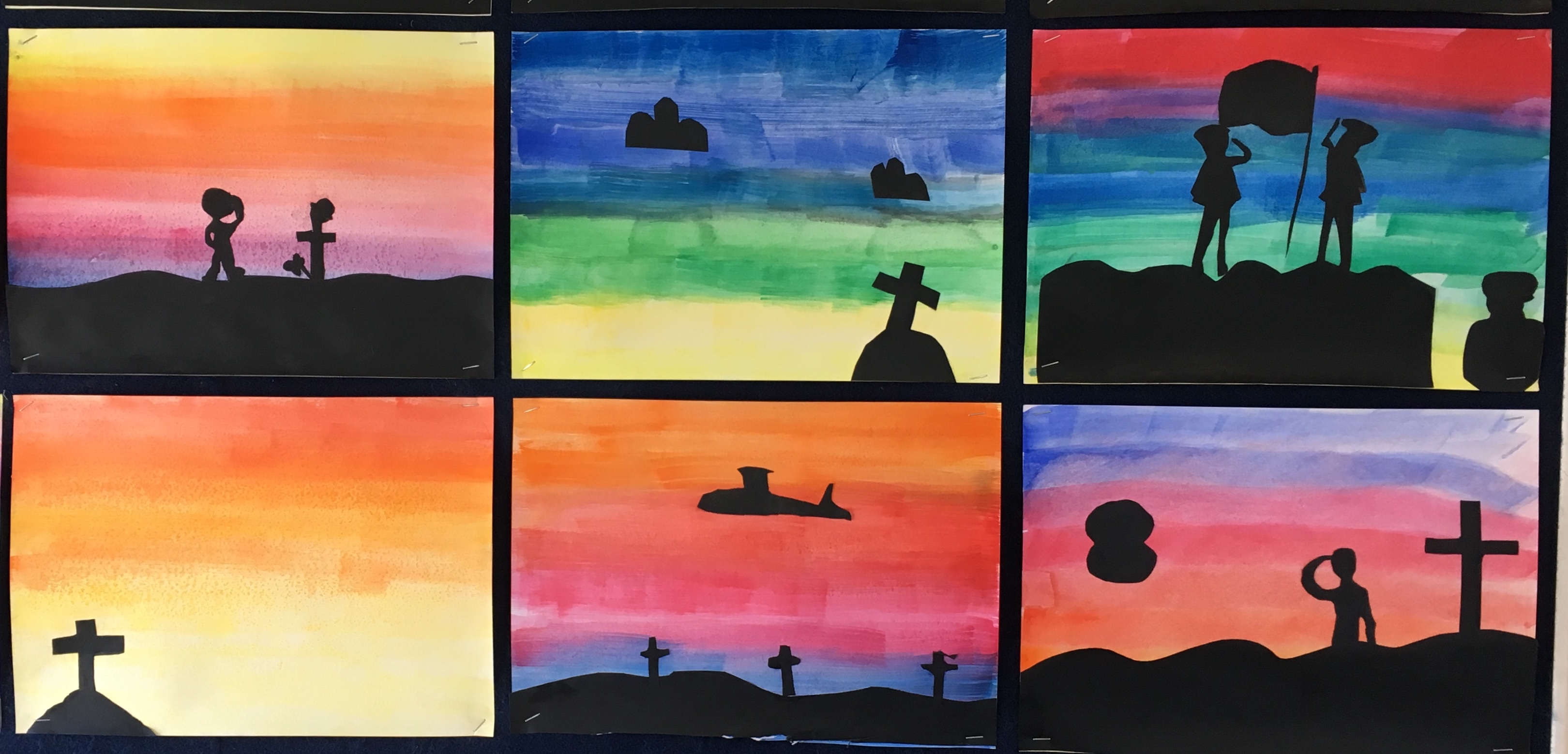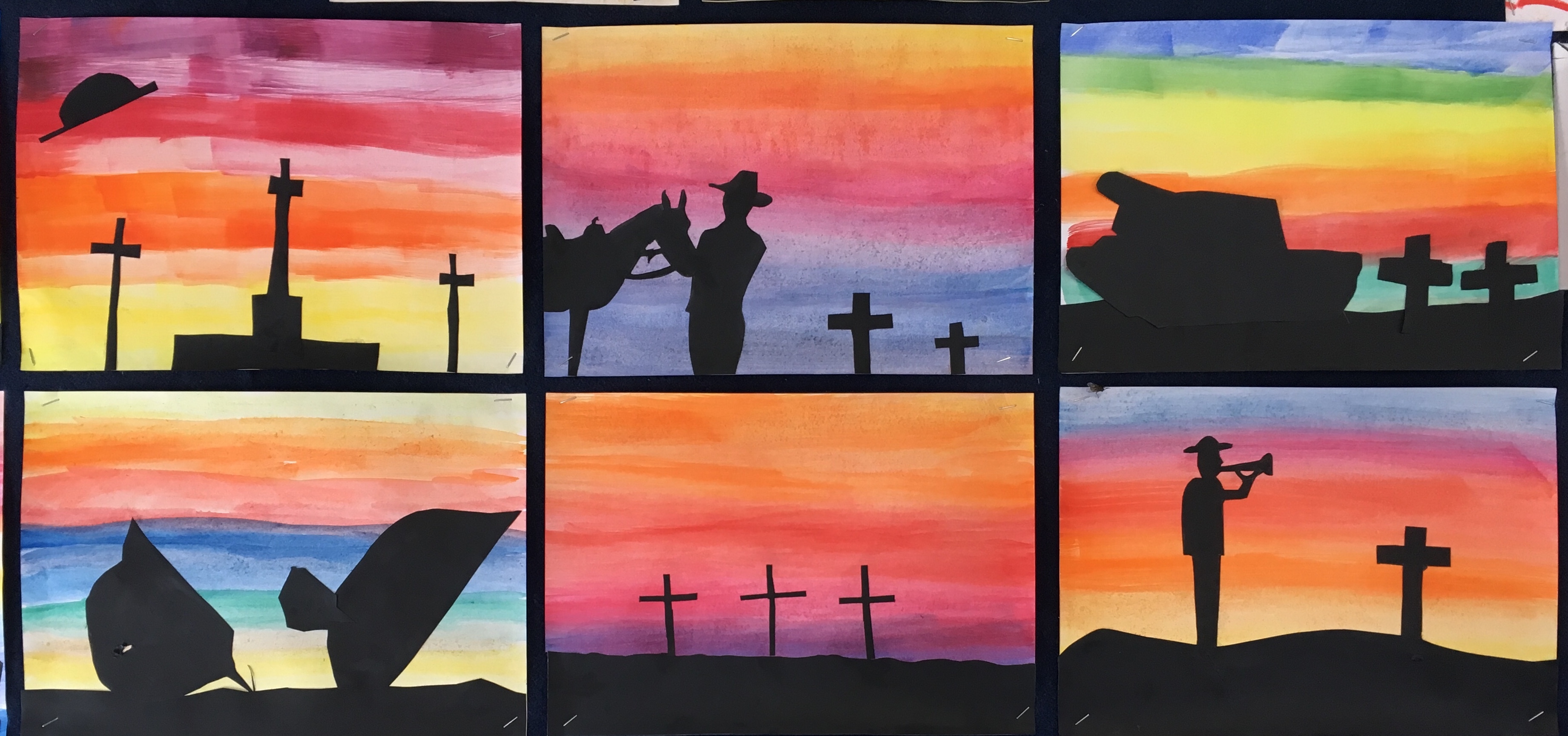 We read stories and watched clips about different European campaigns and looked at how it impacted us as a nation. This was then the inspiration for our Gallipoli themed silhouette artwork.