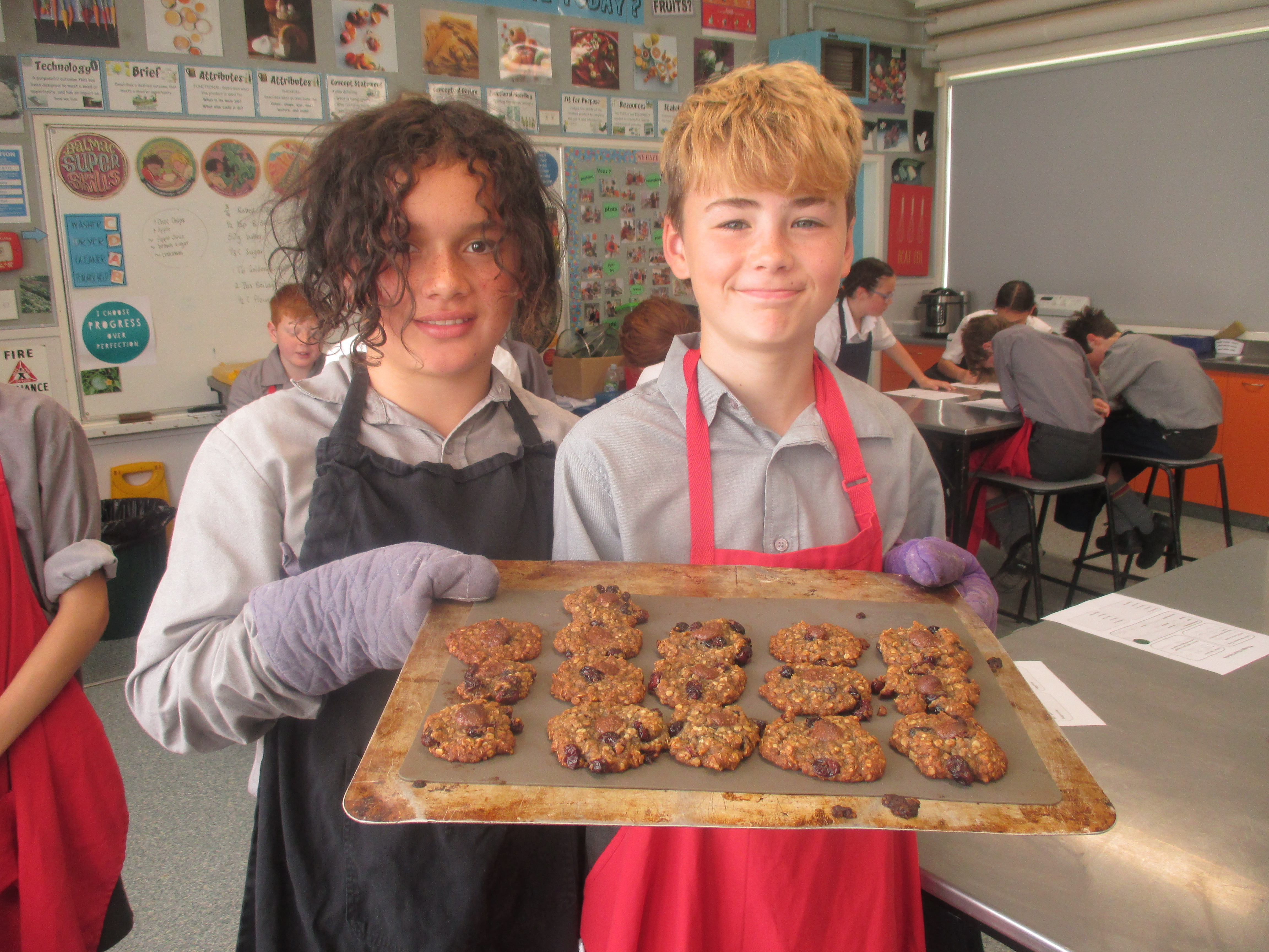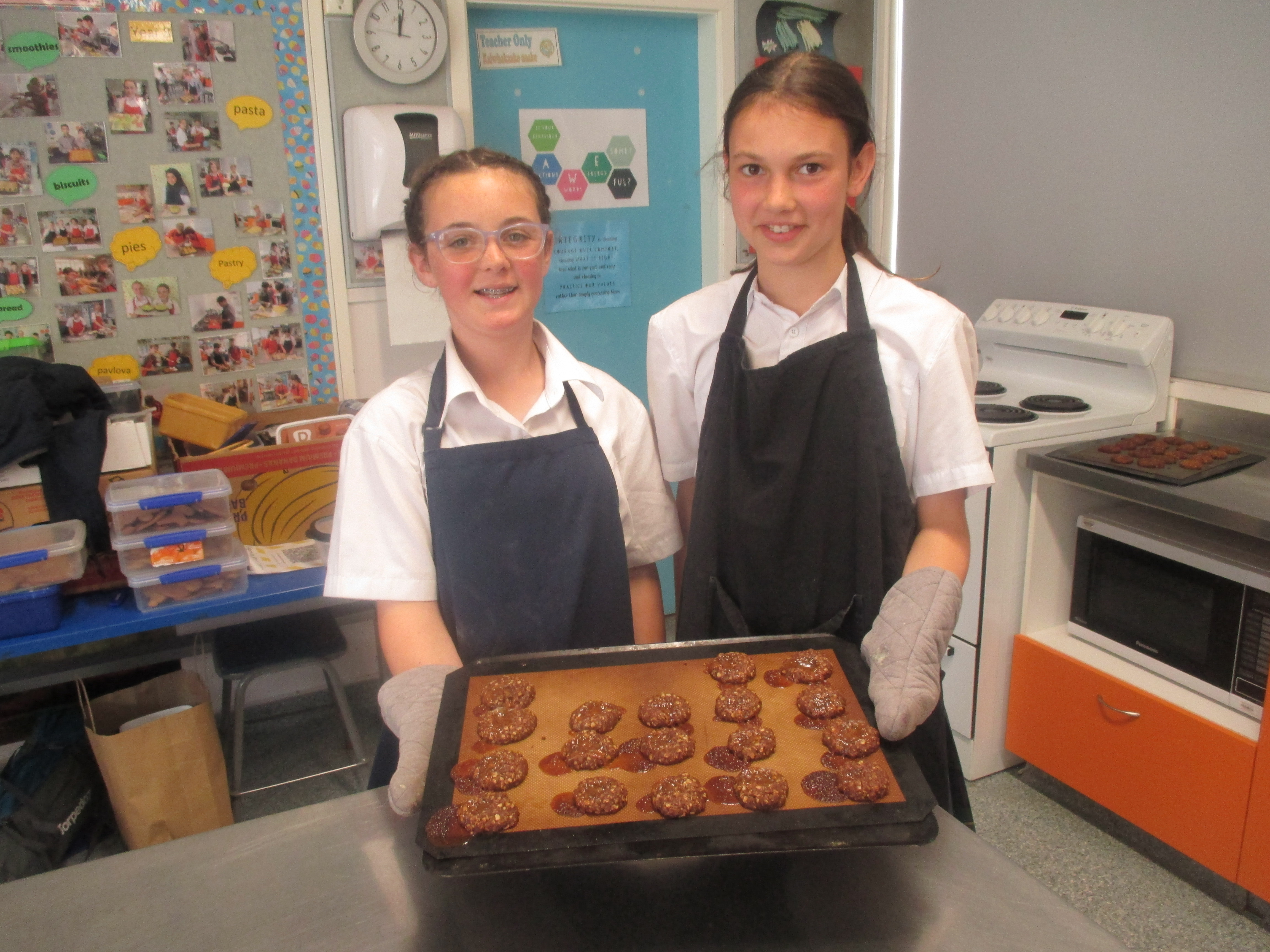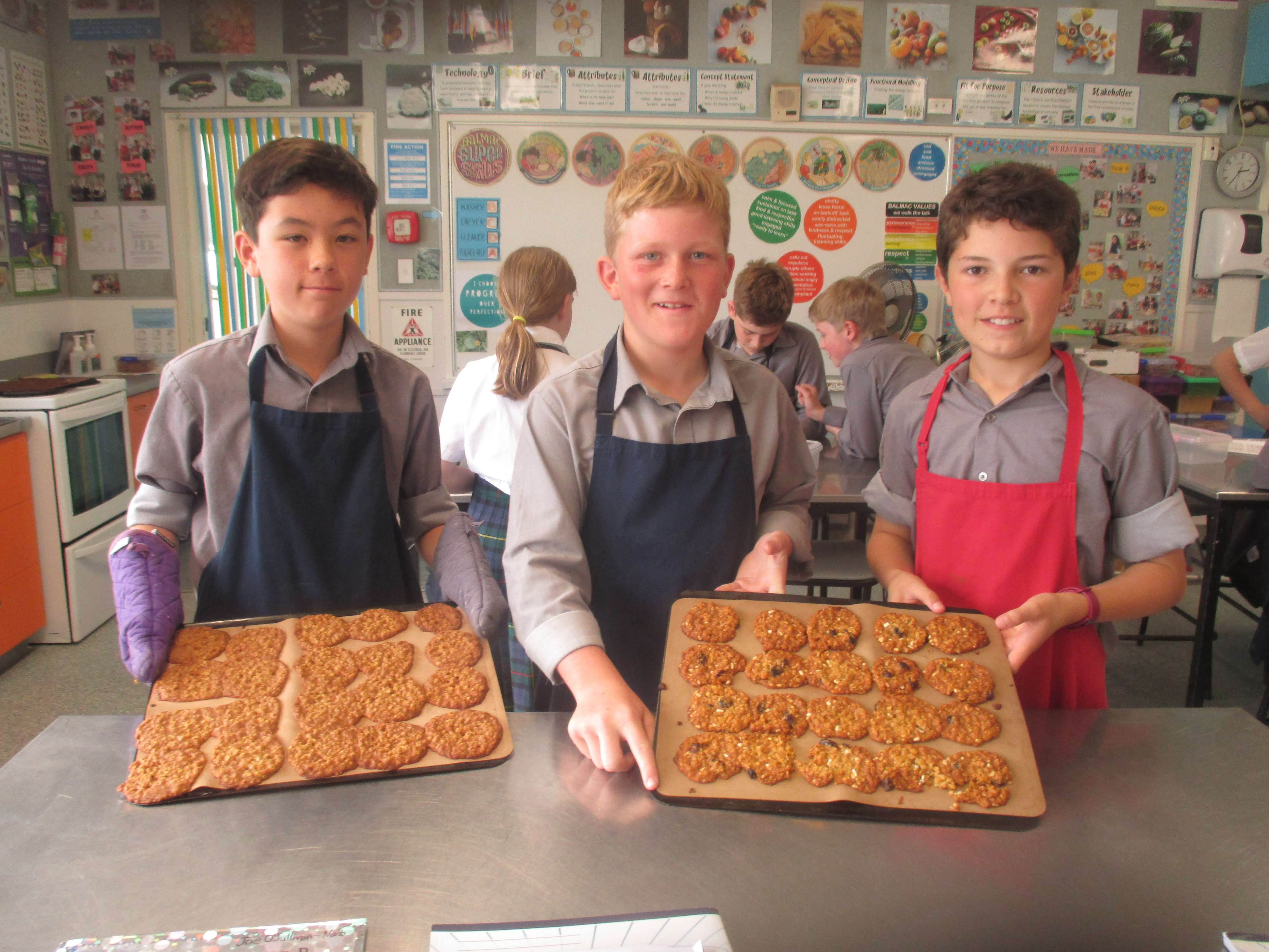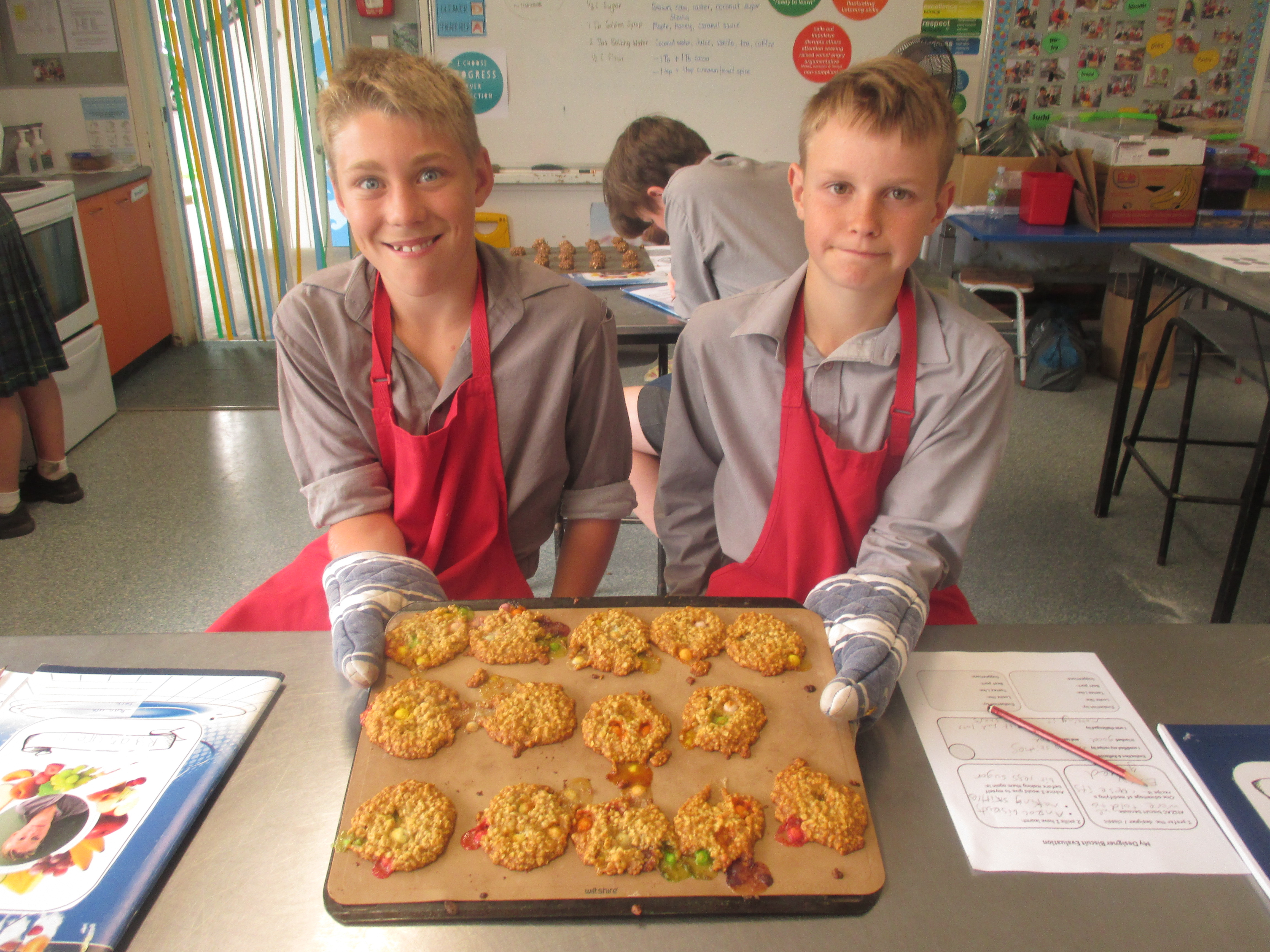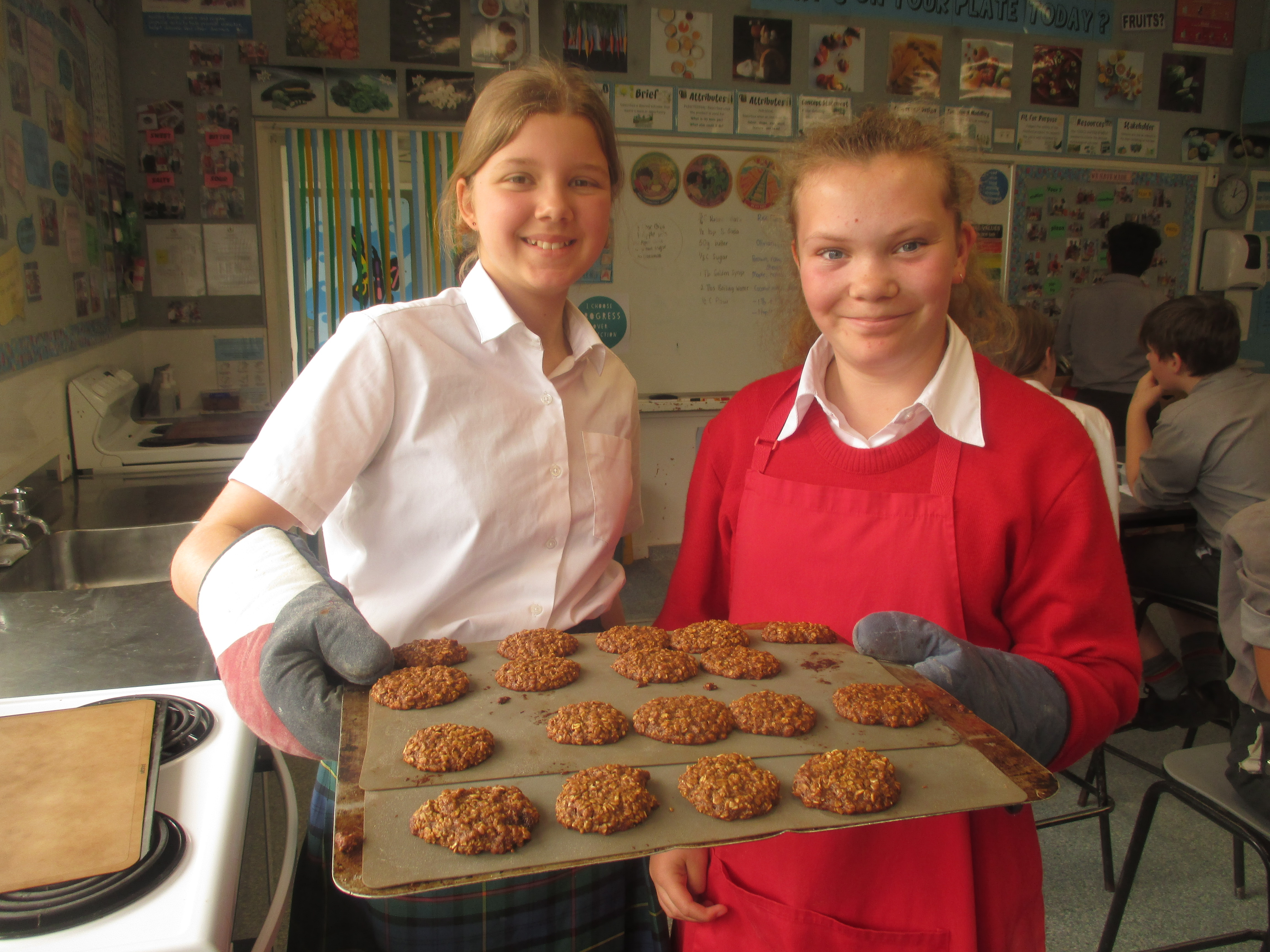 The students had to modify the basic Anzac biscuit to suit their family's needs and tastes. They could add 2 ingredients and substitute some of the others. (However only 1 lolly was allowed) Some very interesting creations were made, and others were very classic combinations. Hopefully they were enjoyed by the families. Check out the gallery below.