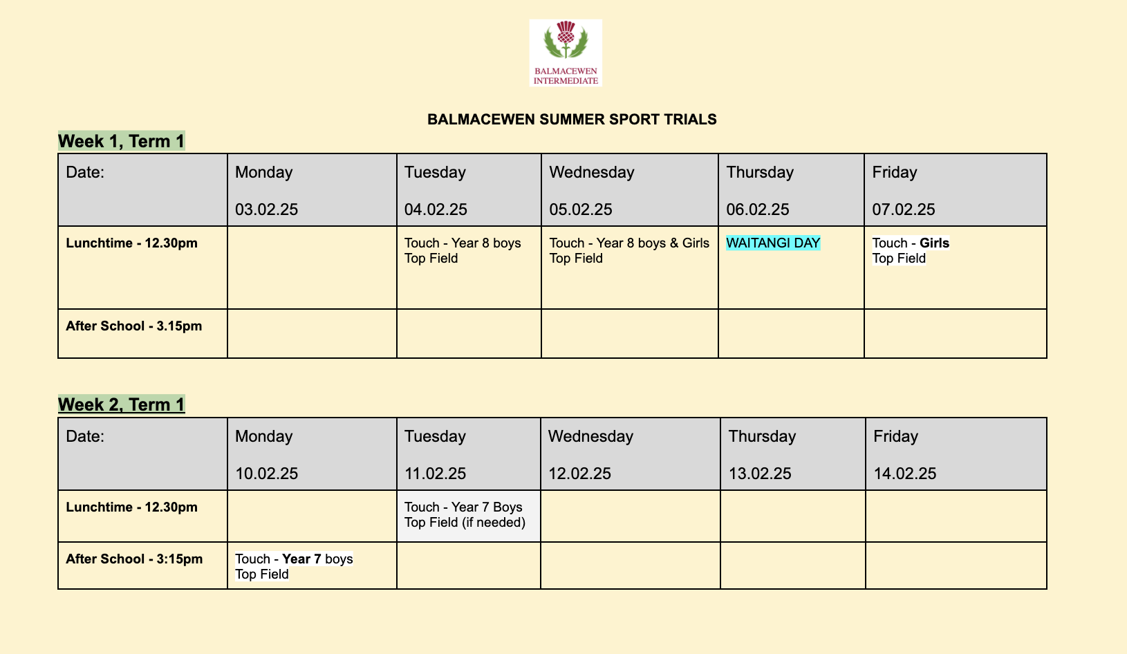 There will be more sporting opportunities throughout term 1, when these become available information will be sent out.