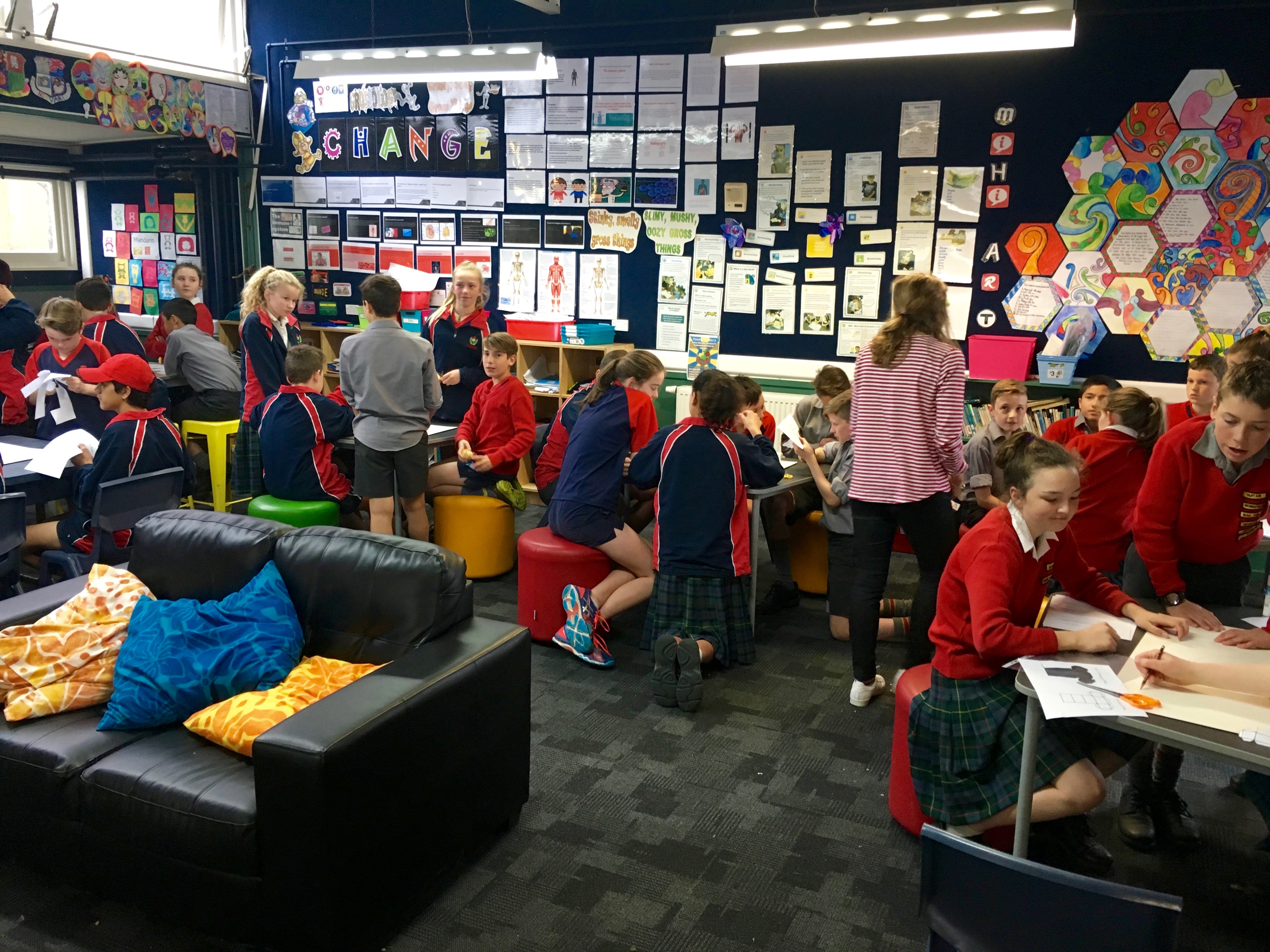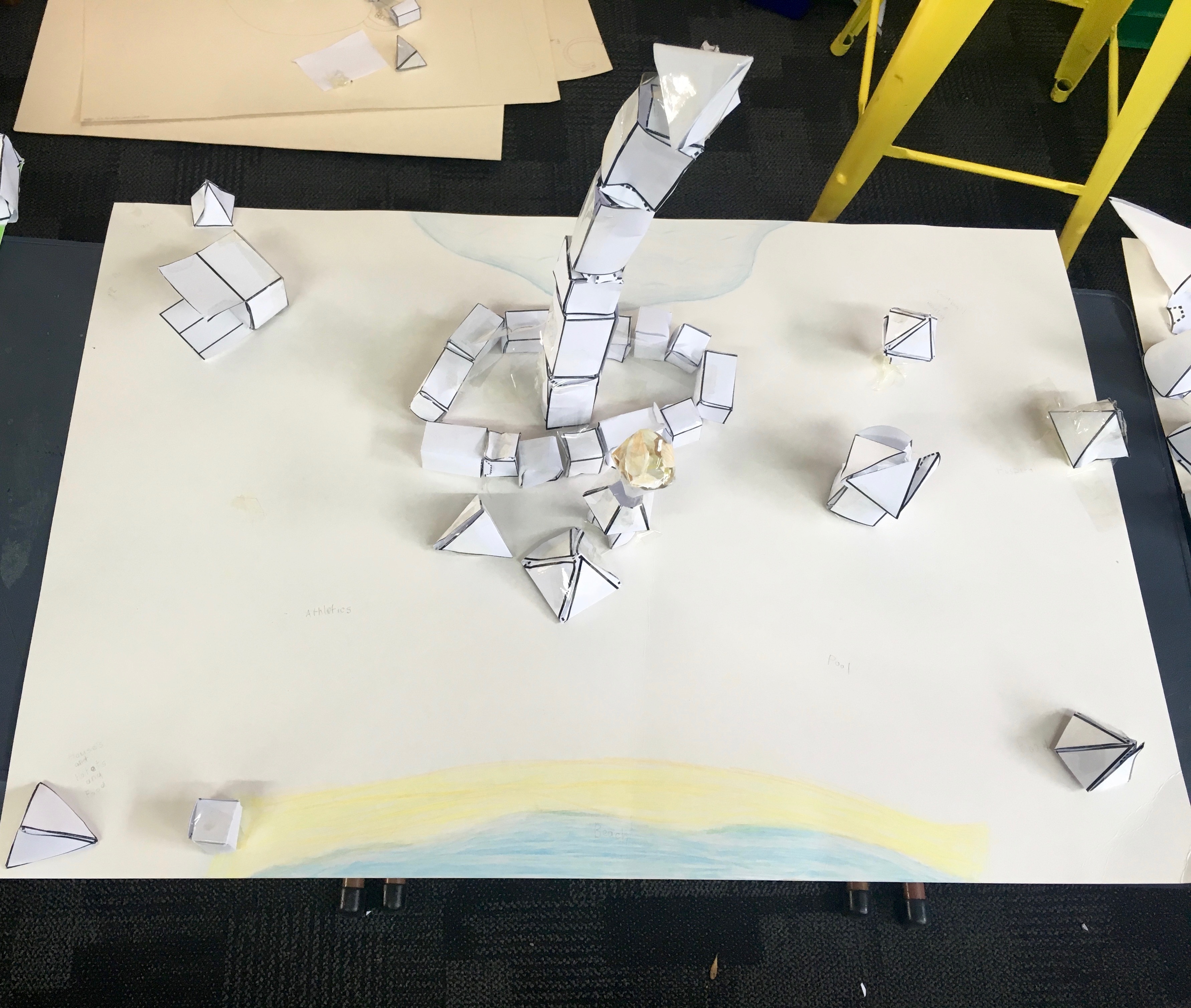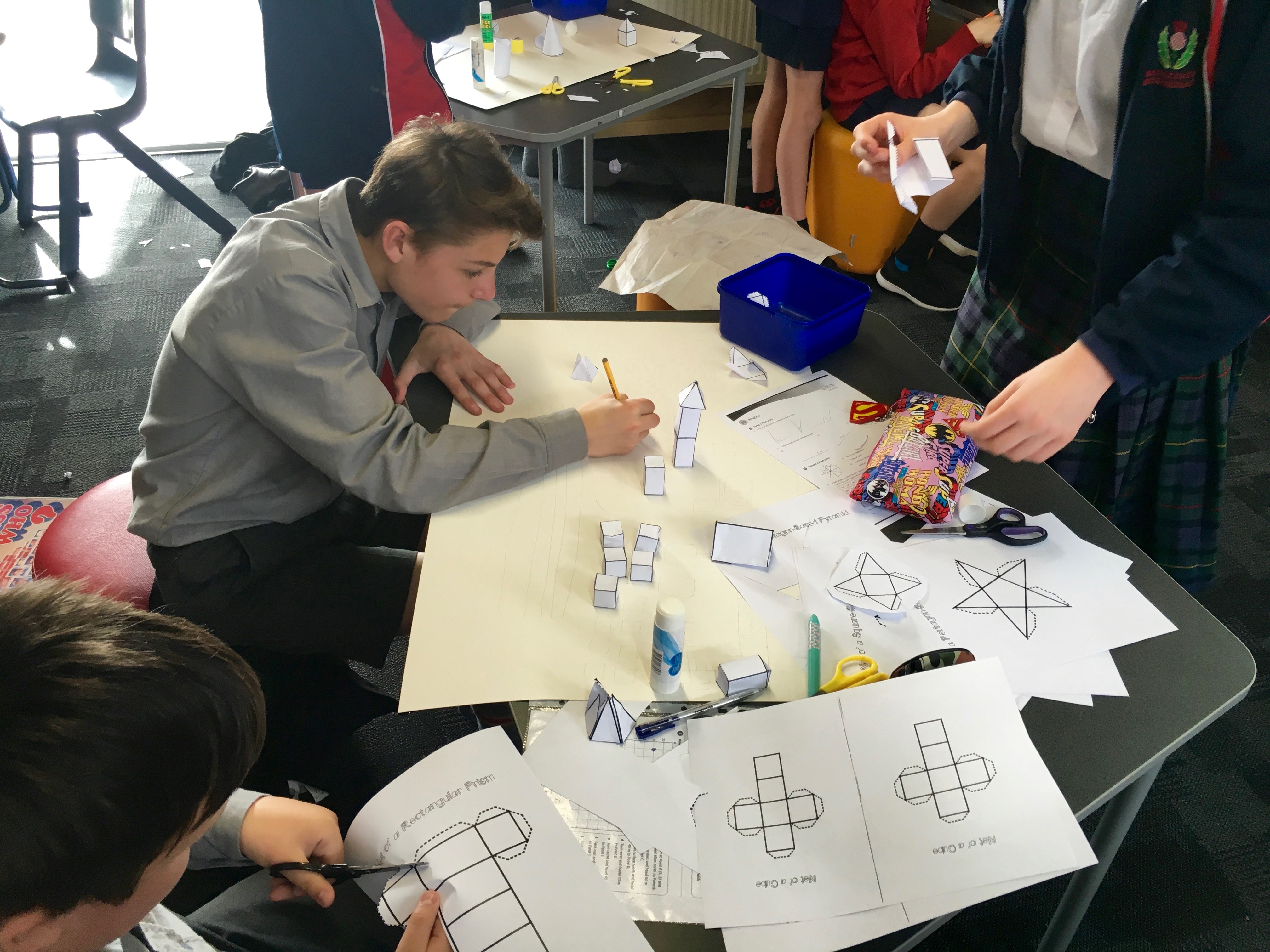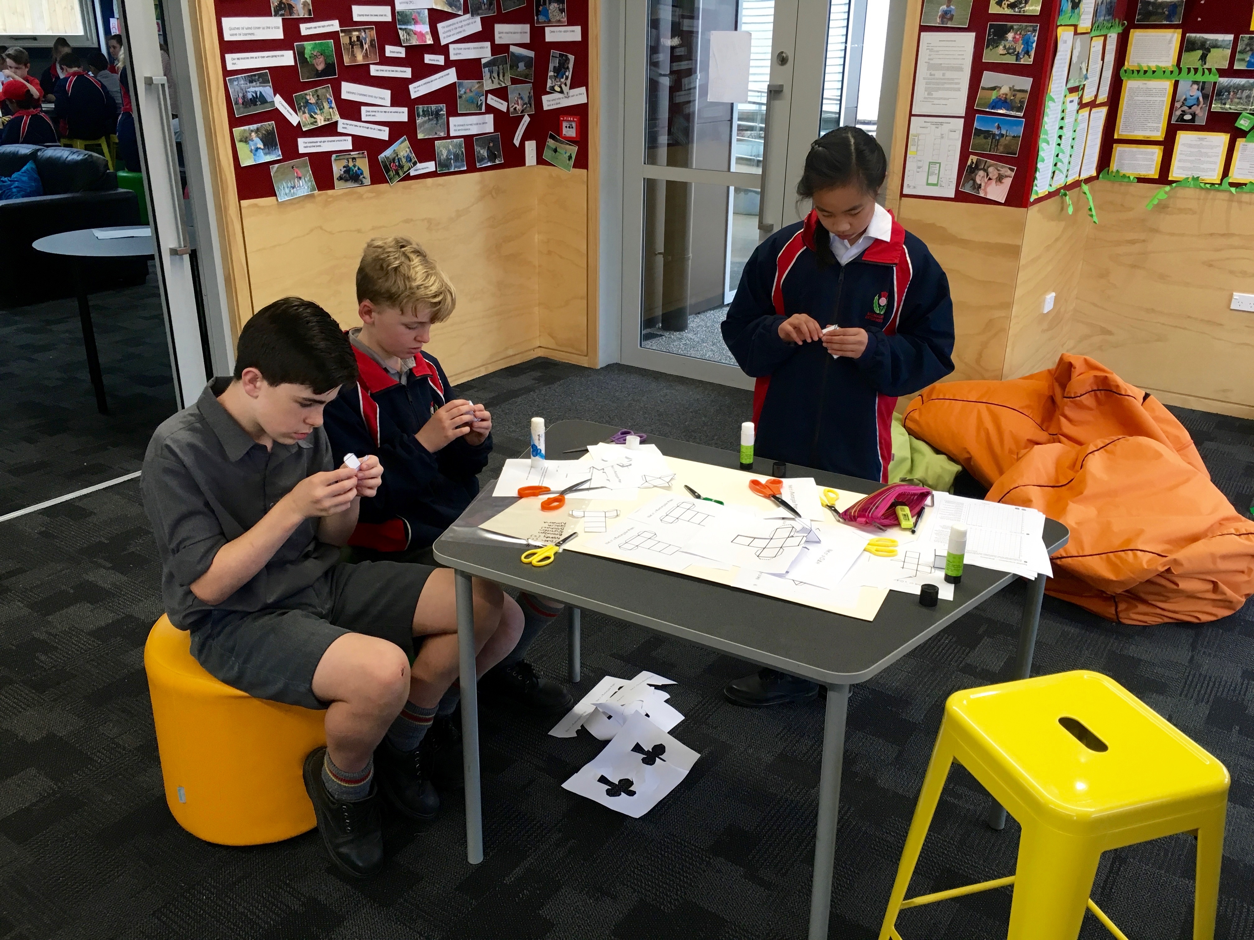 Over the last few weeks both Room 9 and 14 have been doing some learning around geometry. In the last week of the unit both classes came together and were given a challenge to plan, create and share a city fit to host the Olympics using only geometrical nets.