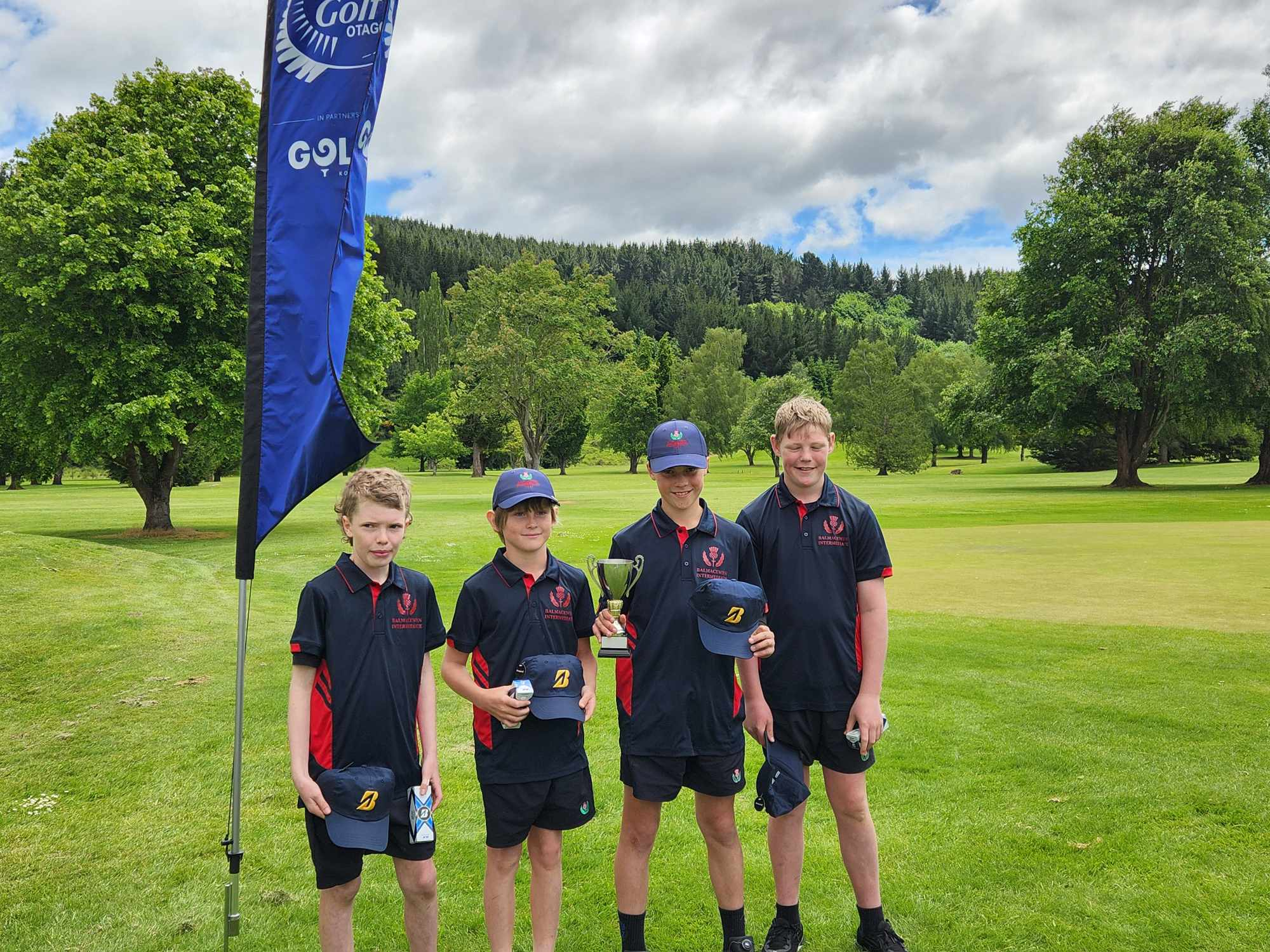 On Friday 22nd November Henry Partly, Fletcher Ewing, Tommy Cadman and Mason Fowler played in the Otago Golf Championships held in Lawrence. They played an ambrose format finishing up 1 under par and taking home the trophy. Well done to these boys for winning the tournament.