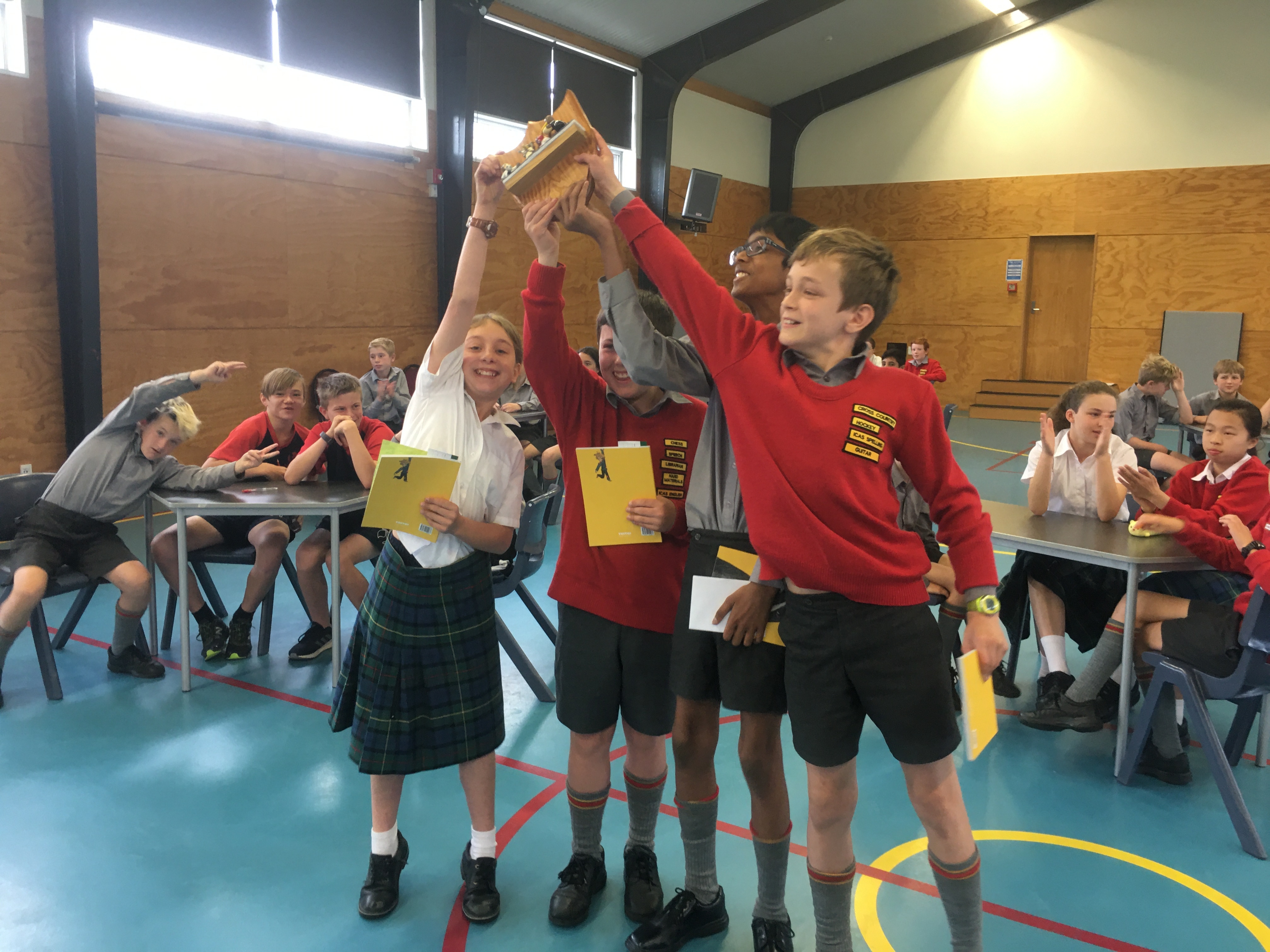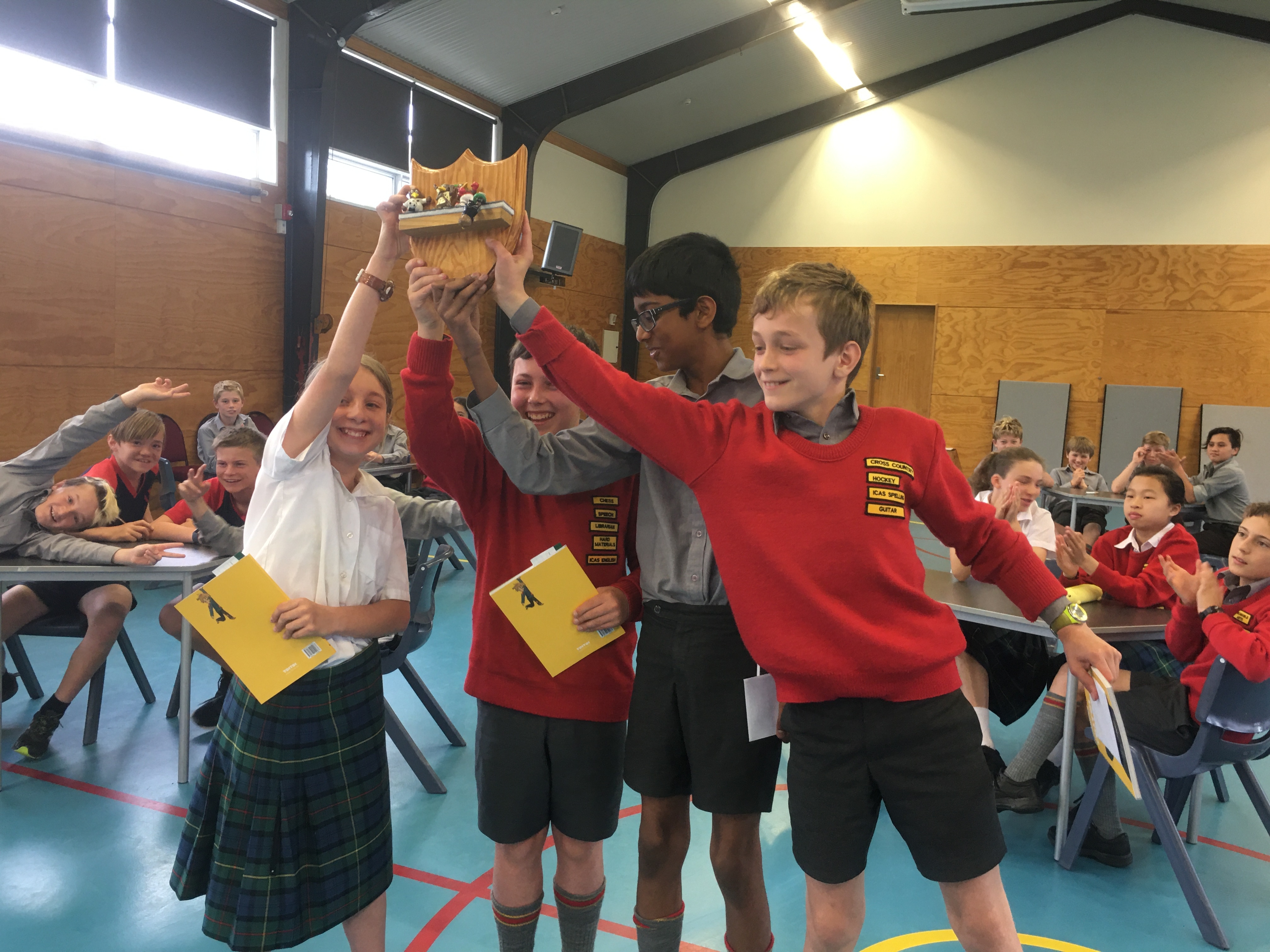 Last week we also had Gill our Librarian run our Year 7 Lit Quiz. All classes throughout this term have been working in groups during our library times with Gill completing a quiz every week. The best team from each class then represented their class in the final last Wednesday. It was tied 14 all after the first 20 questions with Room's 6 and 26. Room 6 stormed home to a comfortable win in the second set of questions. Congratulations to Tyne, Basu, Rosa and Aidan on retaining the Freshman Shield in Room 6 until next year.