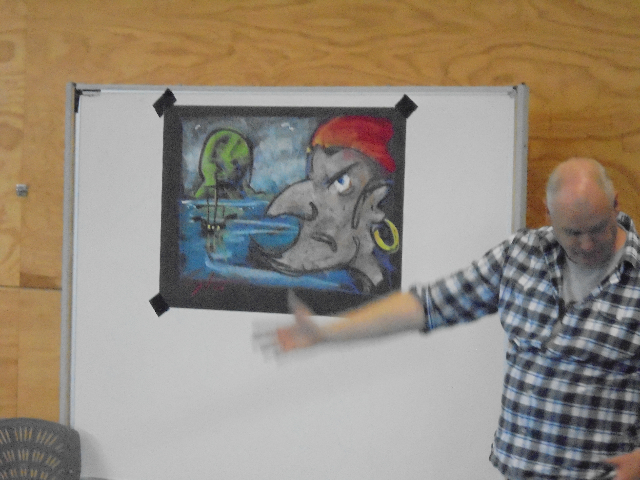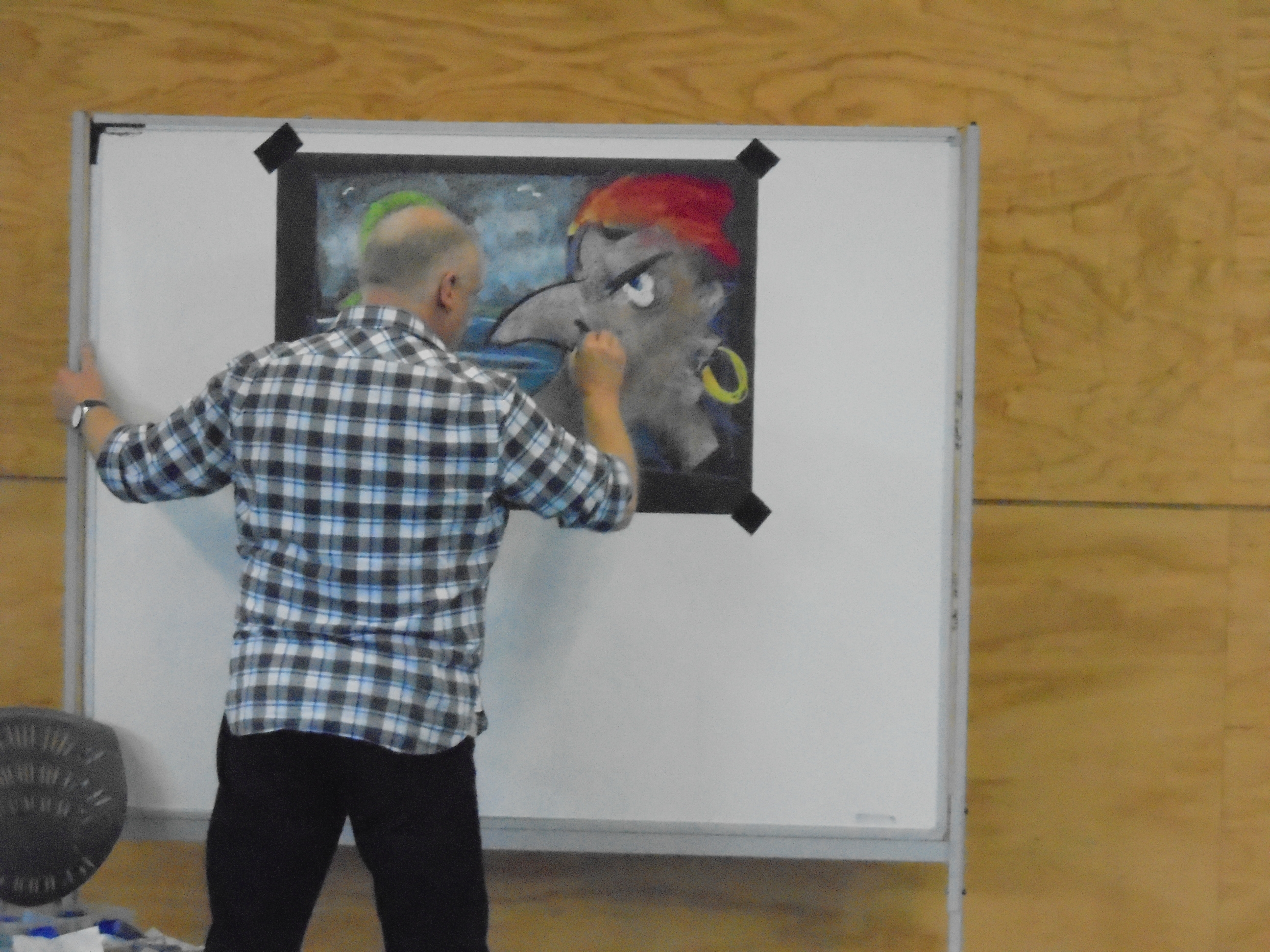 Before he told us a story, he first drew a picture to set the scene, with what must have been 'his' type of music playing softly in the background. It only took 'seconds' until the art was finished and faces lit with fascination. He then dusted his hands and changed the music to a soundtrack. Then, he told the story.