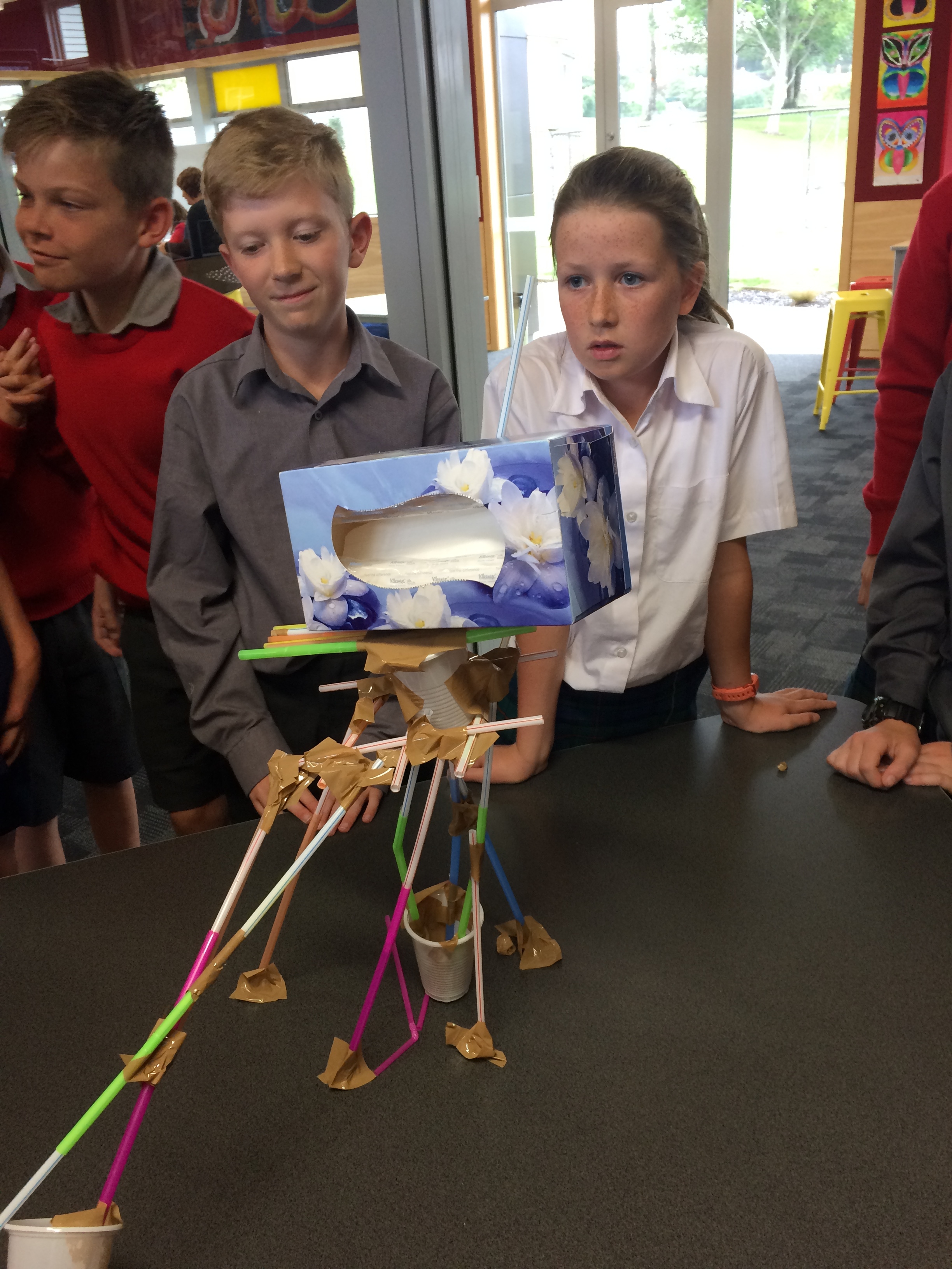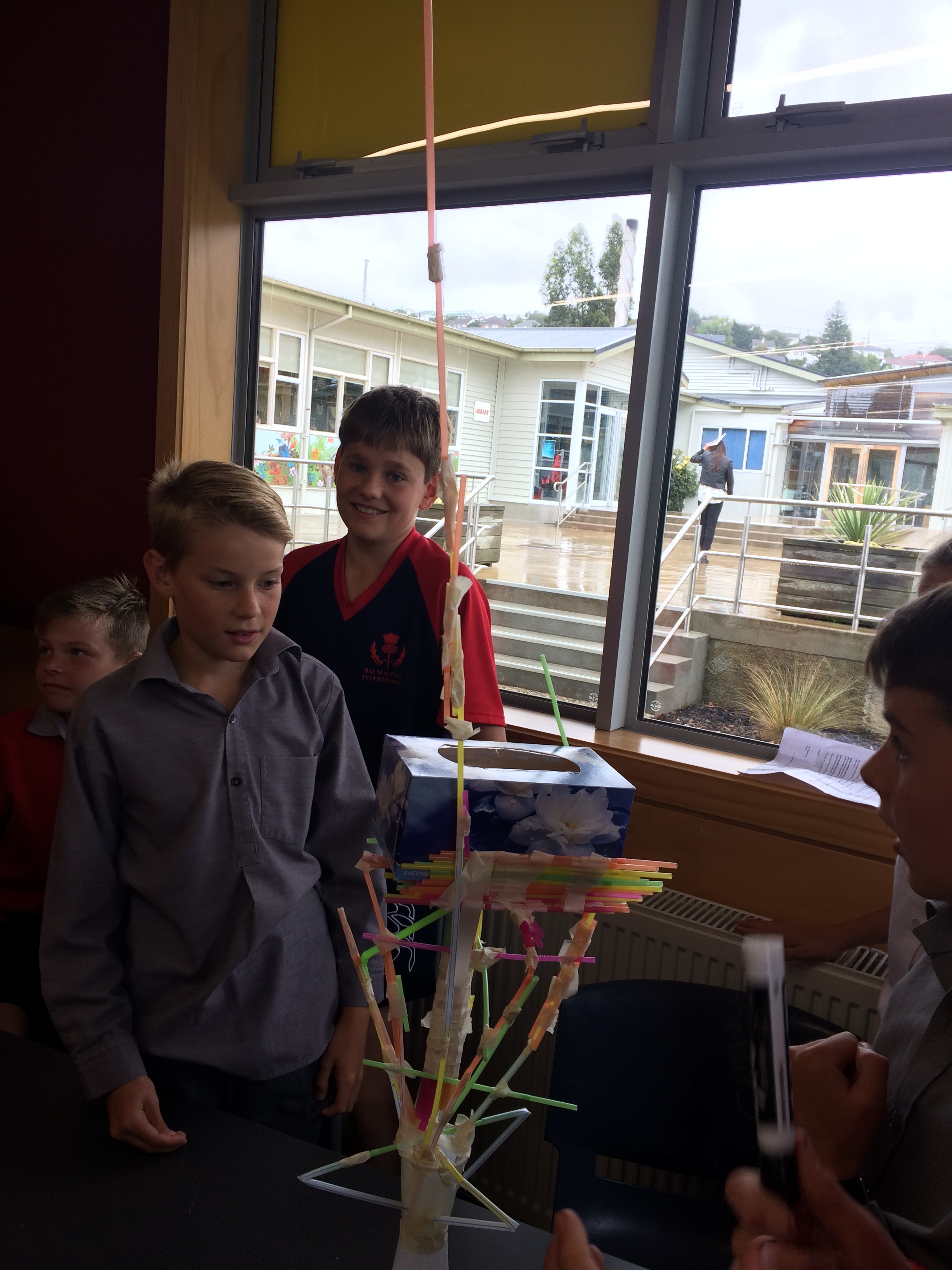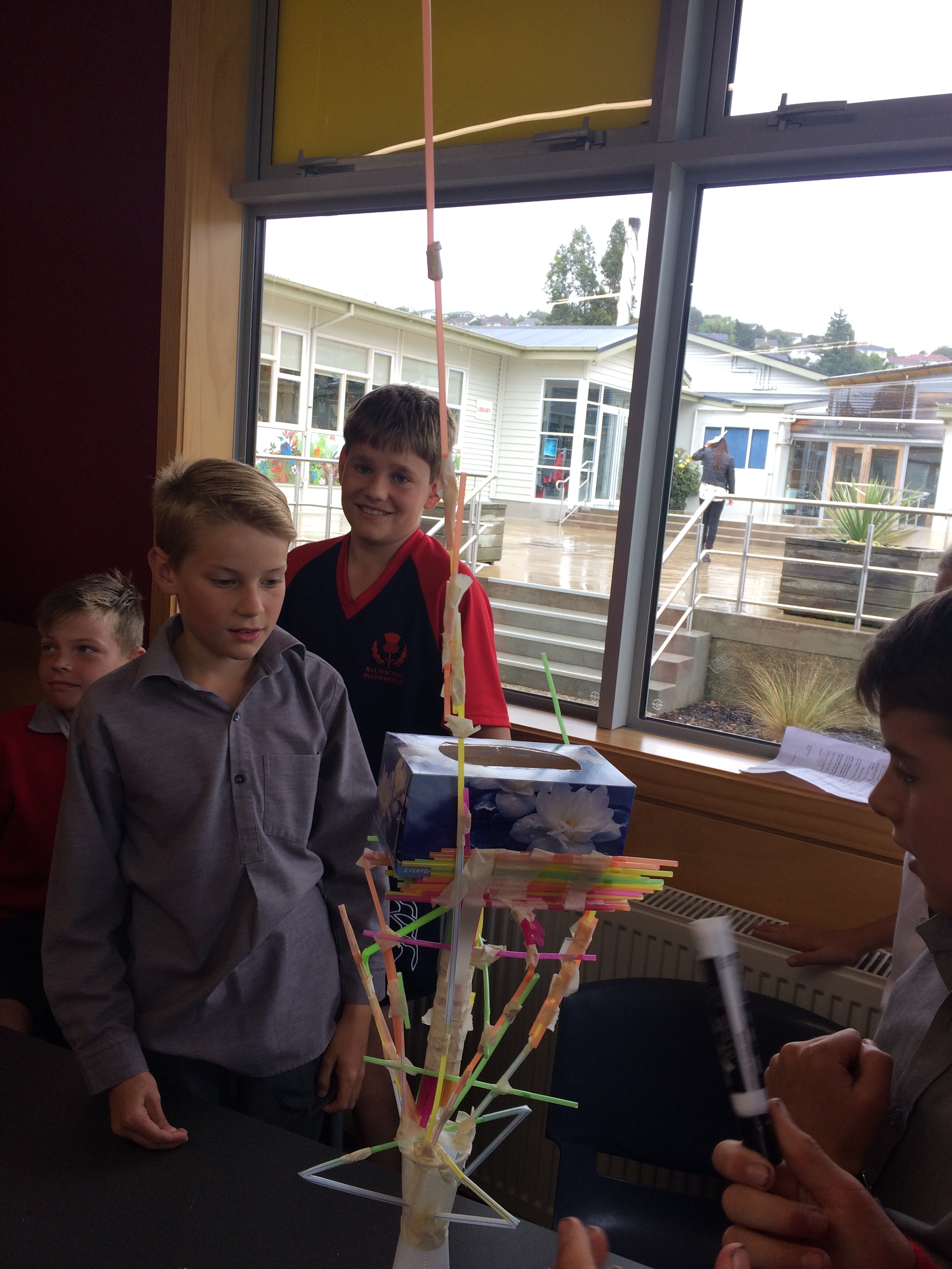 This afternoon Room 2 were faced with a challenge. To create a tower, out of straws, stable enough to hold a tissue box.