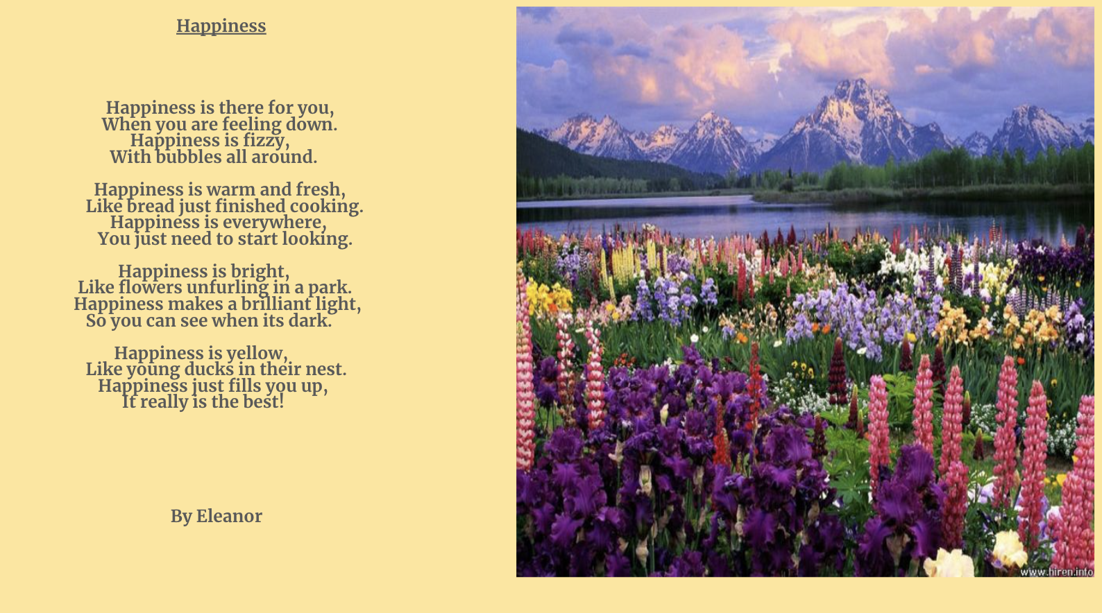 Happiness is warm and fresh,