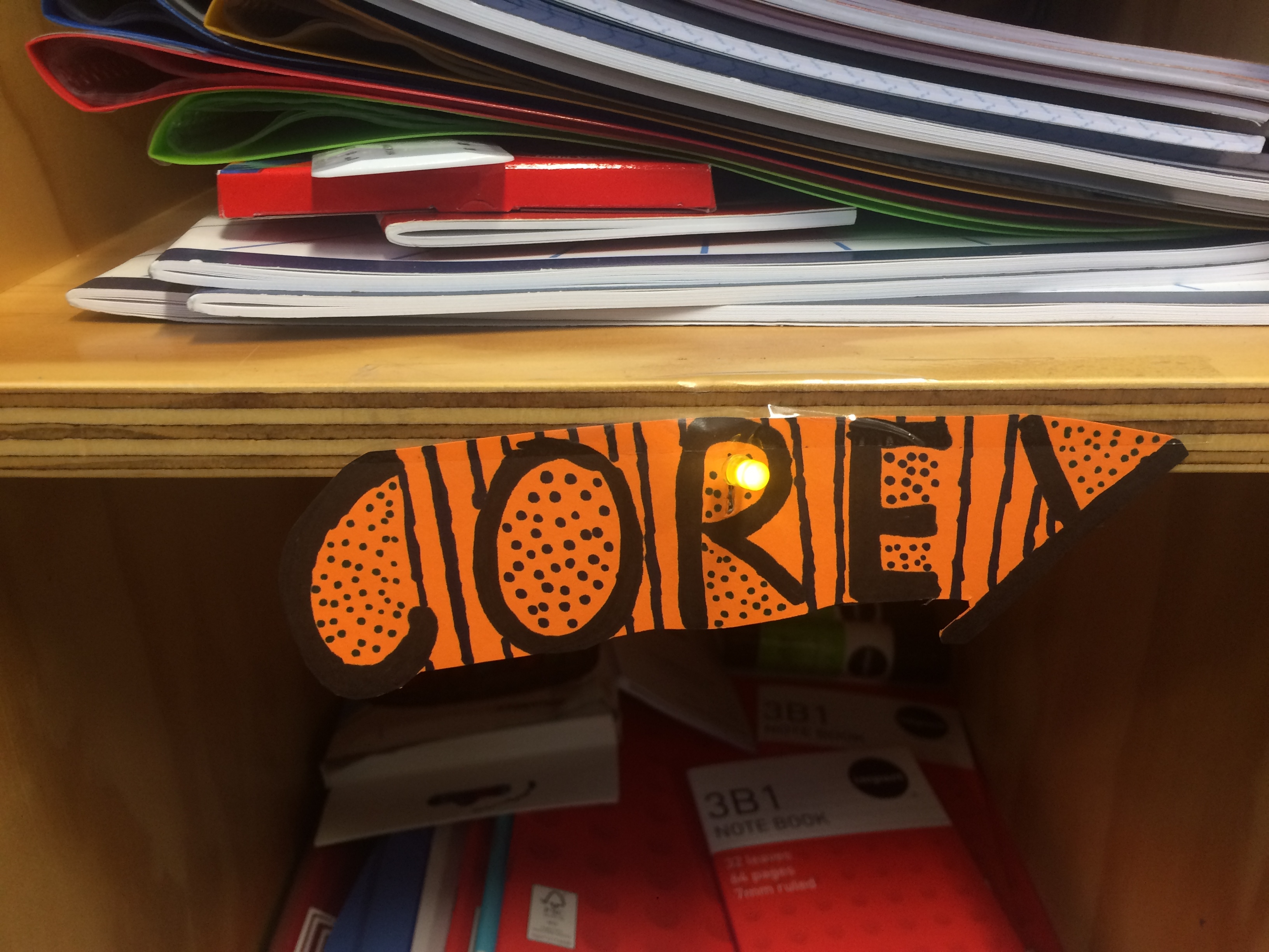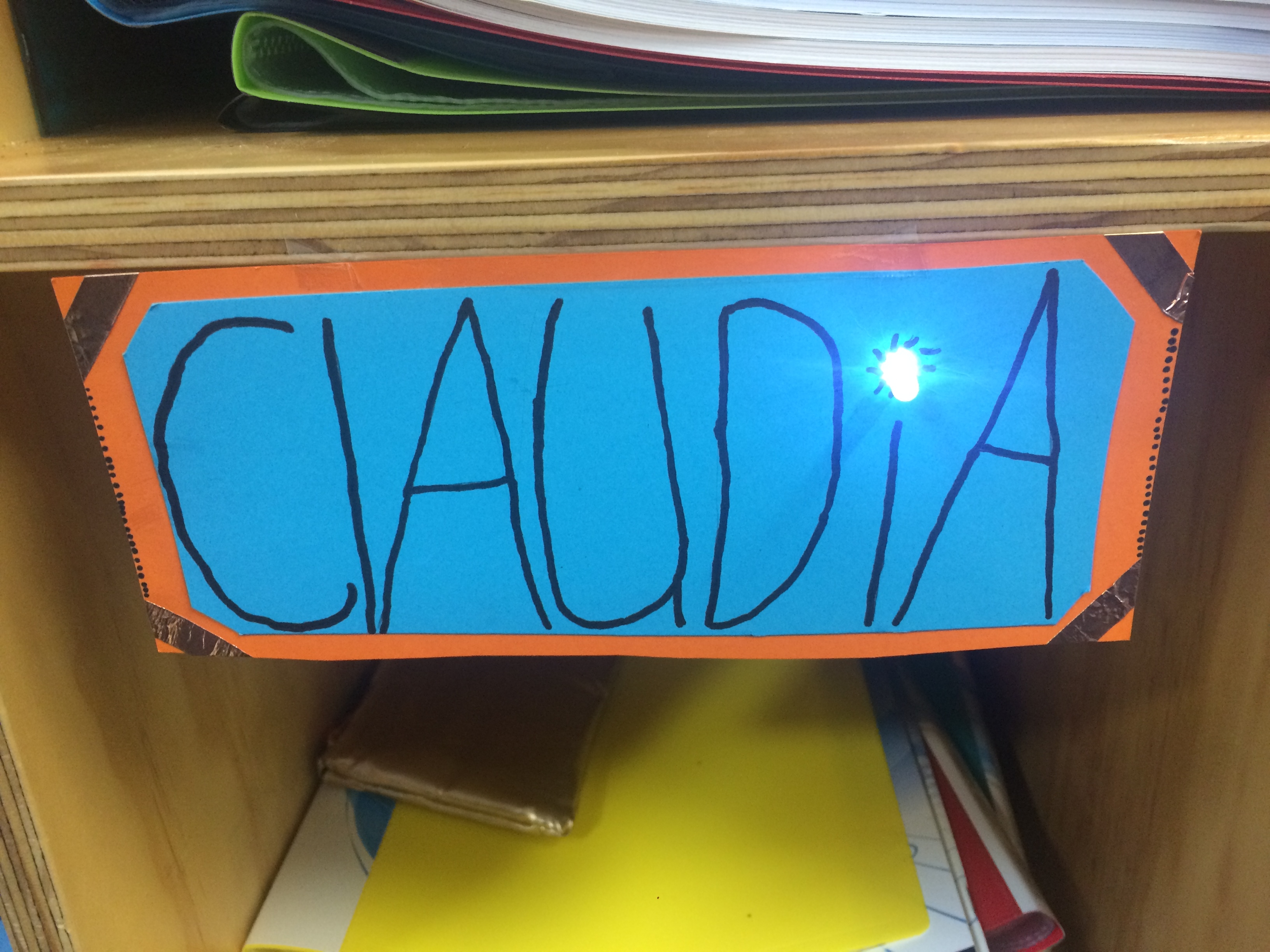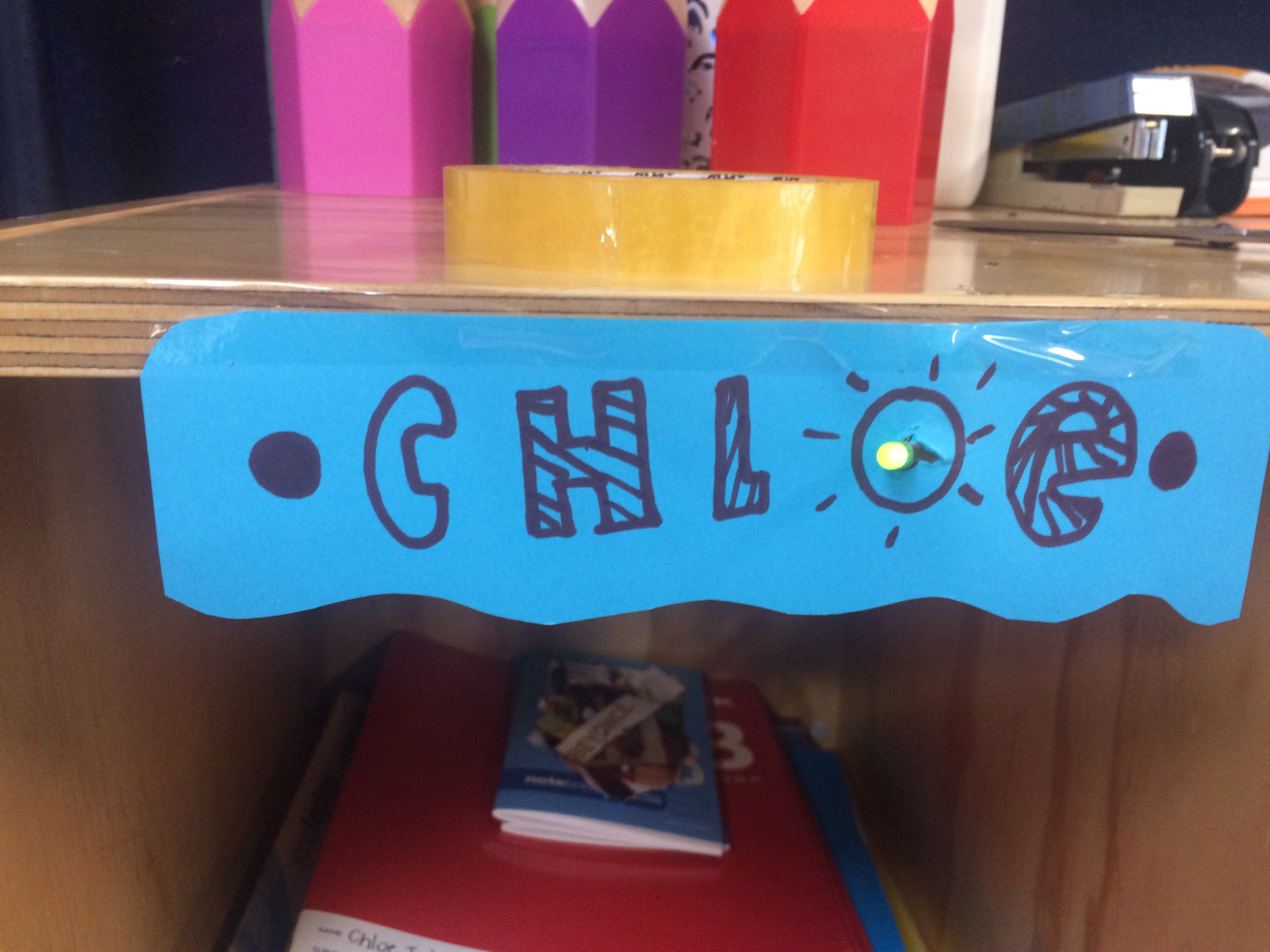 One of Room 3's first challenges of the year was to create a locker name tag that included a LED light and a battery.