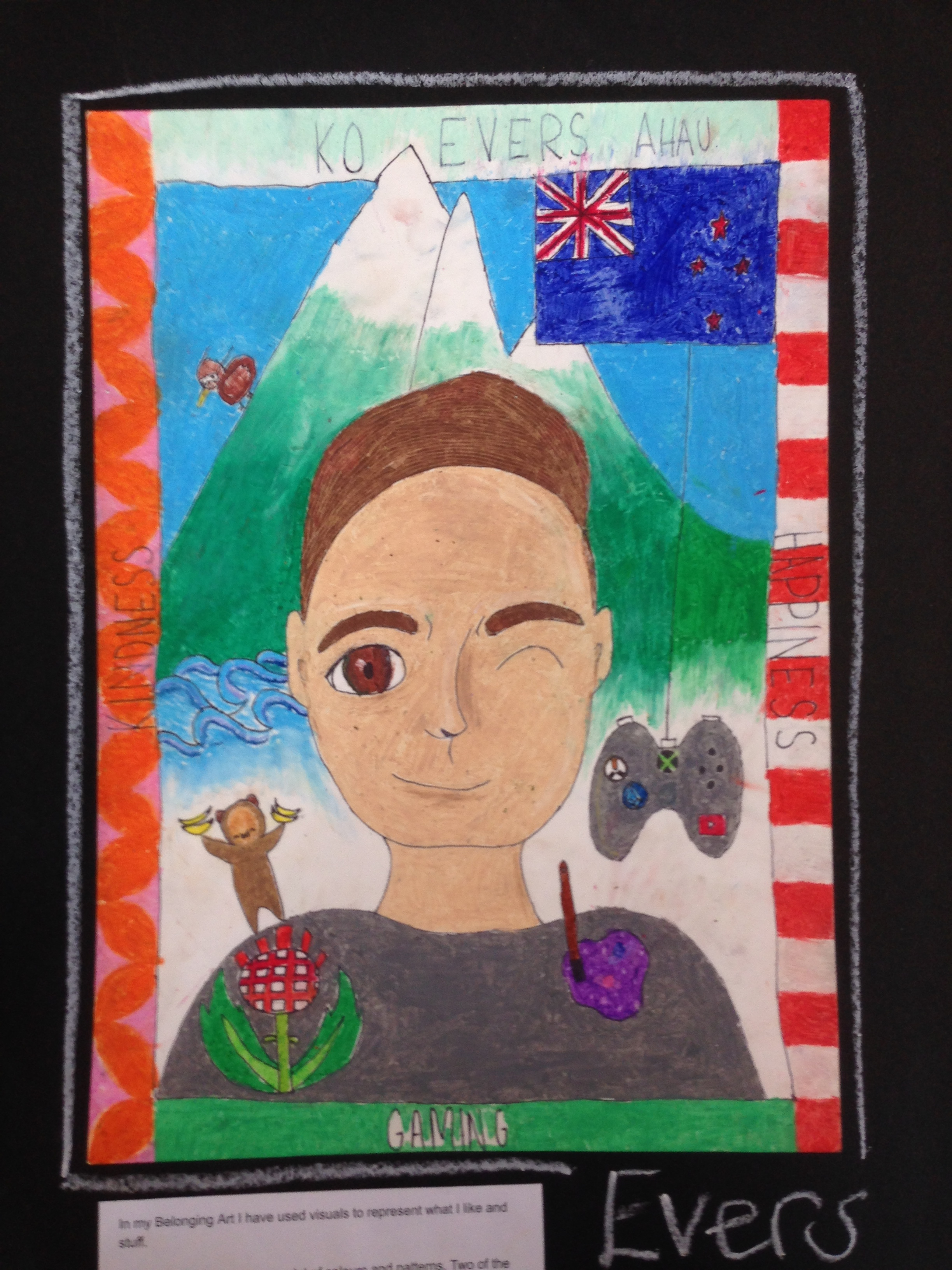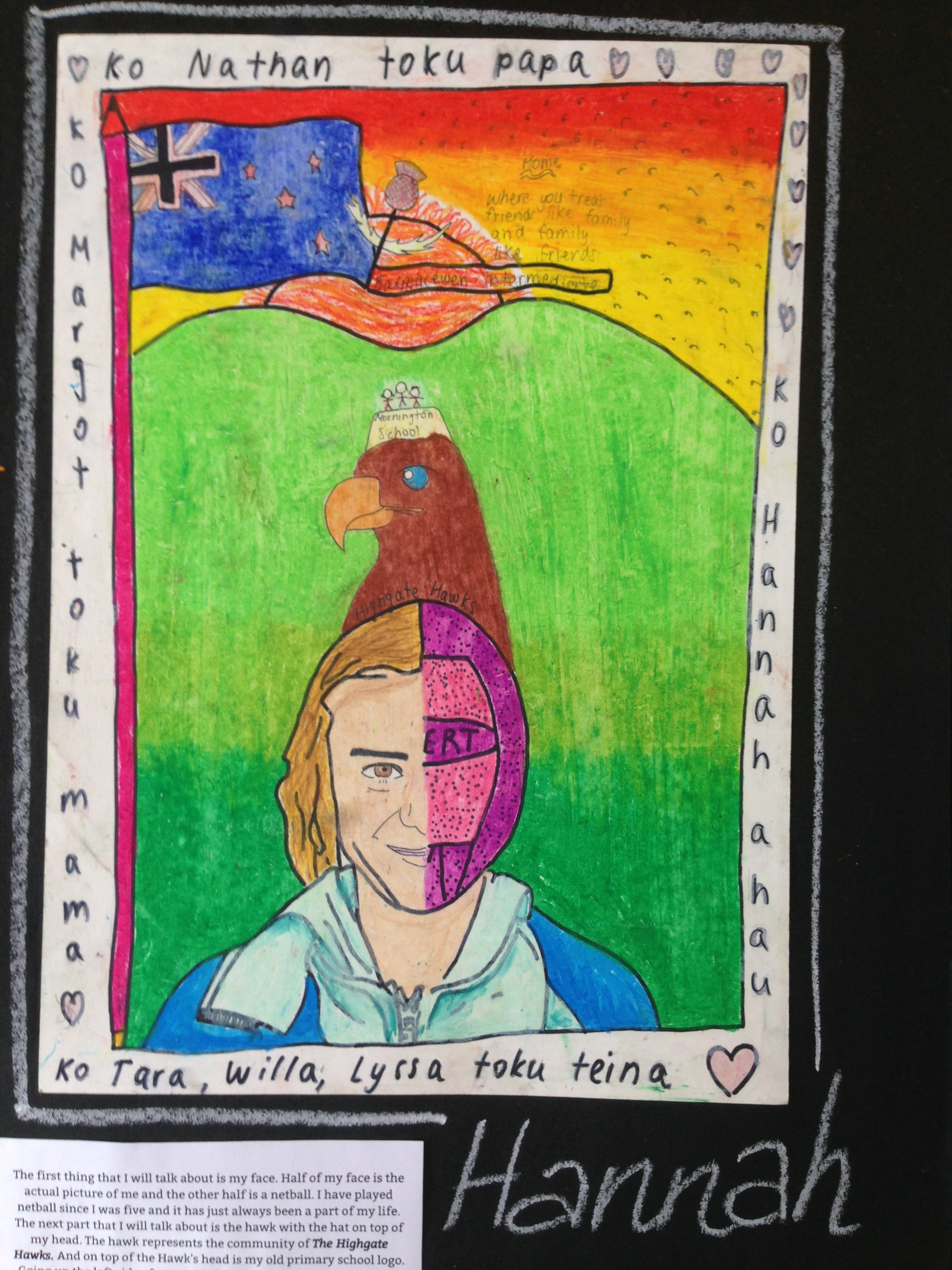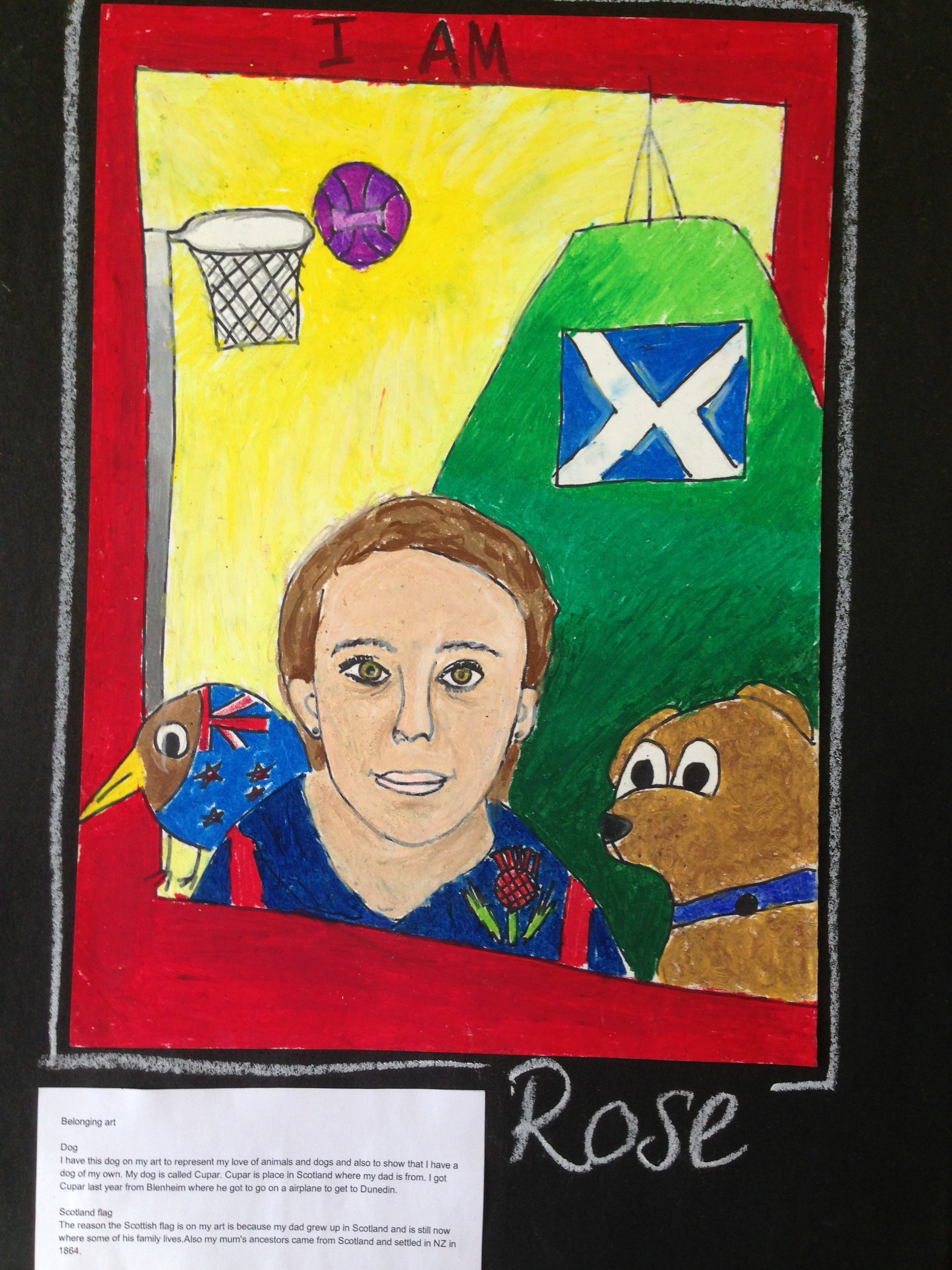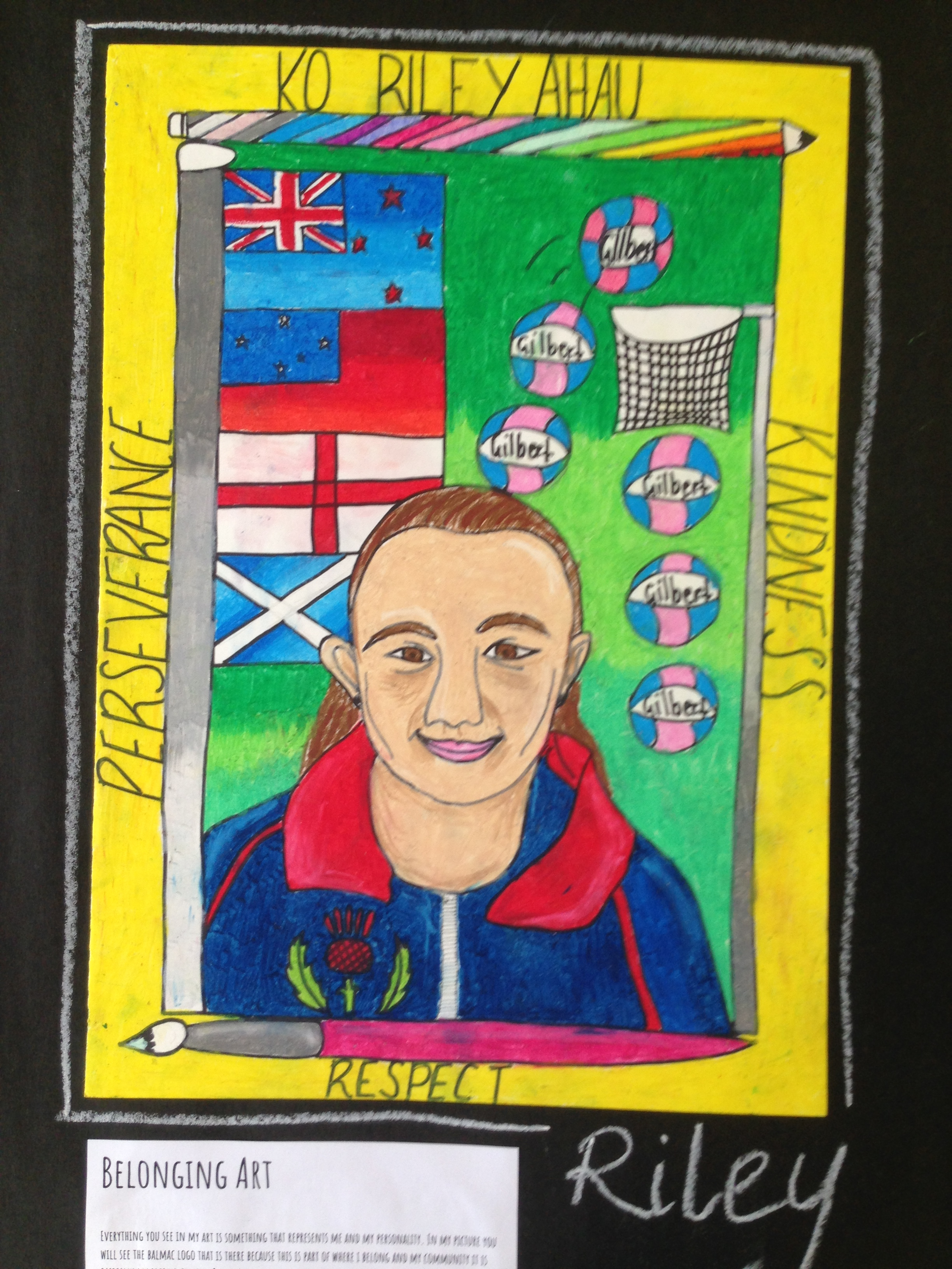 Room 9 has worked well to develop their art. This formed the final point of our Term 1 ASPIRE. We investigated how we could use art to show how we belong to communities. This gave us the opportunity to explore and discover about our family histories as well as the importance of belonging to communities such sport clubs and class communities.