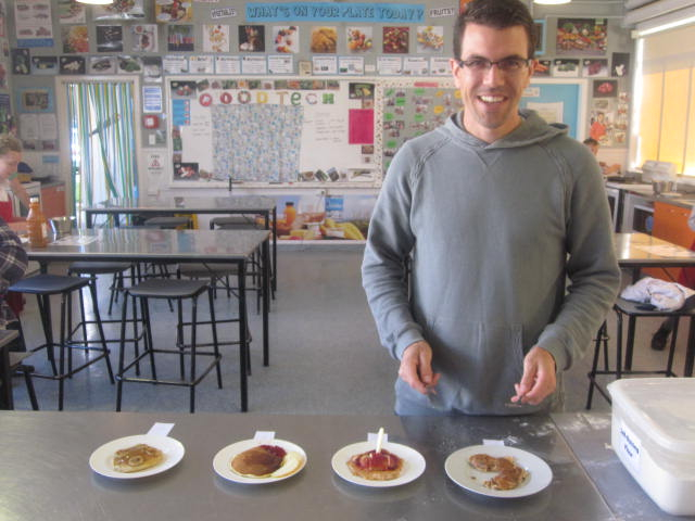 Challenge accepted and we had , Chocolate & Caramel, Lemon, Boniffe and Berry with Fresh Apple. The smell of pancakes drifted around the technology block as they were cooked.