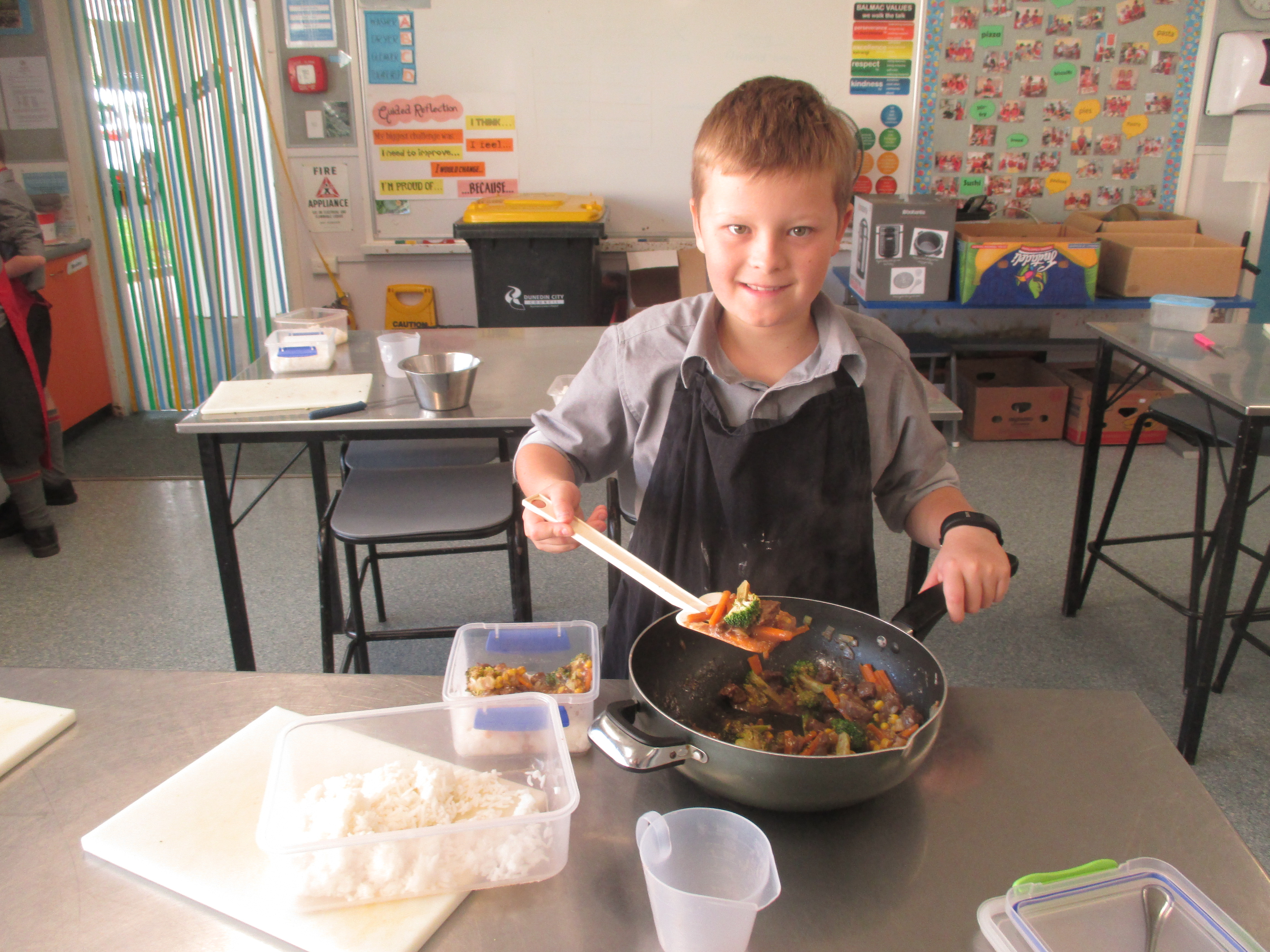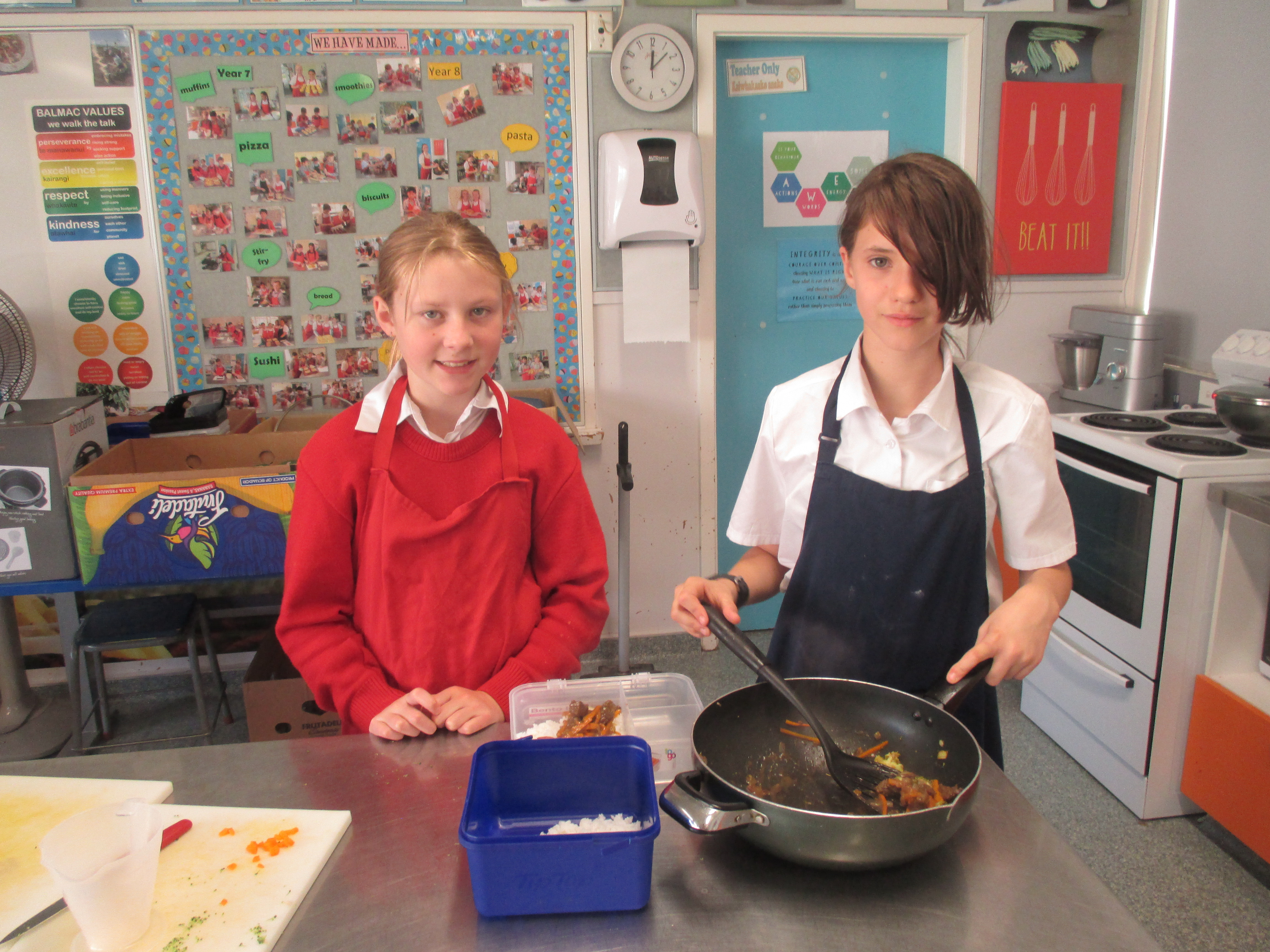 Smoothies, scones, pizzas, muffins and stir-fry have been made so far this term. Lots of learning happening especially with safe food handling, measuring accurately, following a recipe and using a knife.