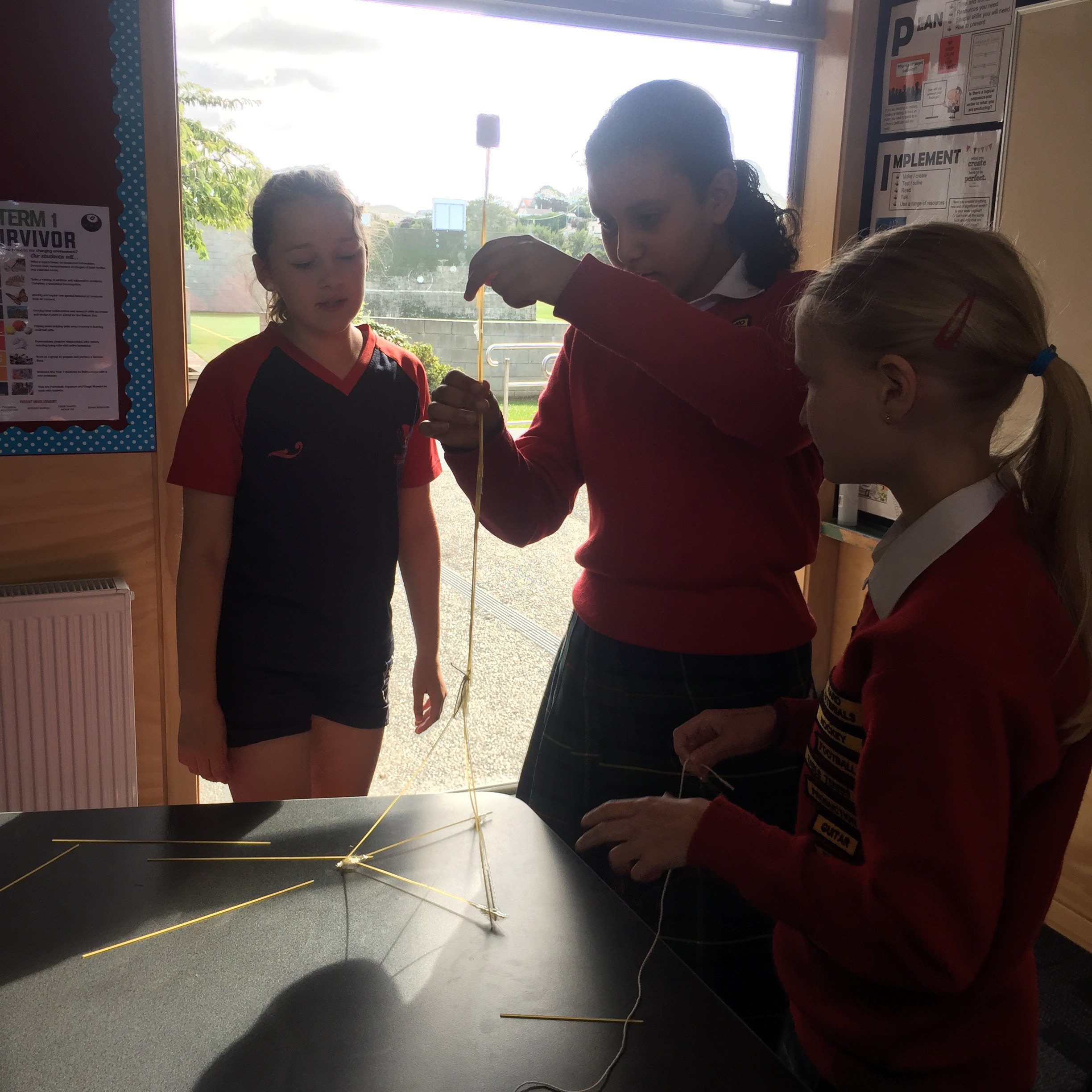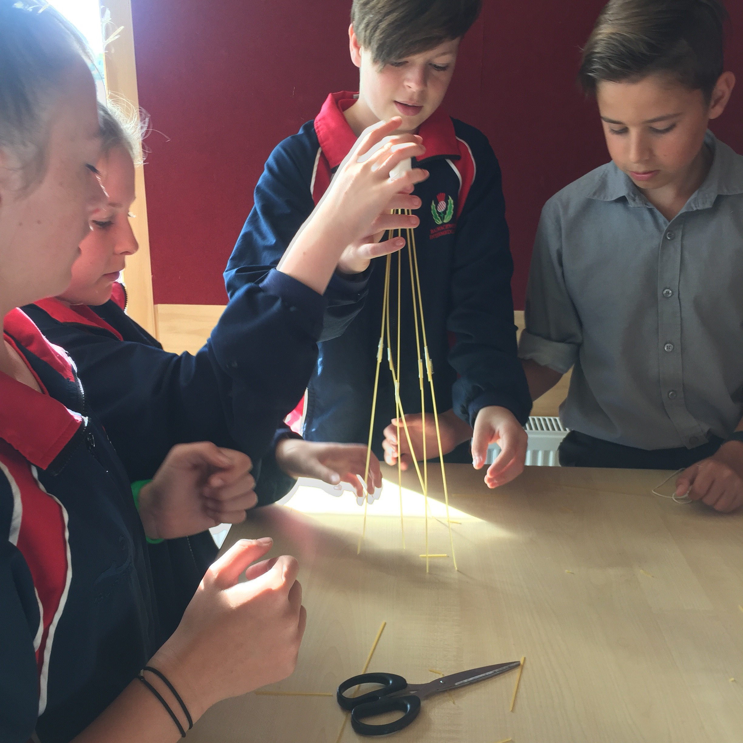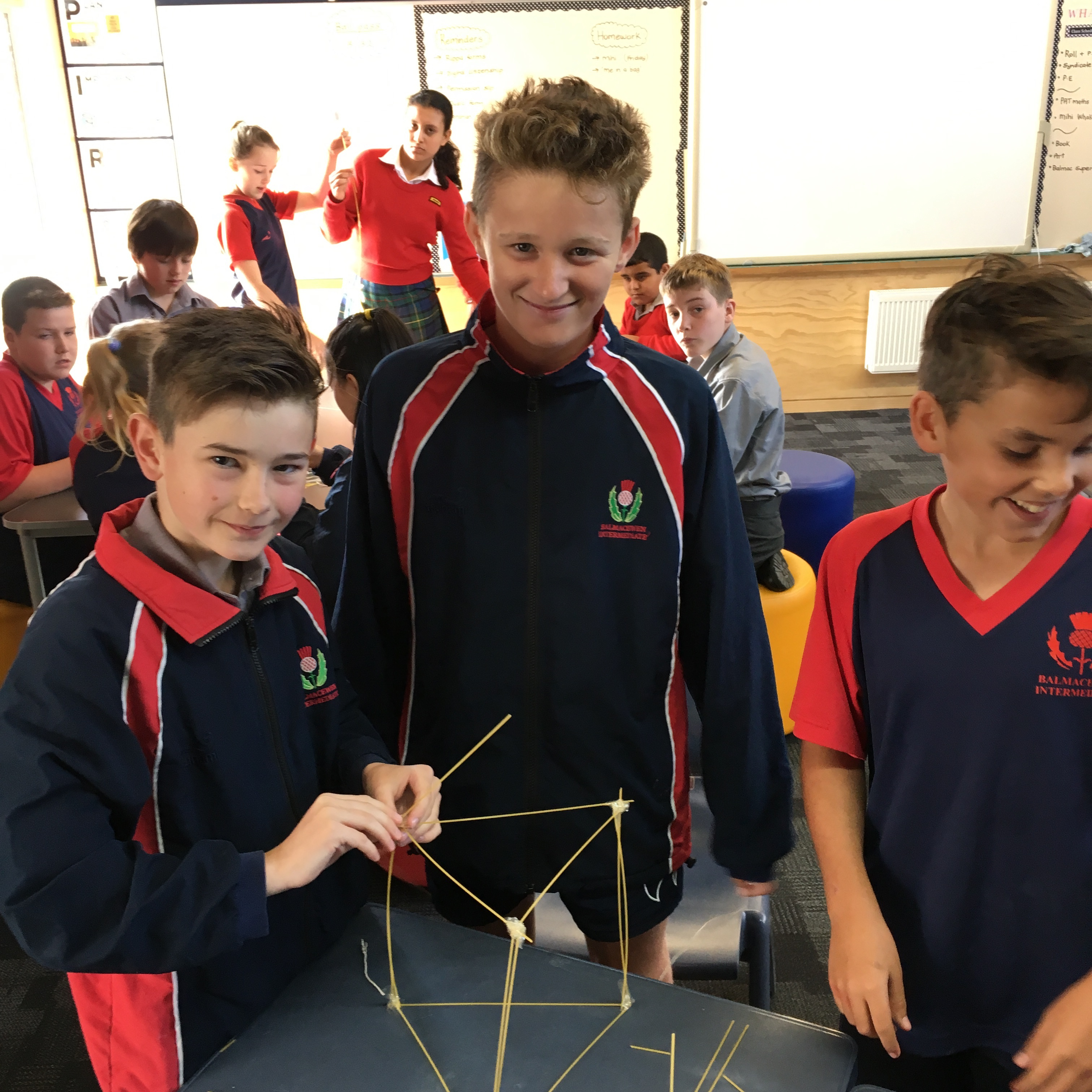 “Head into Room 7 please,” Ms. Dixon stated as the crowd moved into Room 7 and sat down quietly. The projector lit up the whiteboard with a powerpoint, Ms. Dixon read along as the powerpoint flipped pages. She said “Now we will be doing the activity, you will get 20 strands of raw spaghetti, 1 marshmallow, 1 metre of string and 1 metre of tape and a pair of scissors.”