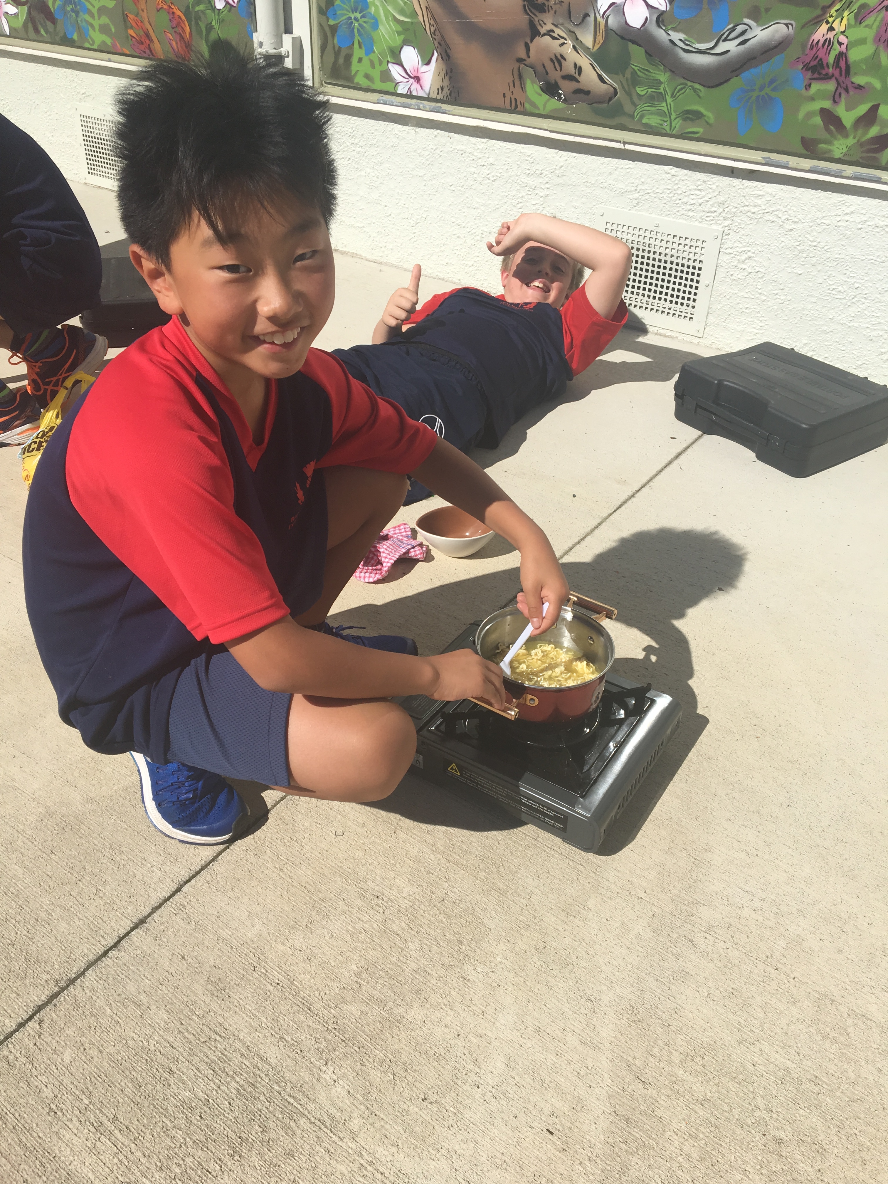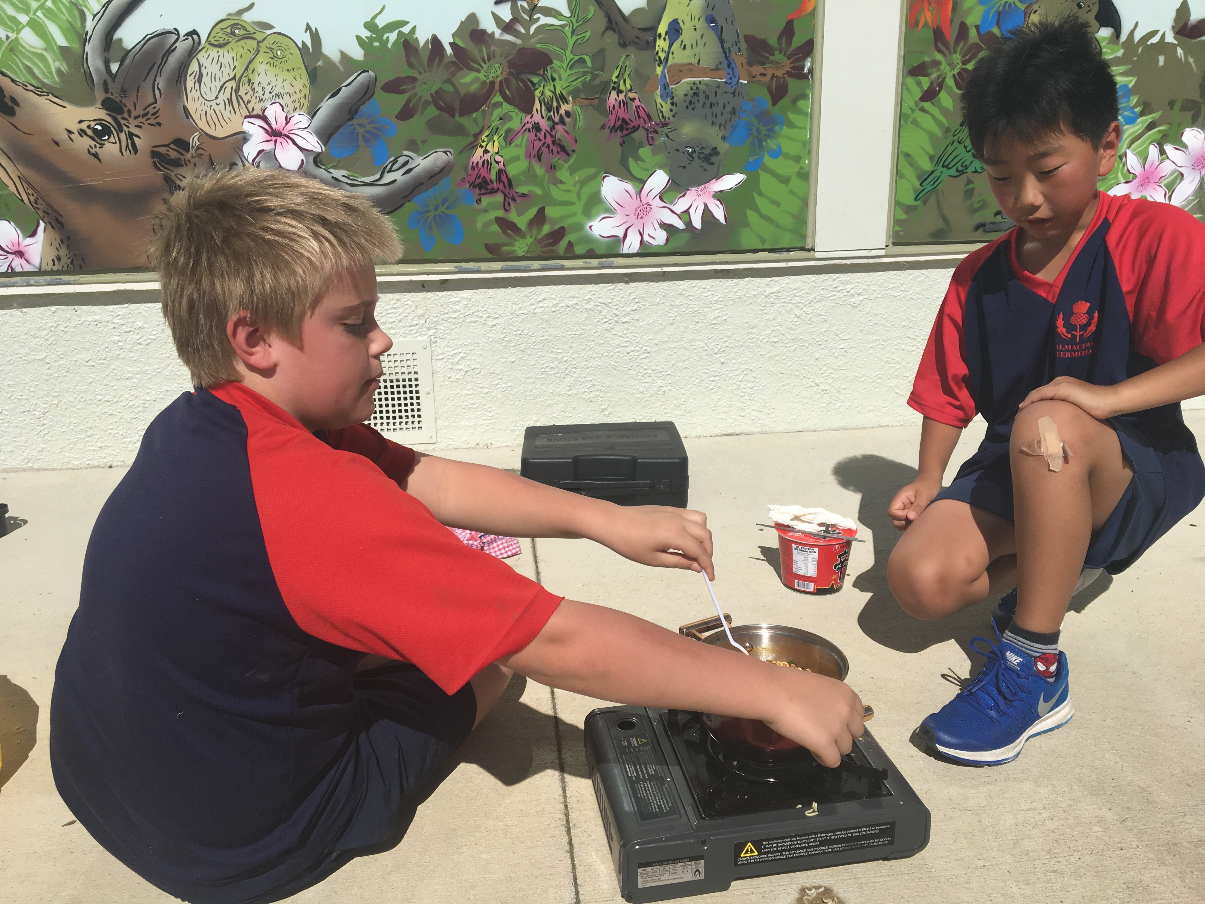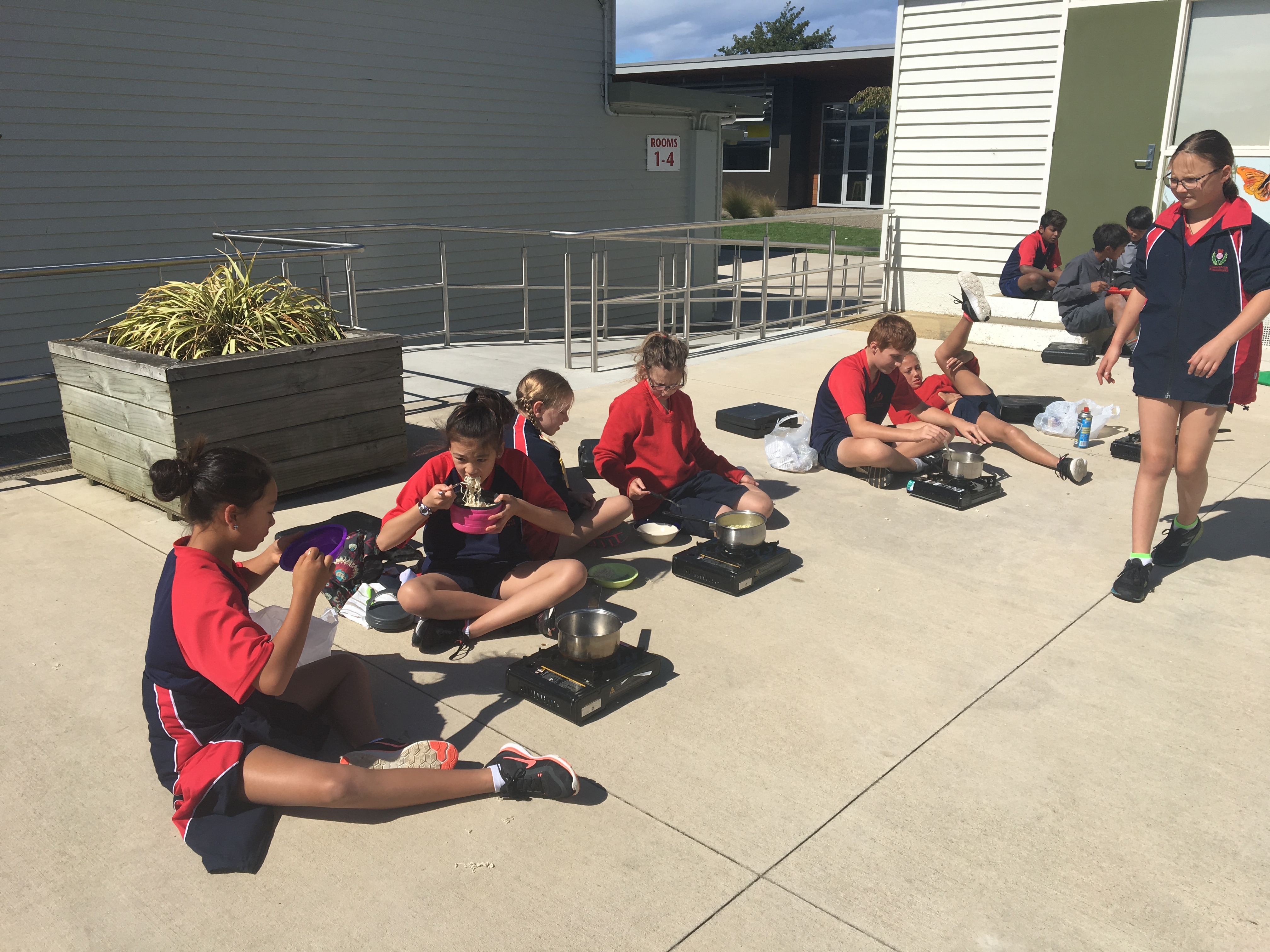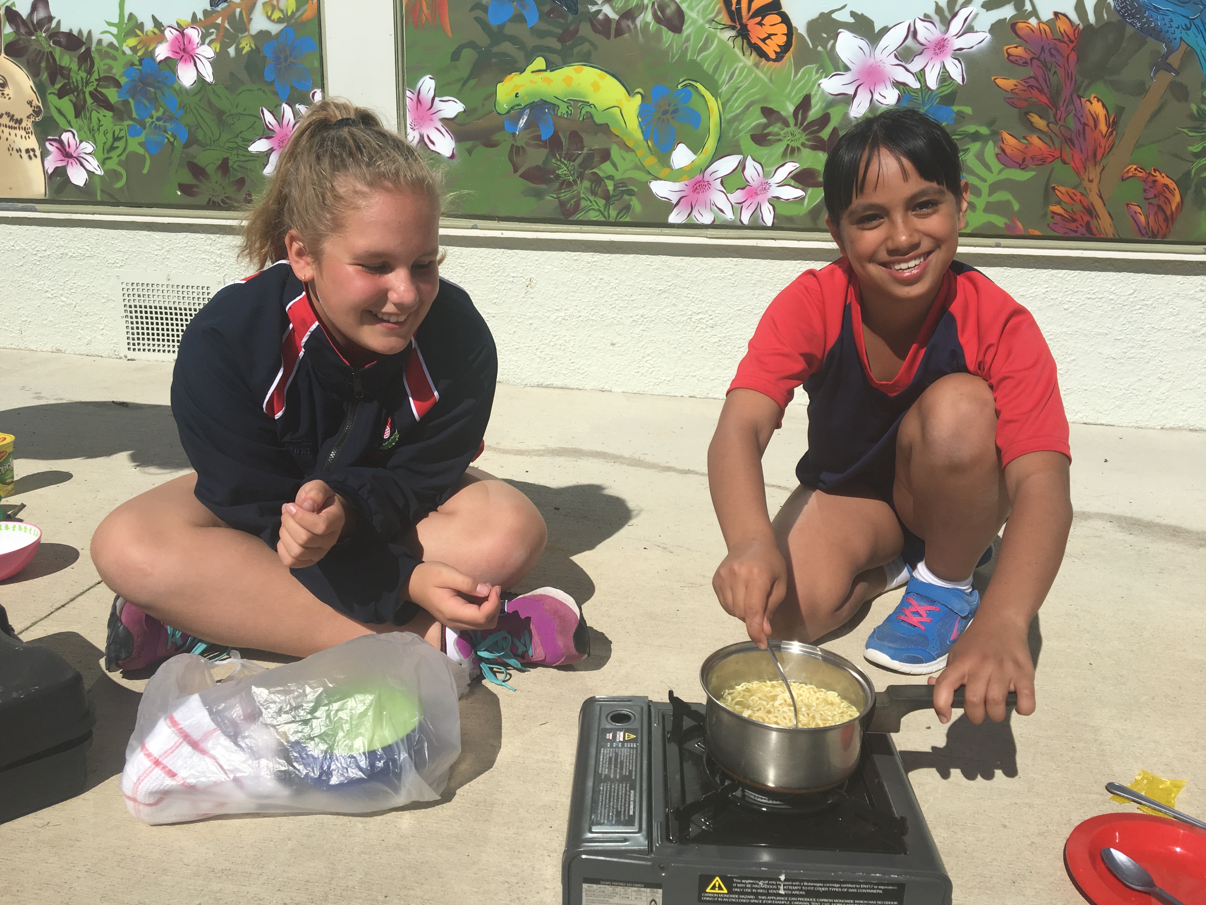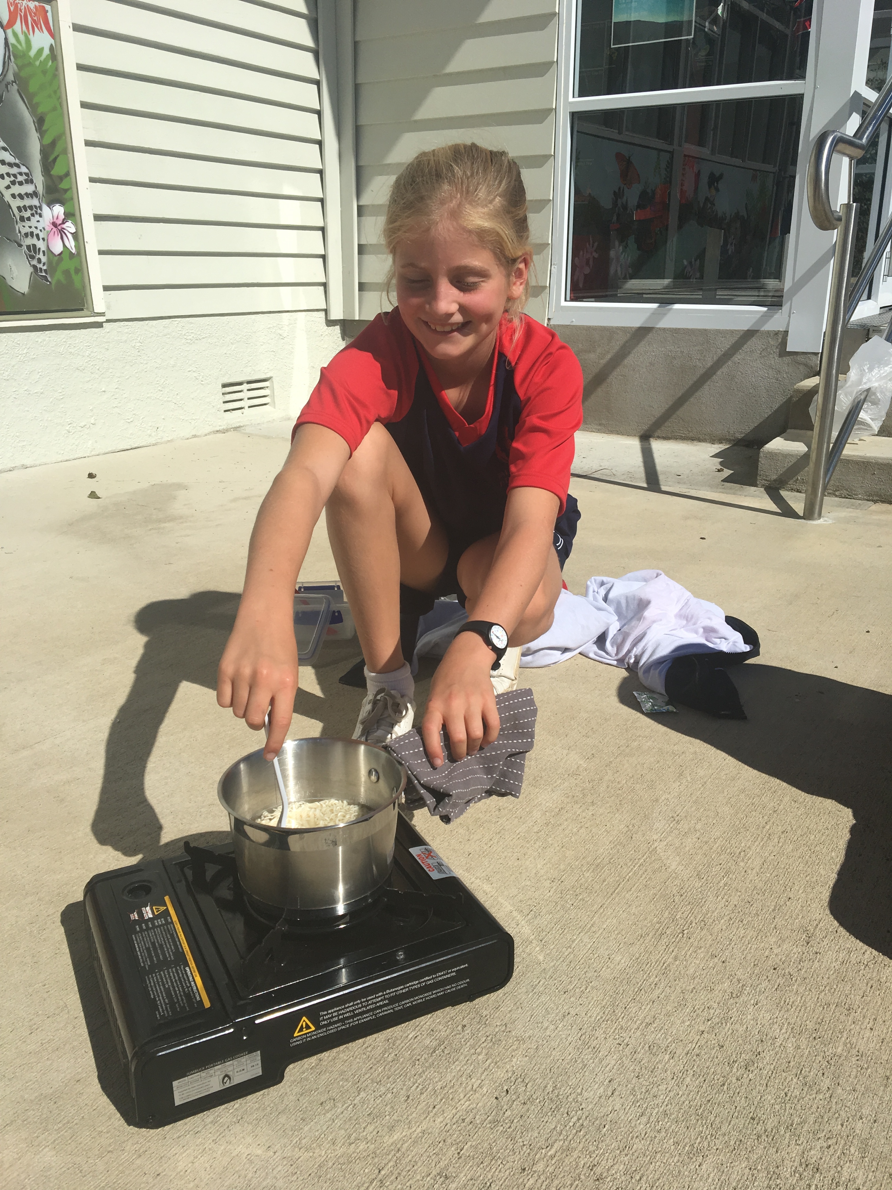 First we filled in a RAMs form and discussed using gas cookers safely. Then we practiced inserting the gas canisters and turning the cookers on and off. We took turns in pairs to cook 2 minute noodles using the cookers so that when we head to camp we can teach Room 10. Check out our pictures below.