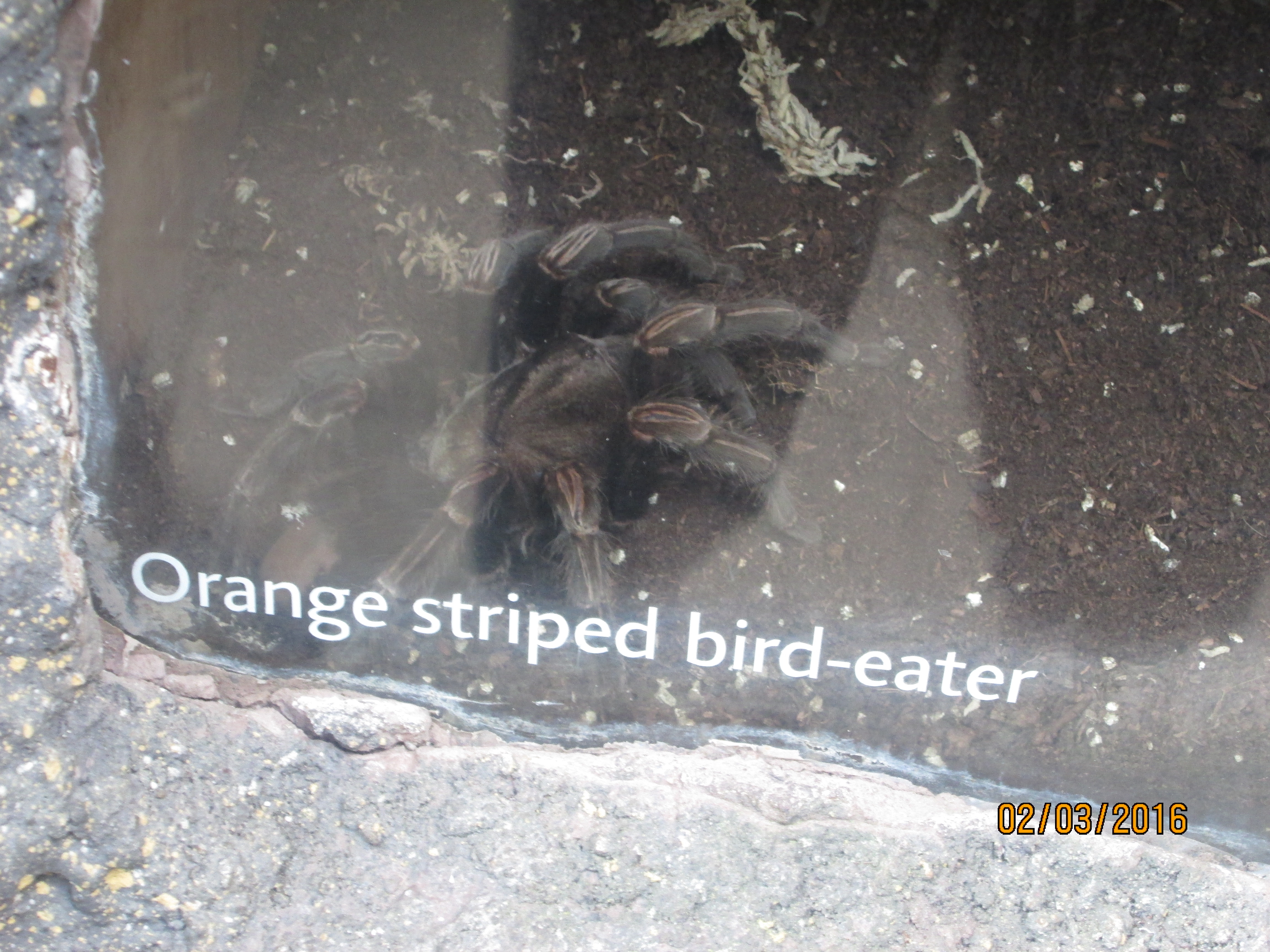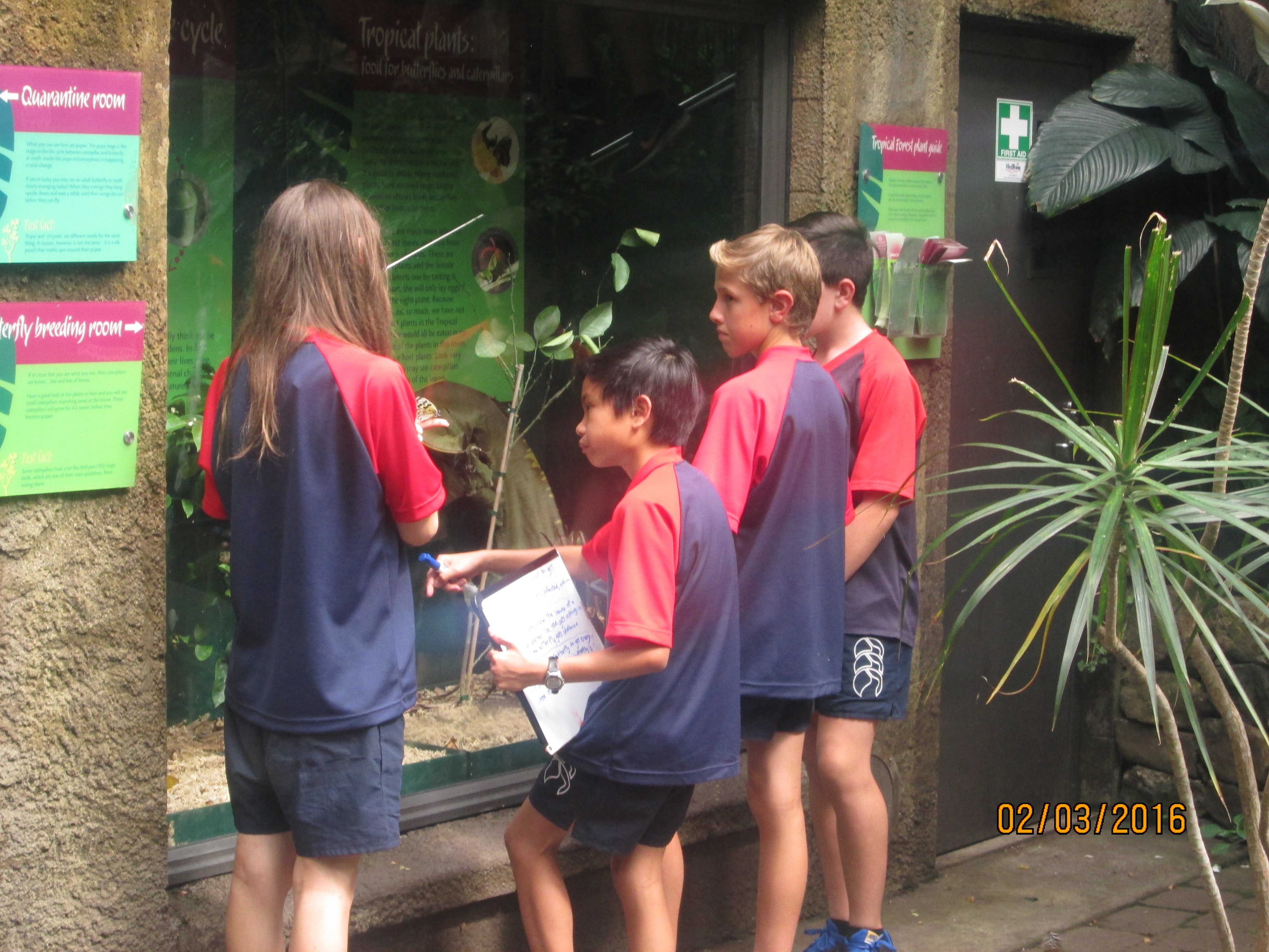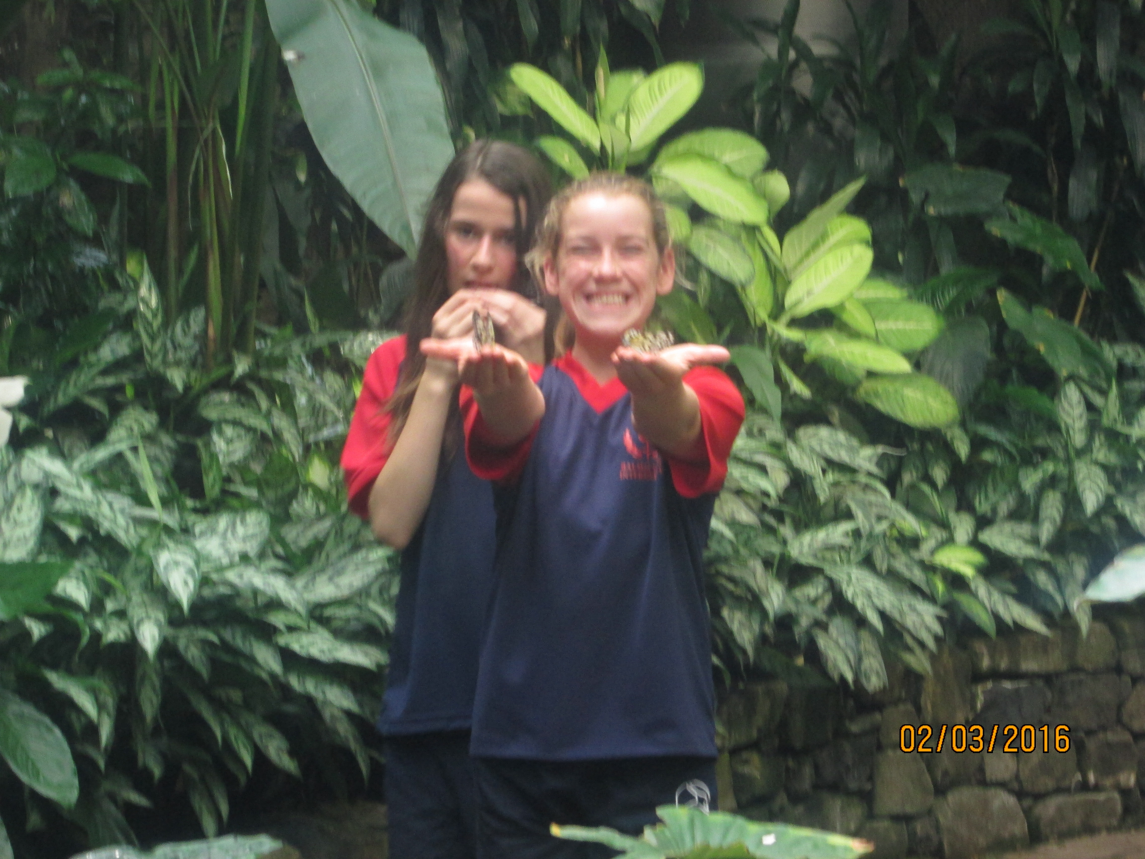 It was hot, humid and sticky within the Butterfly house. We had to put together a presentation to the rest of the class. Highlights included studying the turtles and watching as they devoured butterflies that landed in the water, looking at the life cycle of the butterflies with the caterpillars in their cocoons, watching butterflies feed on the fruit and nectar, and of course being scared of the tarantulas even though they were safely behind the glass.