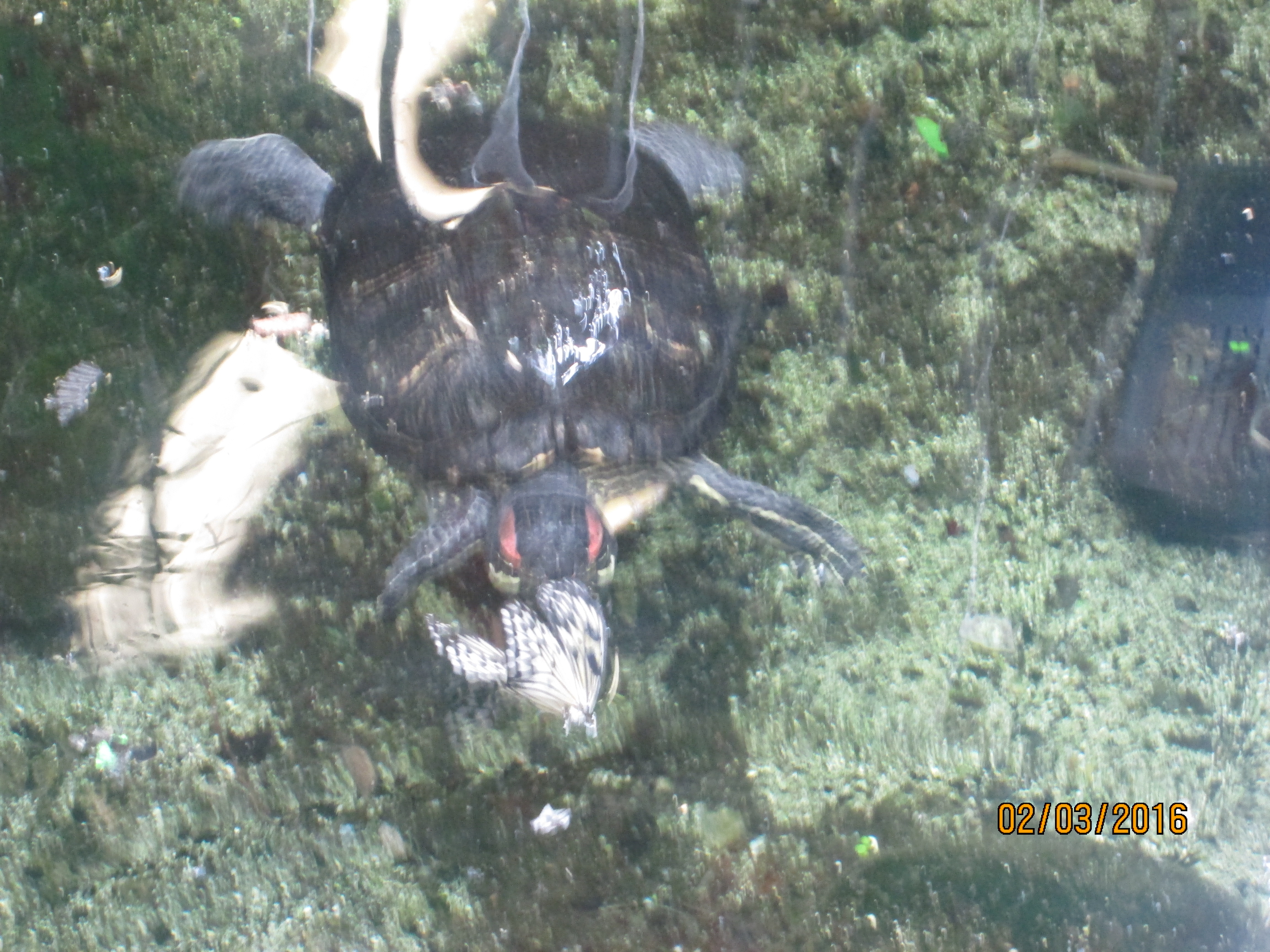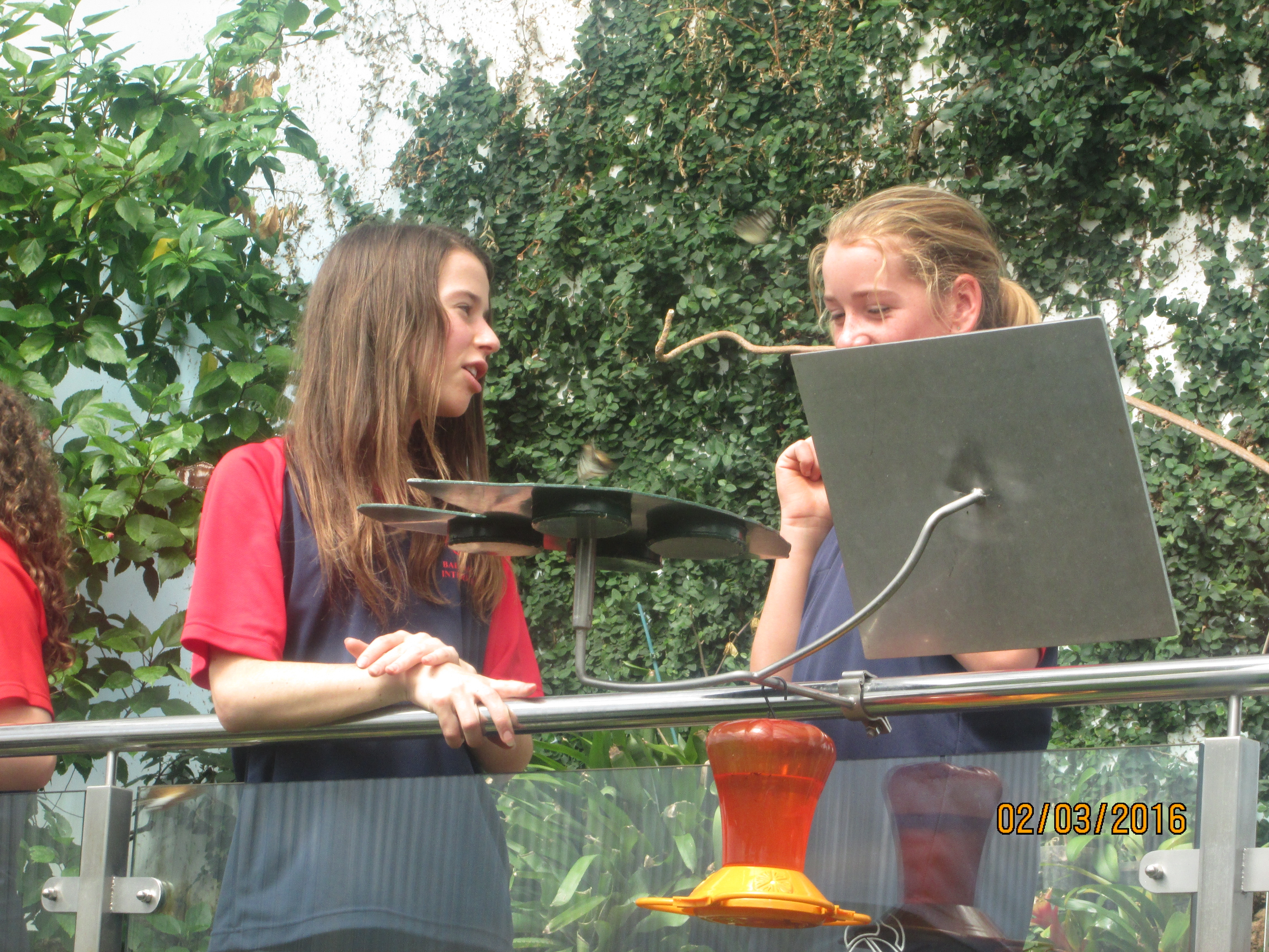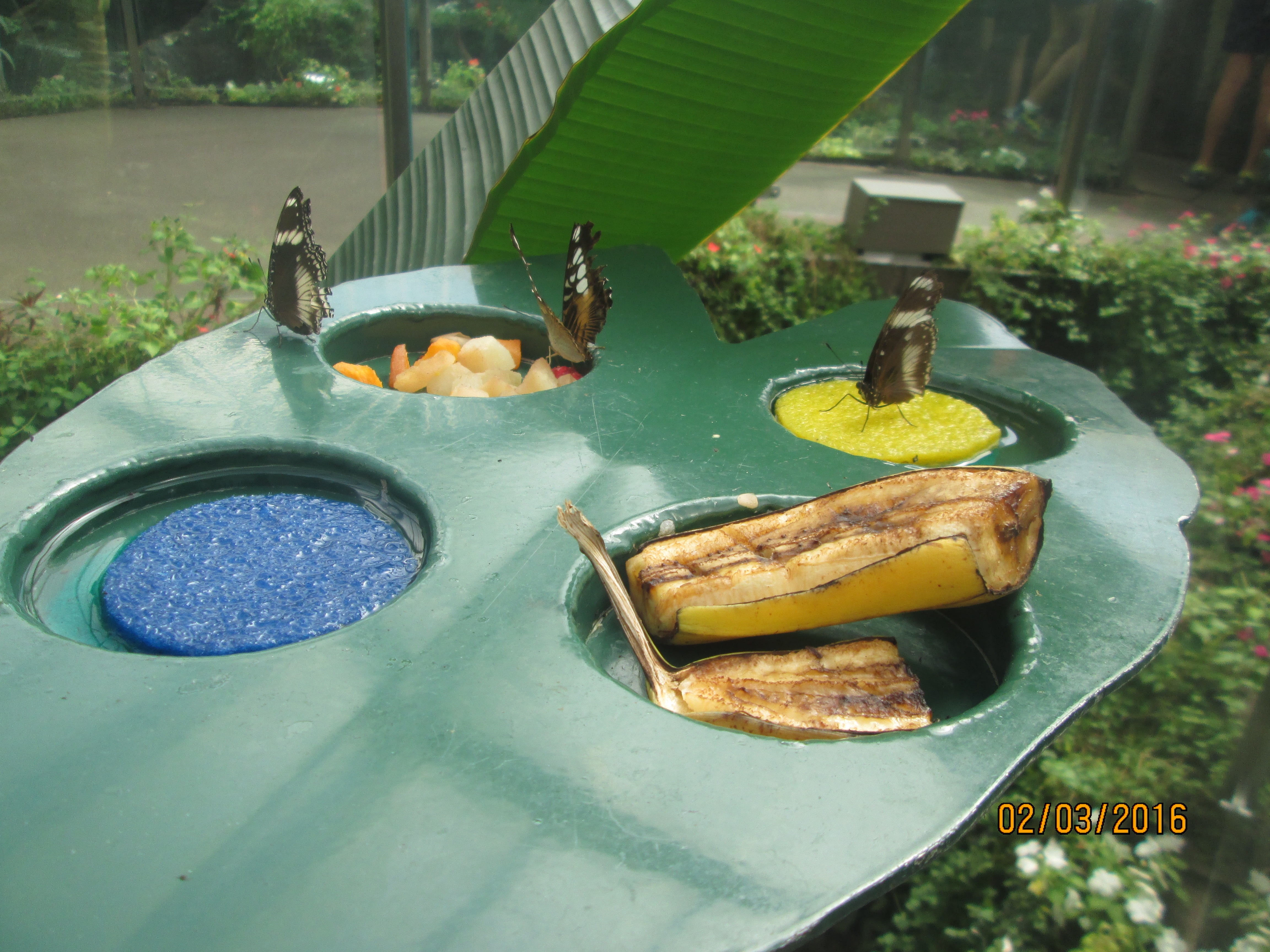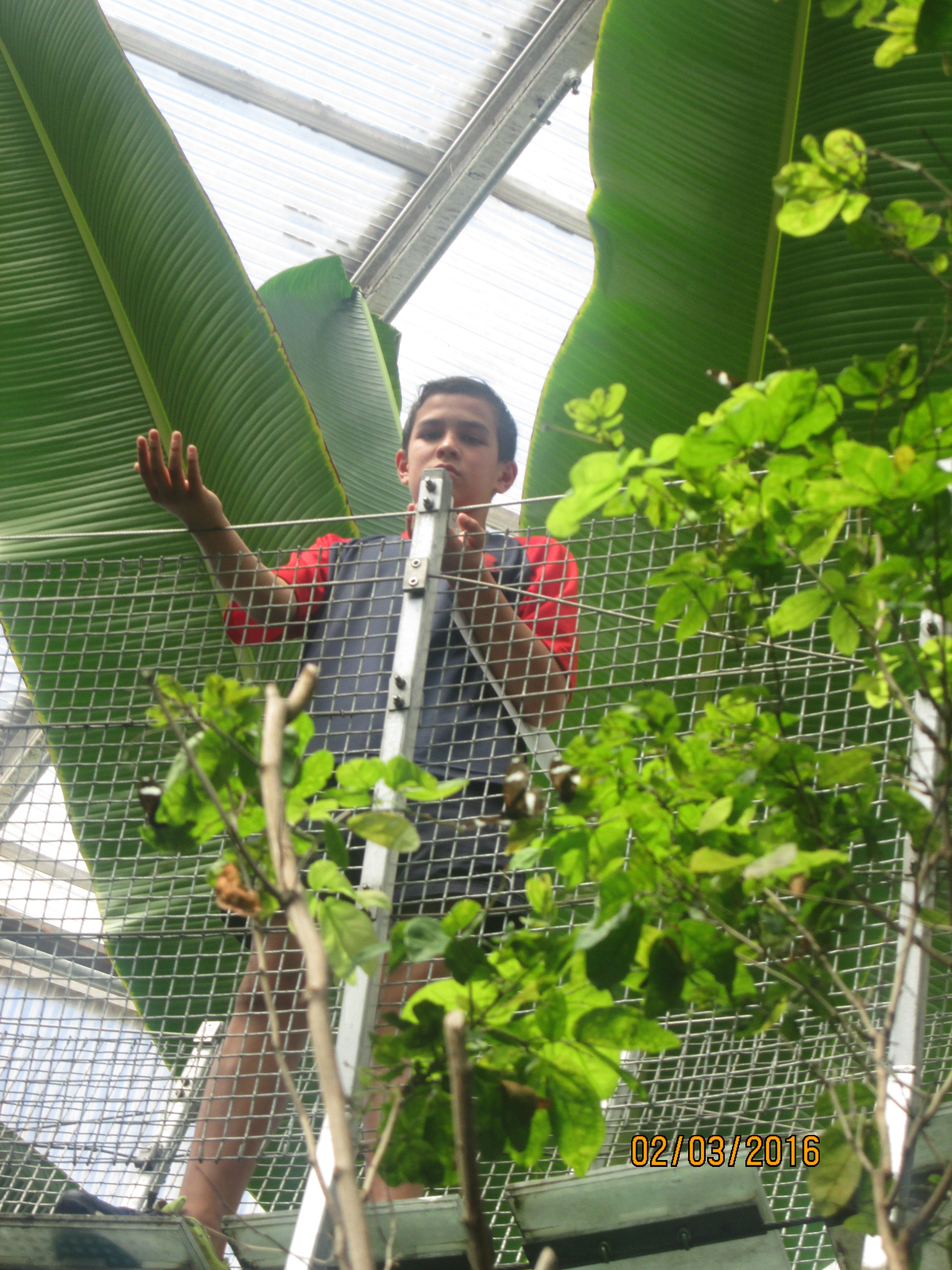 It was hot, humid and sticky within the Butterfly house. We had to put together a presentation to the rest of the class. Highlights included studying the turtles and watching as they devoured butterflies that landed in the water, looking at the life cycle of the butterflies with the caterpillars in their cocoons, watching butterflies feed on the fruit and nectar, and of course being scared of the tarantulas even though they were safely behind the glass.