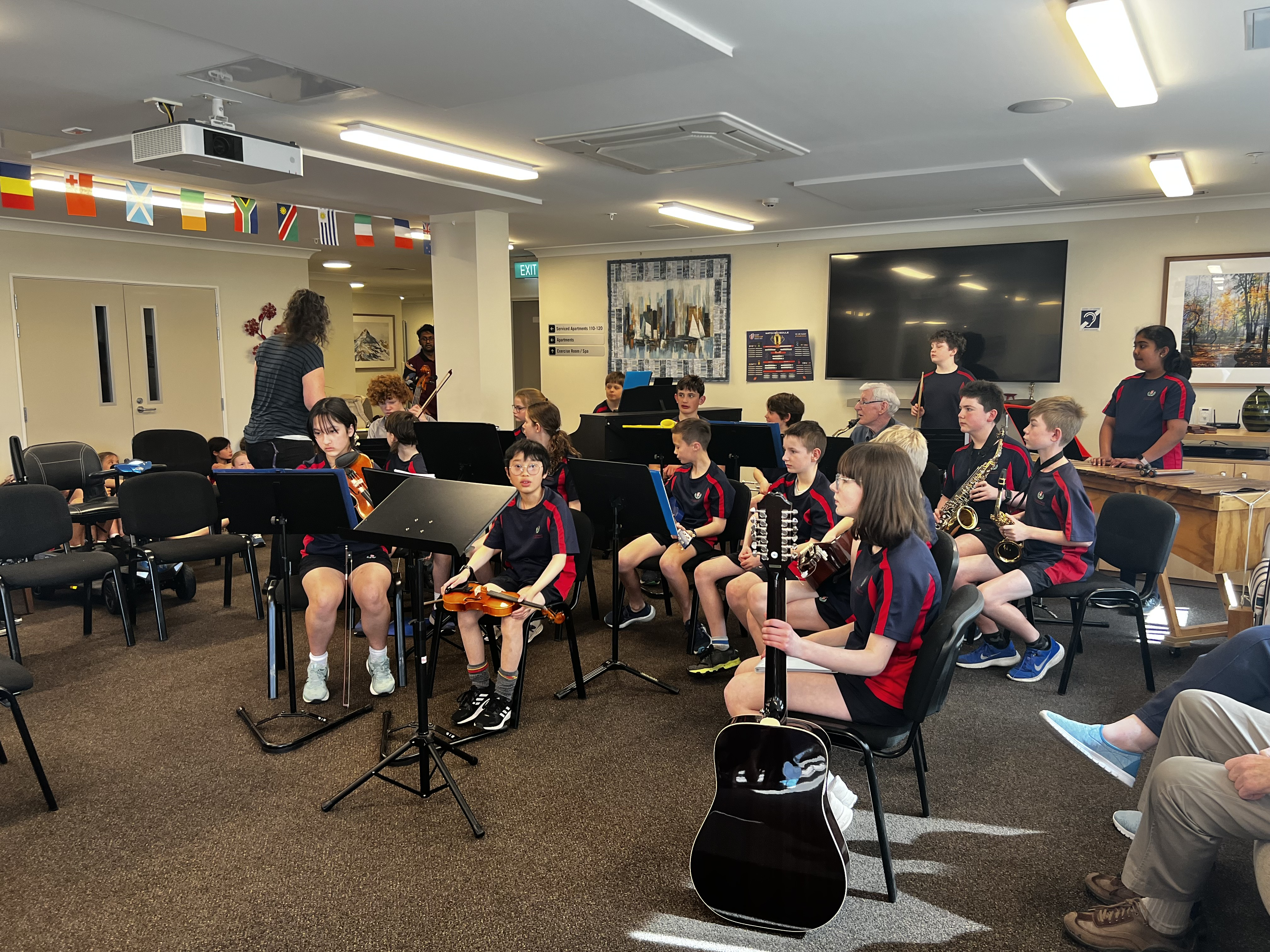 In “Cool Blues” one of the Summerset residents, Eddy, joined the Orchestra, playing tenor saxophone. Torin and Caeli also featured in the orchestra playing an improvisation and solo respectively. In the choir item, “You’ve got a Friend”, Hana sung a solo part. It was lovely to have Gina join us and accompany us on the piano.