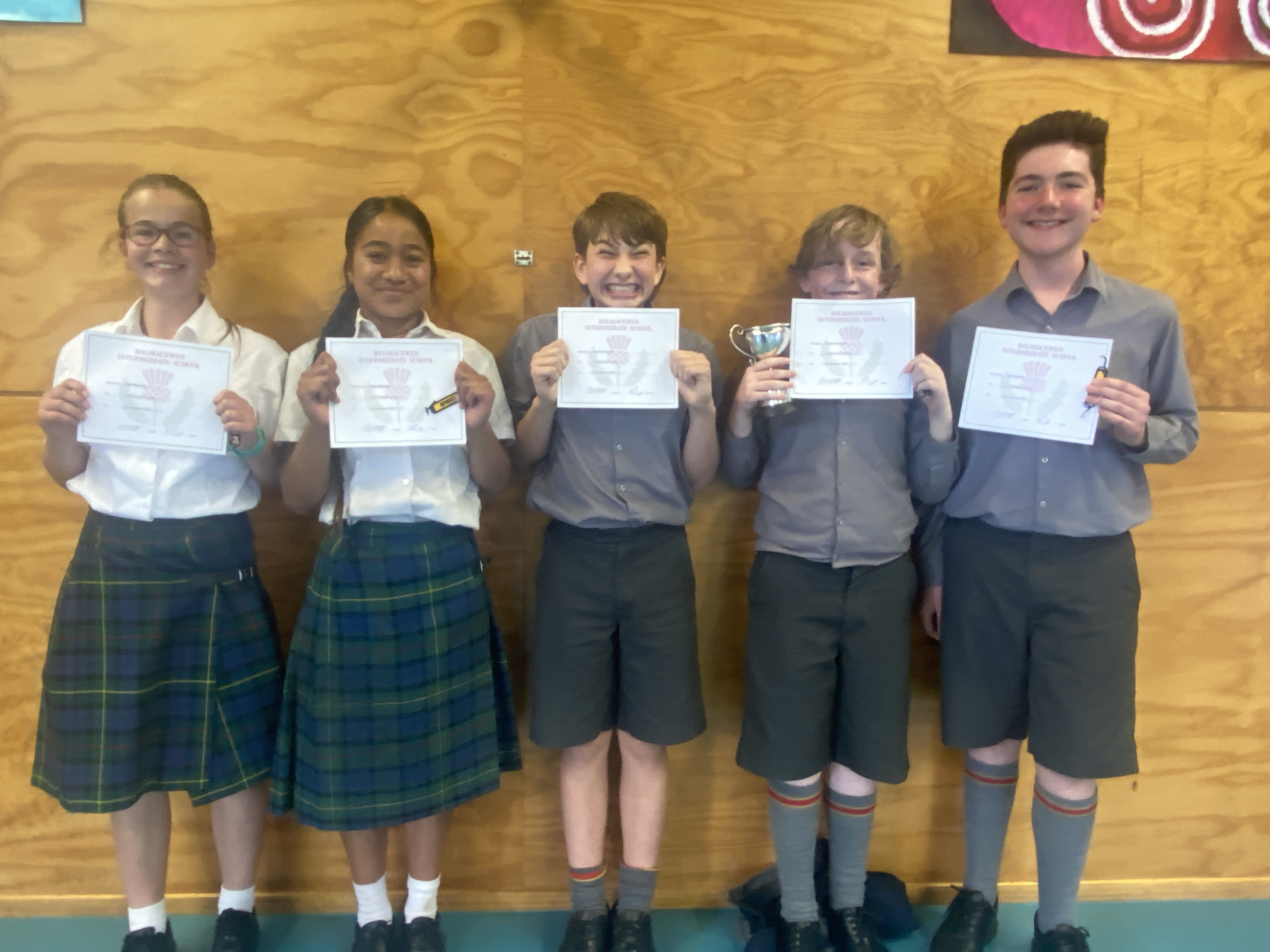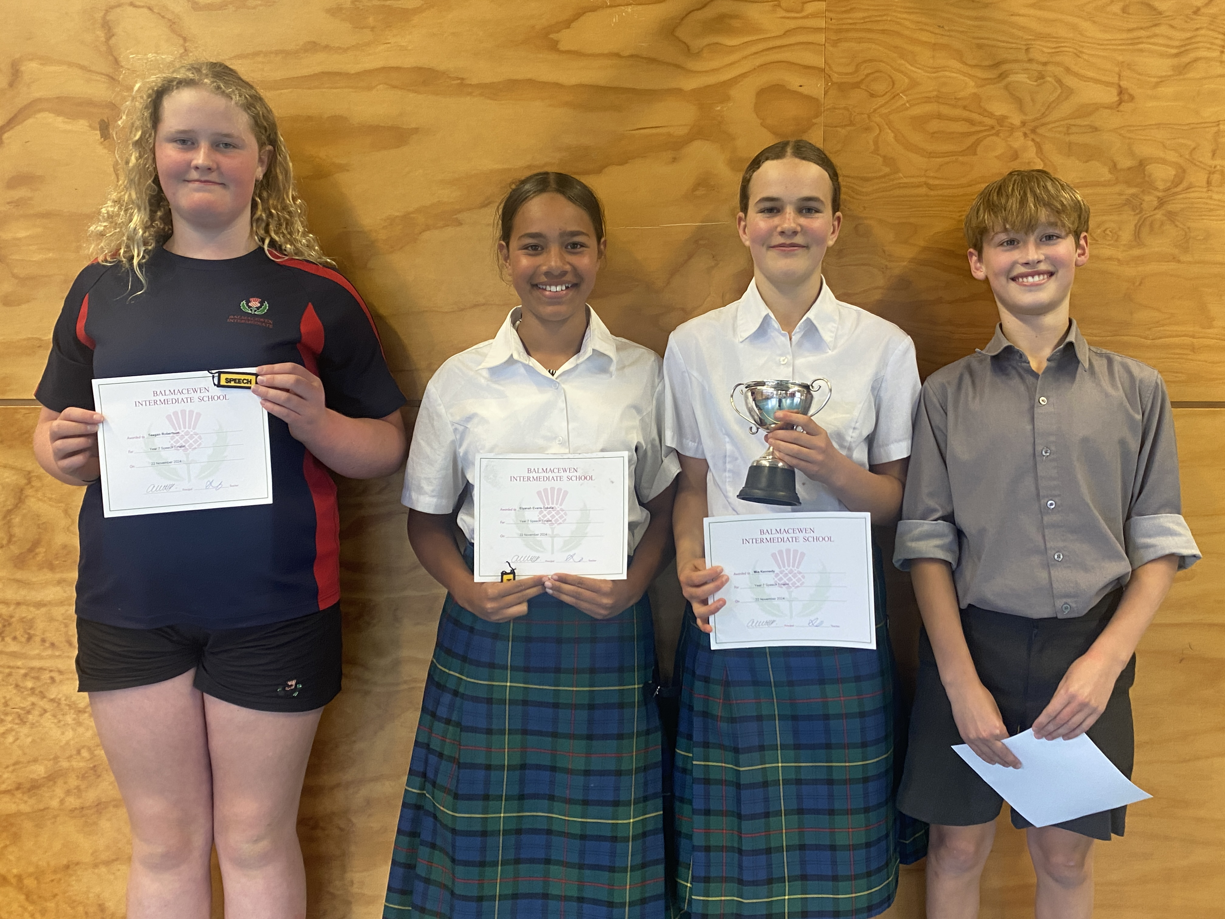 Our judges were Natasha Smille - ex Balmac students and teacher at John McGlashan and Shannon Brawley. They had the very difficult job of choosing a winner from the fantastic finalists speeches that were presented. We would like to congratulate Mia and Thomas who won the speech cups, a double for Thomas in Year 7 and Year 8.