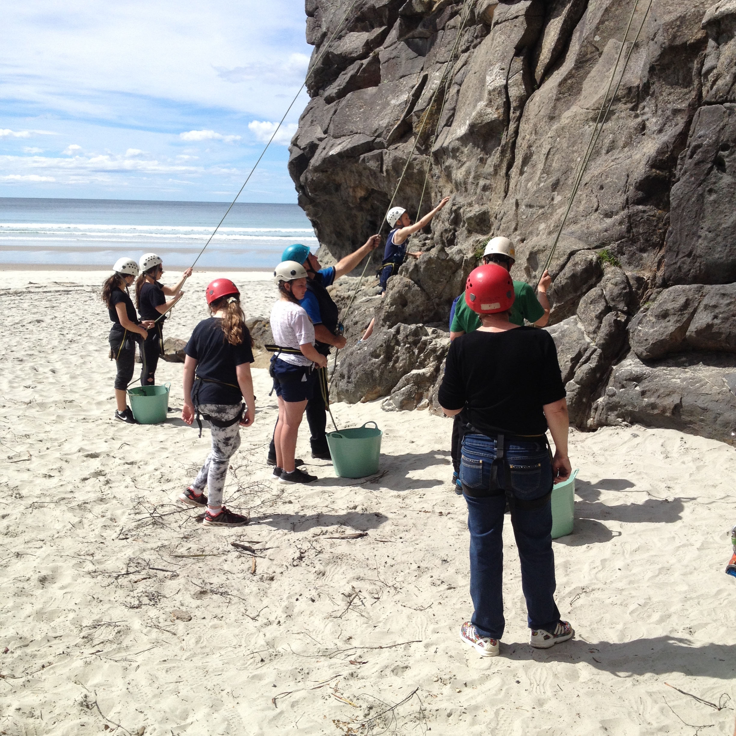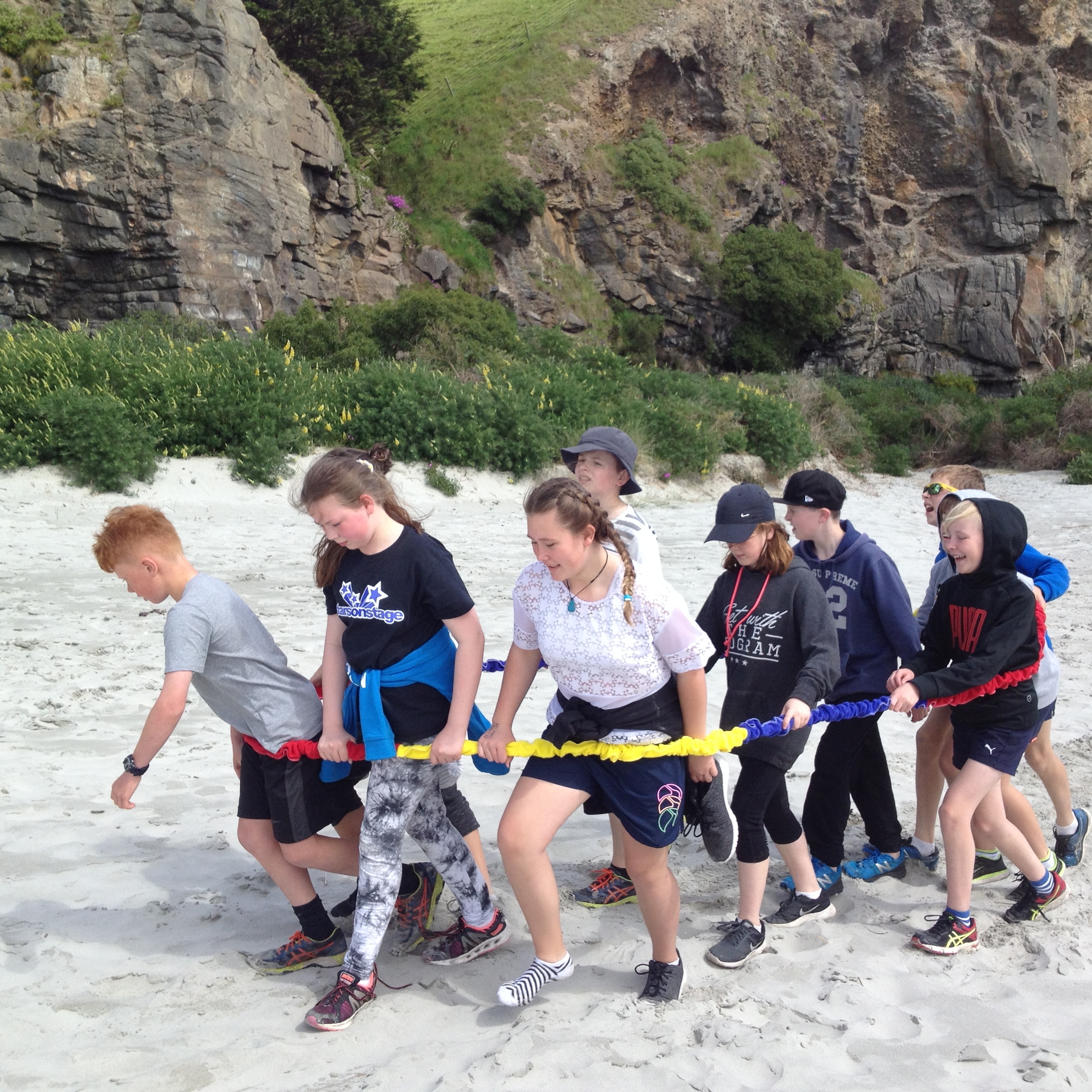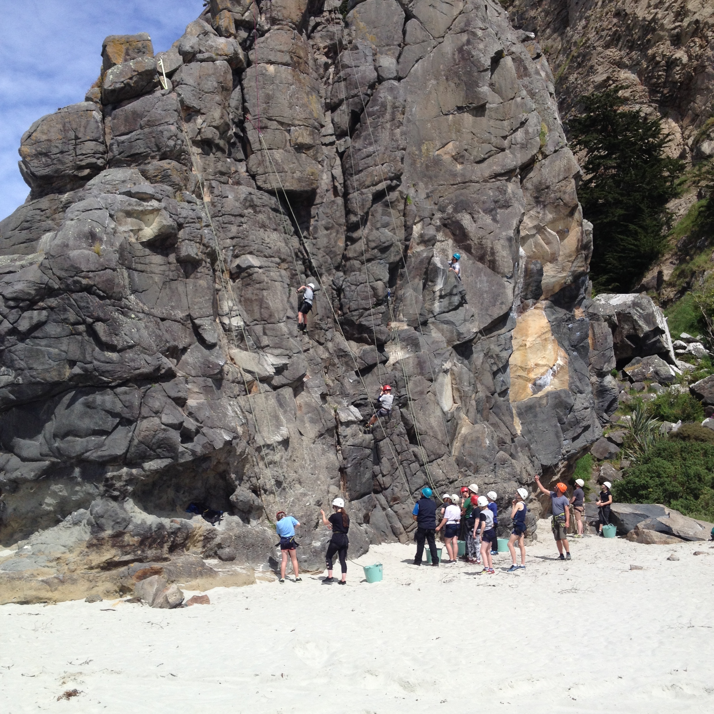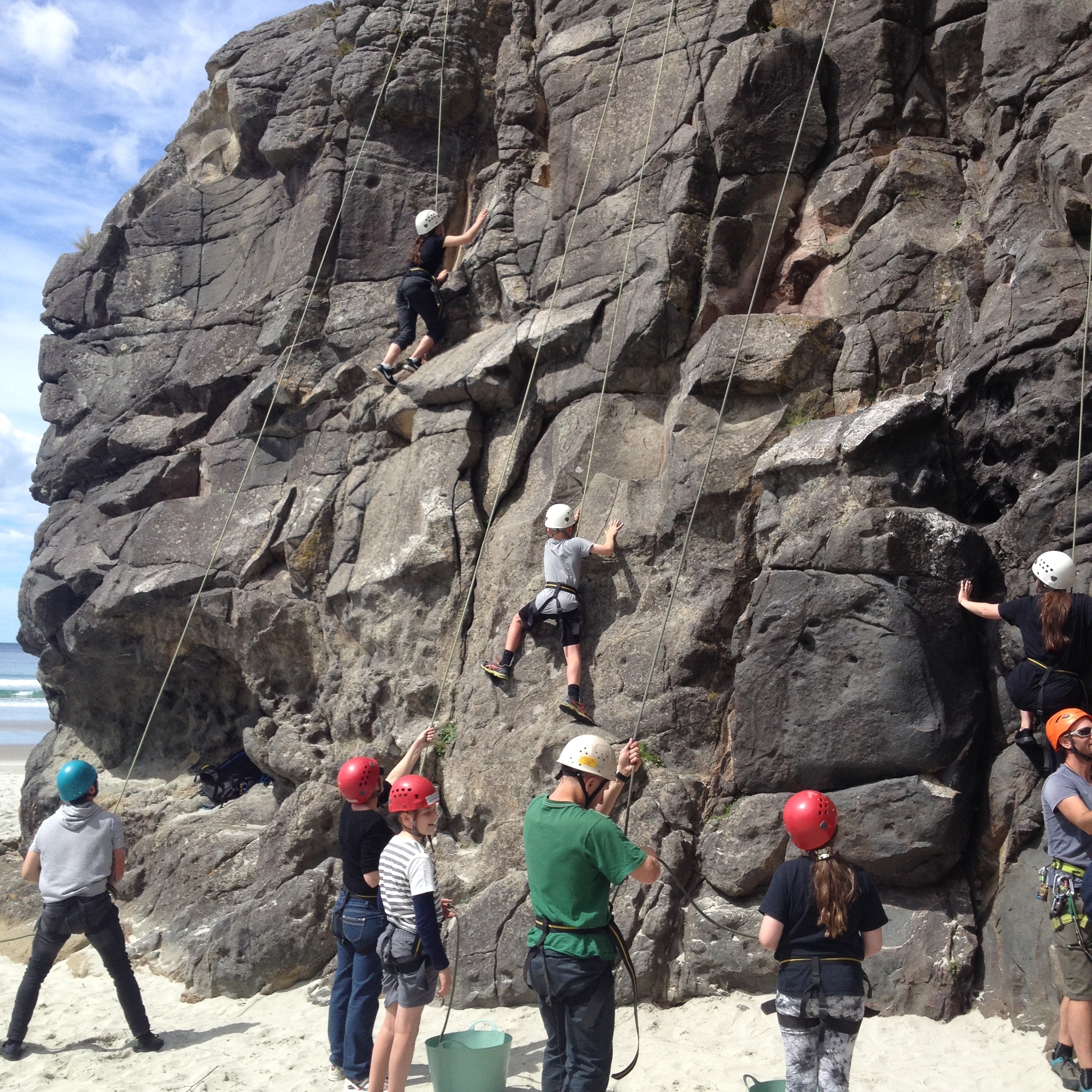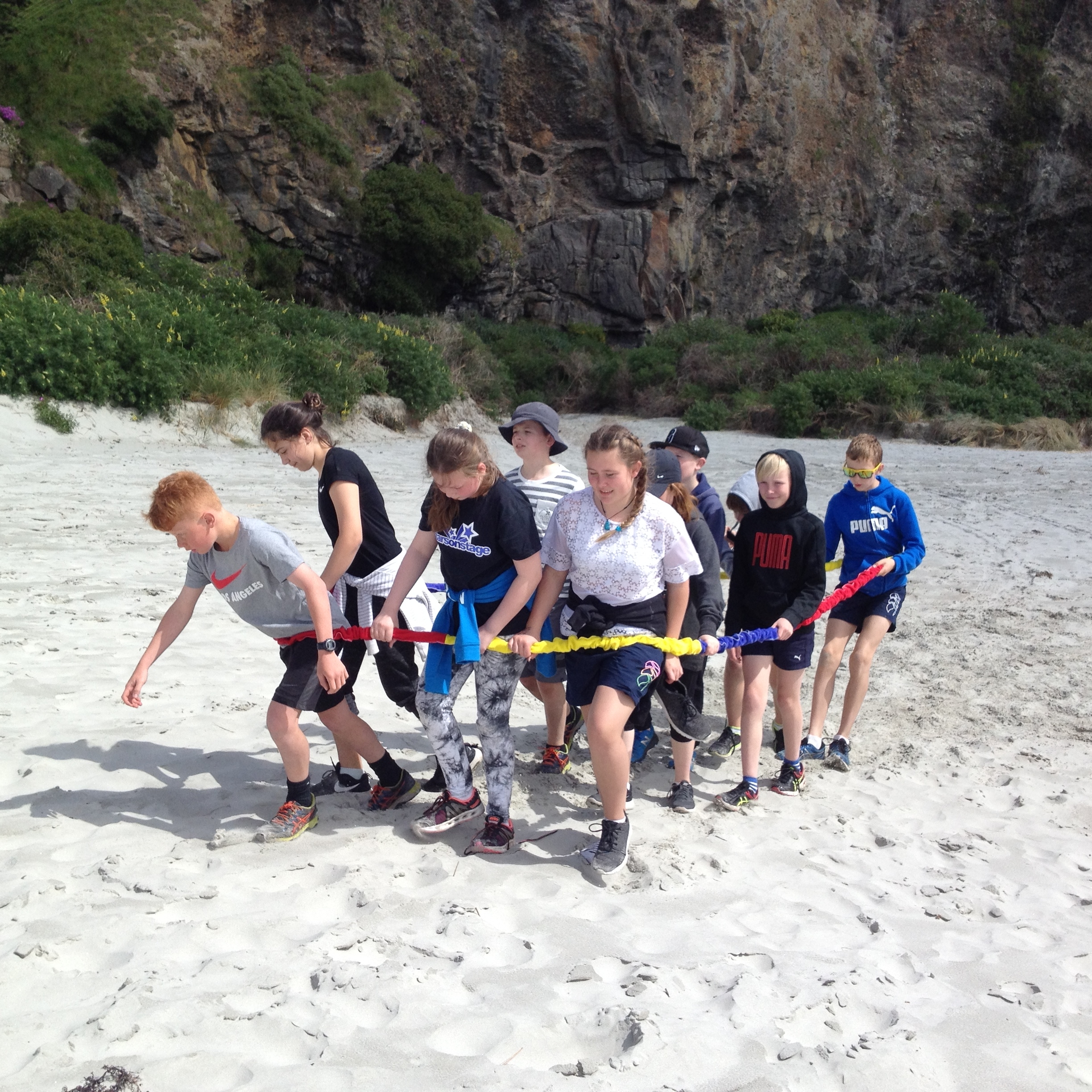 On Tuesday the 24th of October Room 5 went on a class trip to Long Beach. When we got to school we got into the parents’ cars and drove all the way to Long Beach. When we arrived at long beach we walked over to the rock and sorted into the groups. I was in the middle group. We got to go to the middle part of the beach and did whatever we wanted, like play with sports gear or make sand castles. After that the Wearable Arts students went to their rehearsal for Wednesday. My group then went to the cave. n the cave we had to find some fake $20 notes and exchange them for parts of a riddle. Once we solved the riddle we then we went to the rocks and did some rock climbing. There were 5 ropes set up and we all enjoyed ourselves.