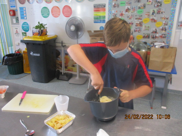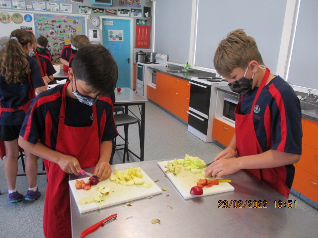 We have been working on accurate measuring, safe cutting as well as team work and growth mindsets. Trying new foods has been something that every student has been doing.