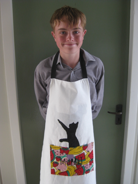 It was exciting to see some design variations in the aprons. A particular favourite was the use of second hand towelling. Some recognised that when baking or cooking they often needed to wipe their hands. A few students came up with a towelling addition like a pocket or a hand towel that velcro on and off to be washed. Genius!