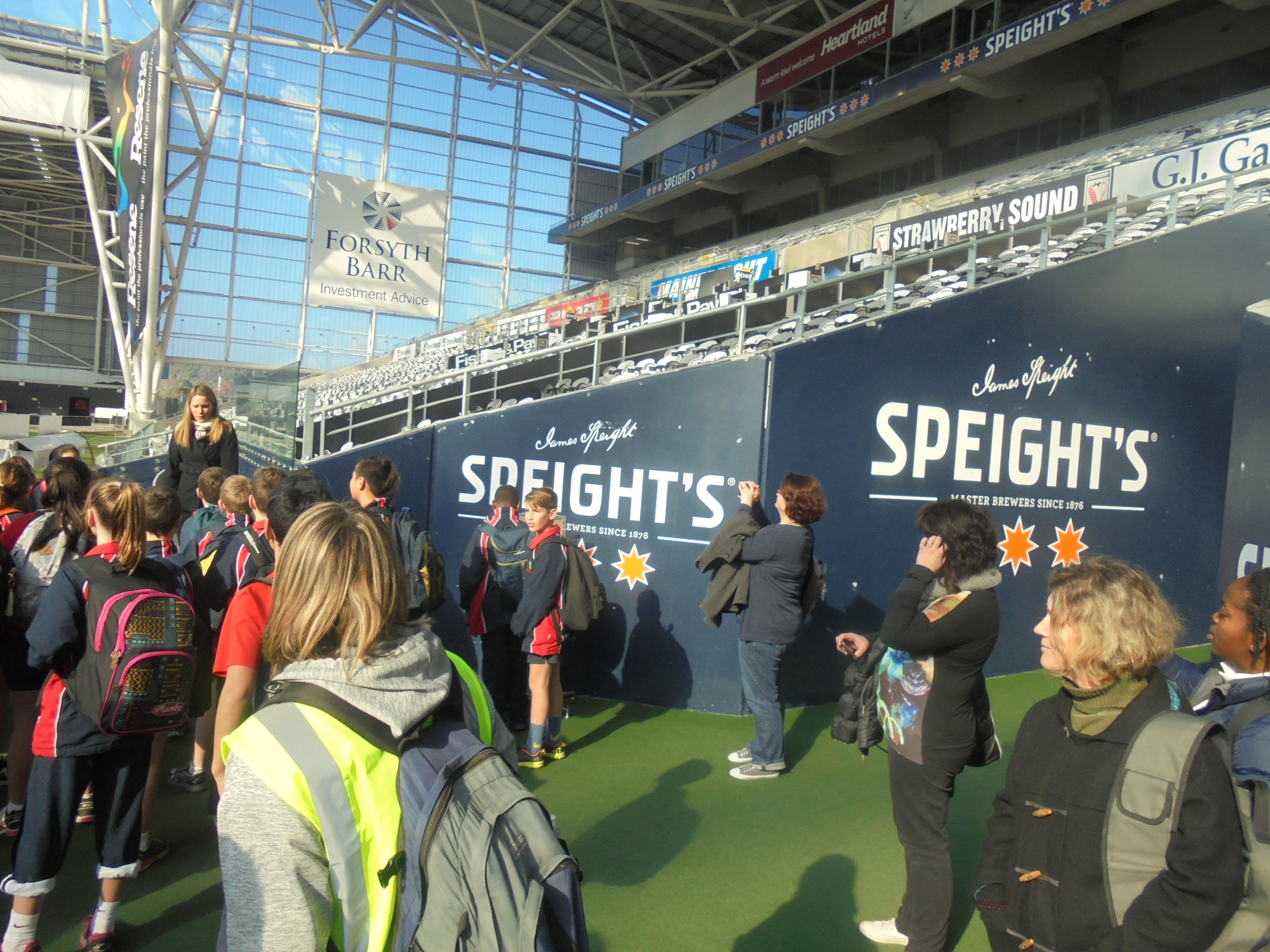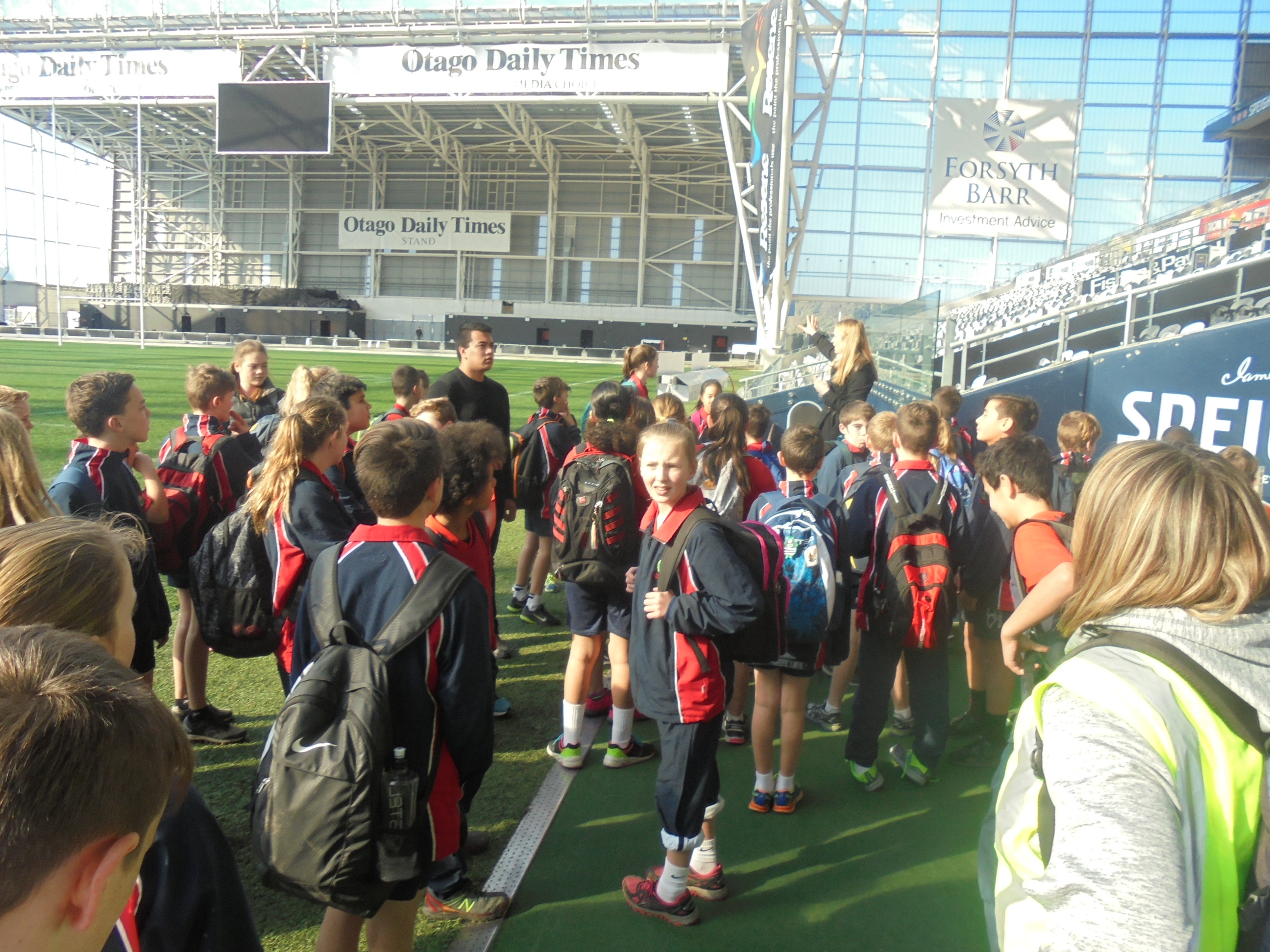 Our next stop was Unipol where we got a tour around the facilities and had a game of giant dodgeball. After lunch we had a tour of the stadium. We even got to run through tunnel like the Highlanders! For Block fans we also saw Emma.