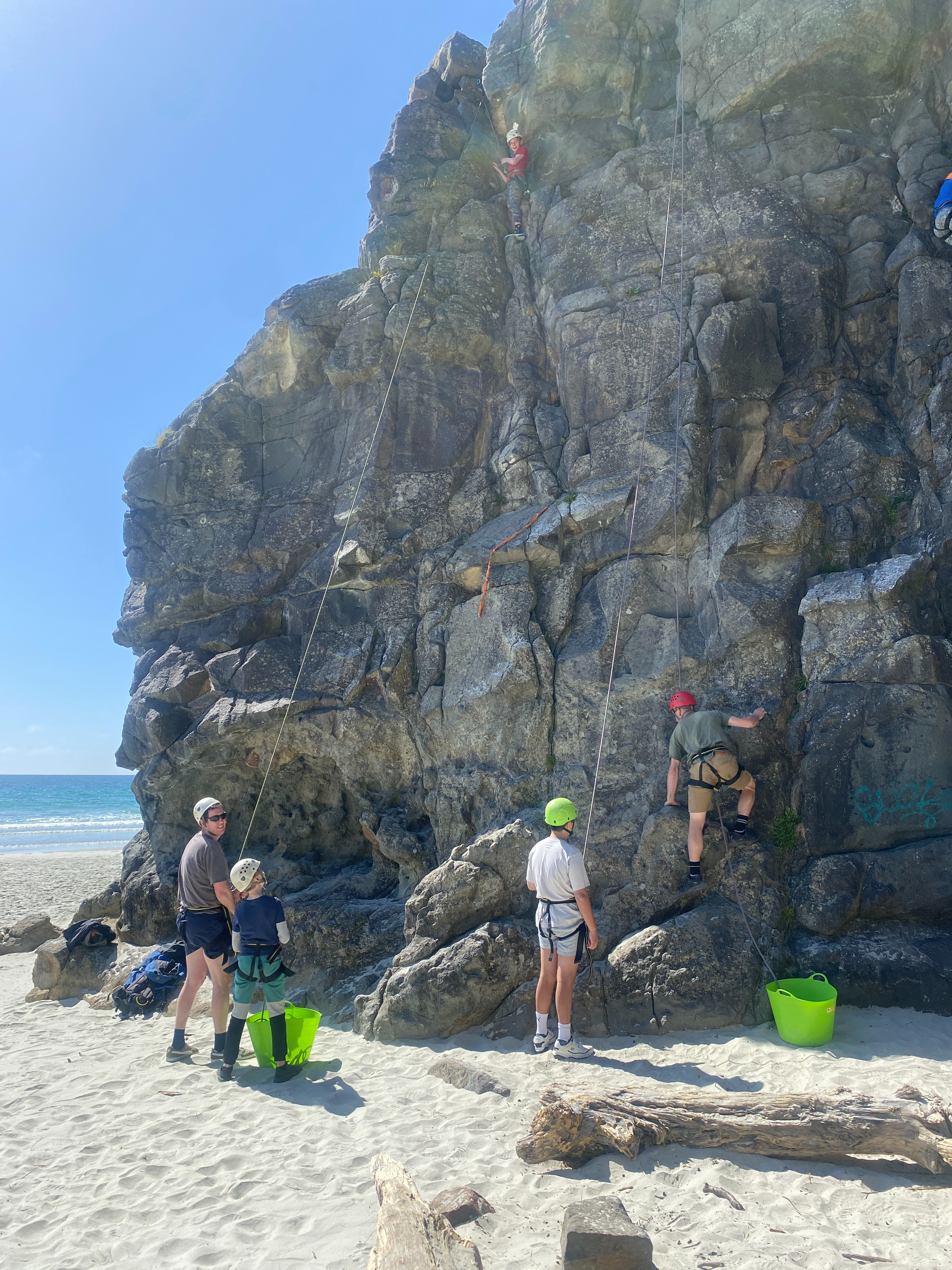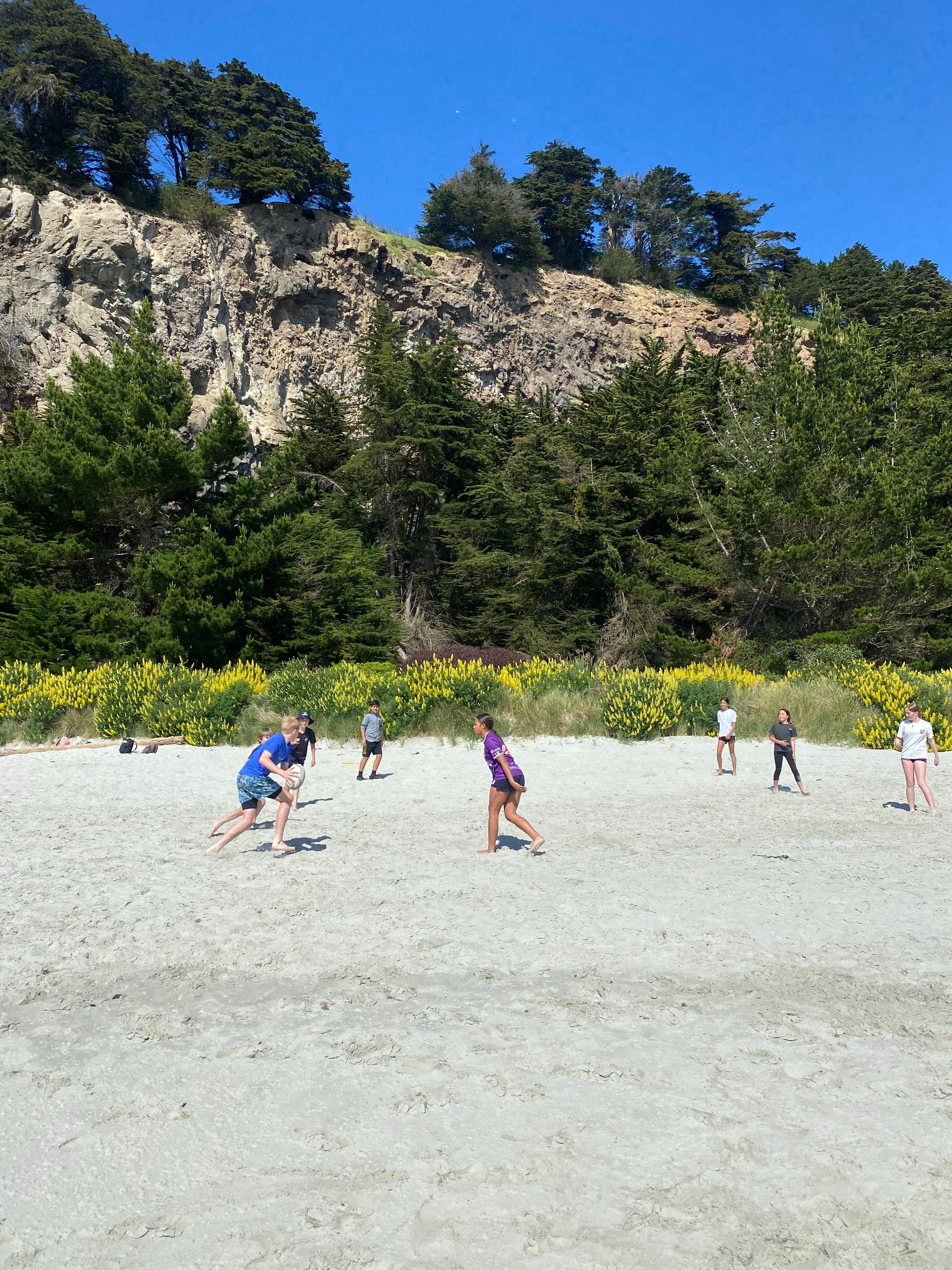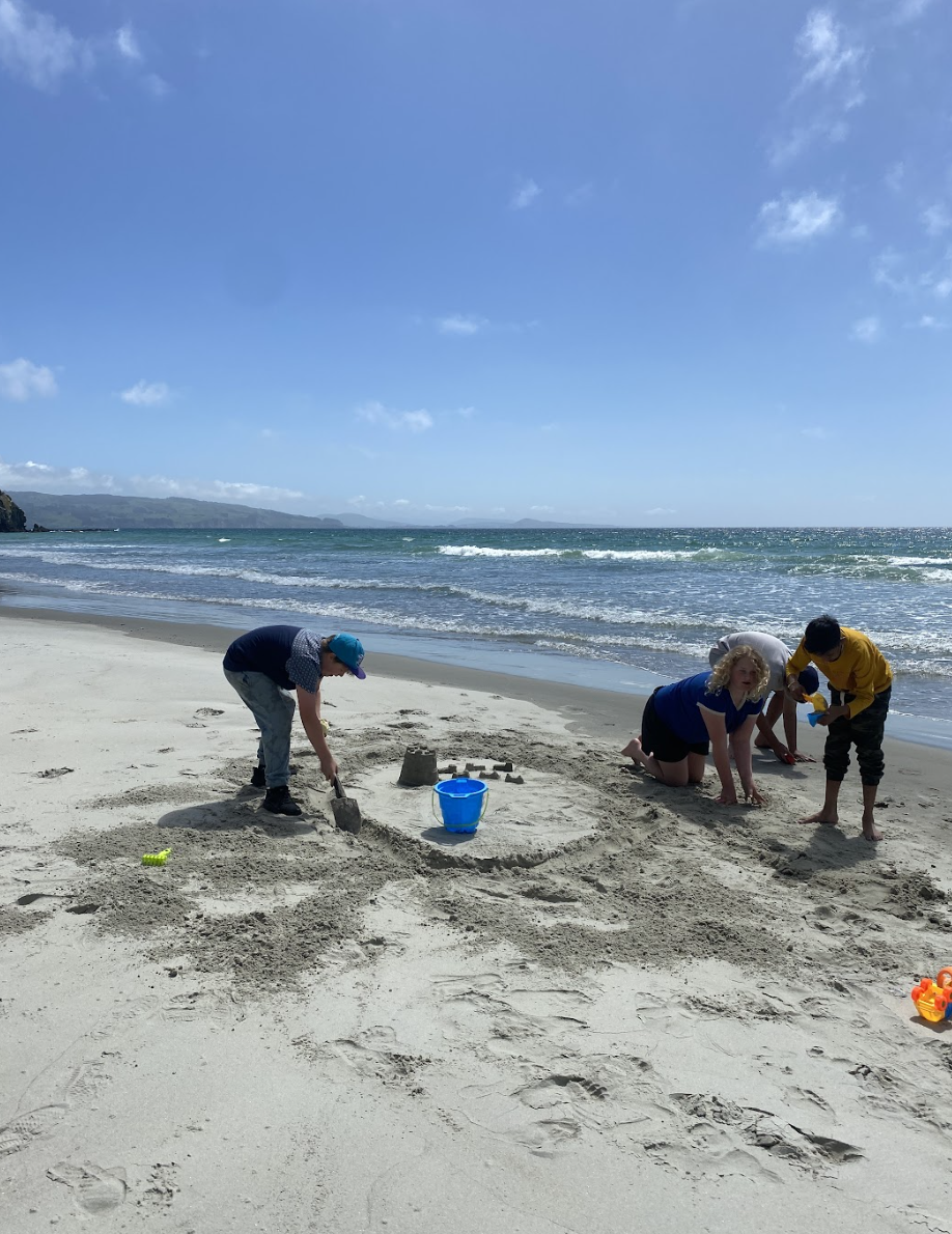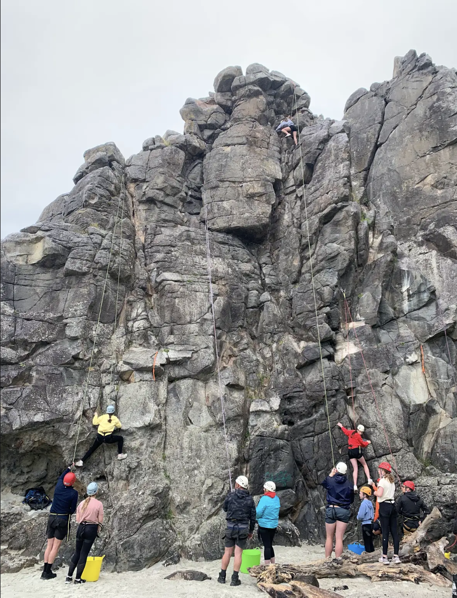 At Long Beach each class was split into three rotations. One group was on the Rock climbing under the tuition of Tim or Ben from Dunedin Adventures. They were trained for the safety aspects and fitted out with their harness and gear. There were five different rock climbing challenges and students had the opportunity to gain confidence with easier climbs before tackling more challenging ones. It was fantastic to watch the students succeed and push themselves on the rock wall.