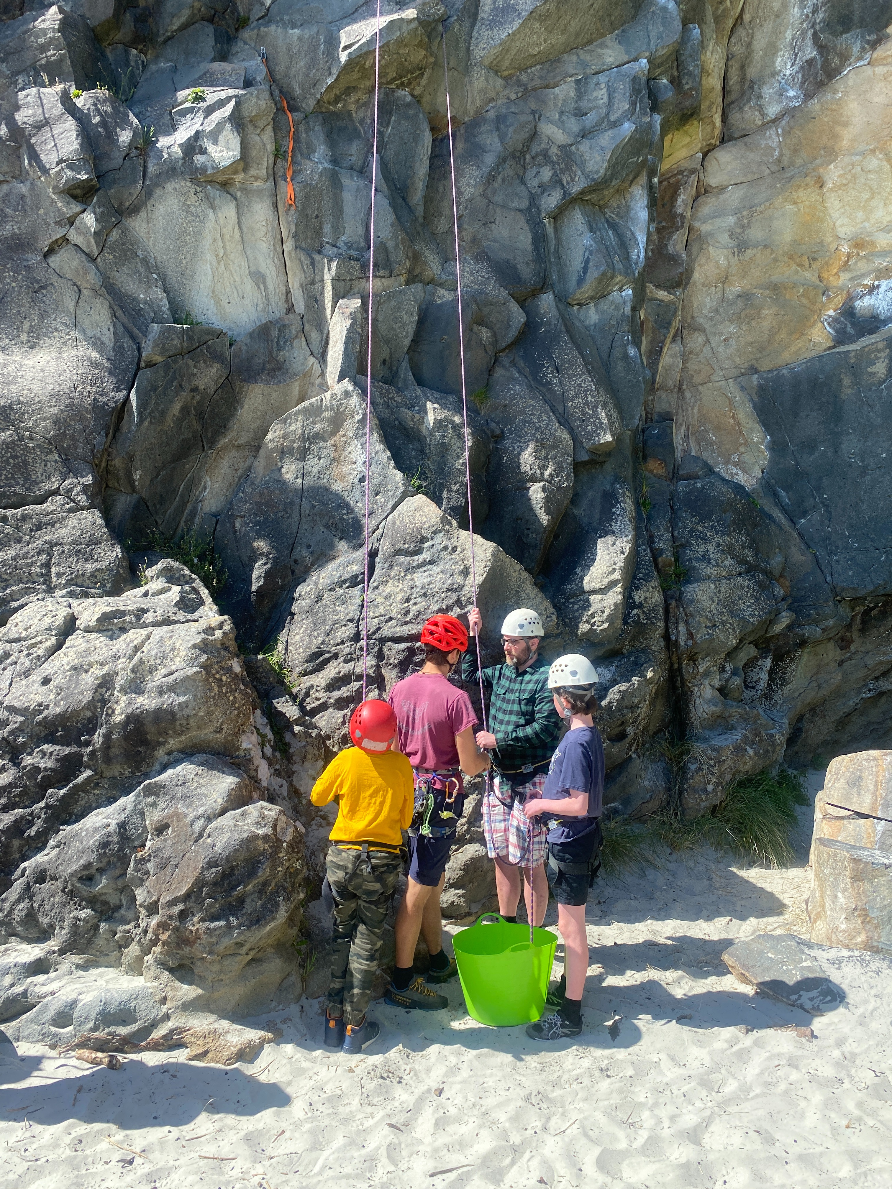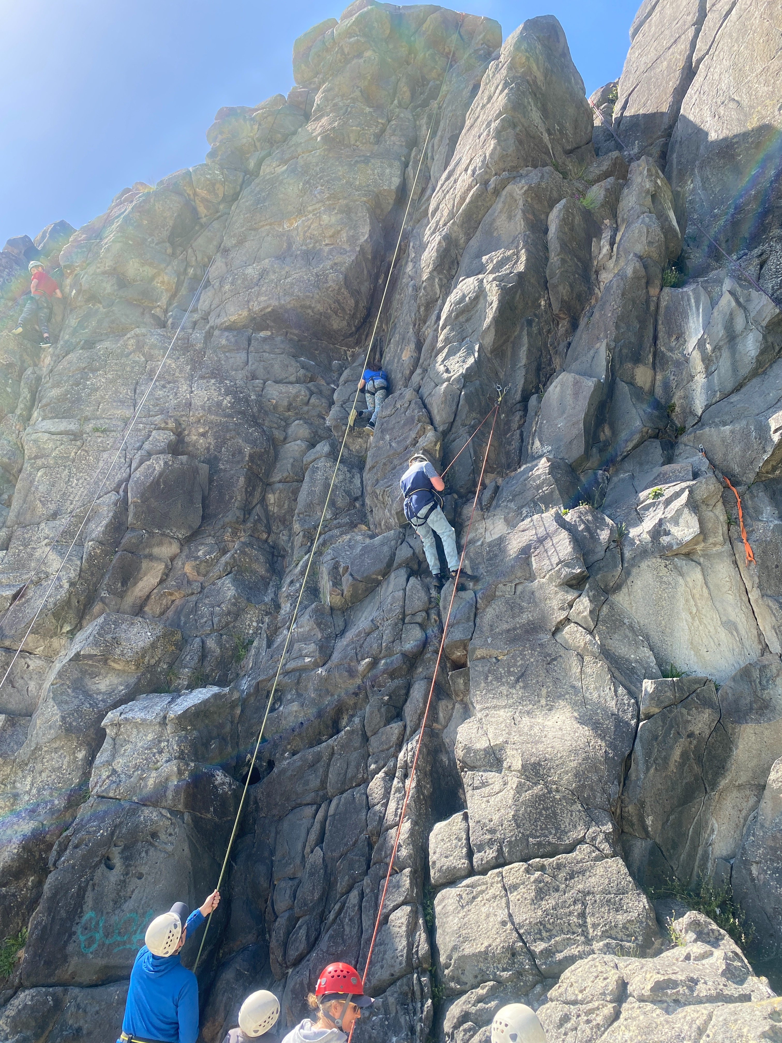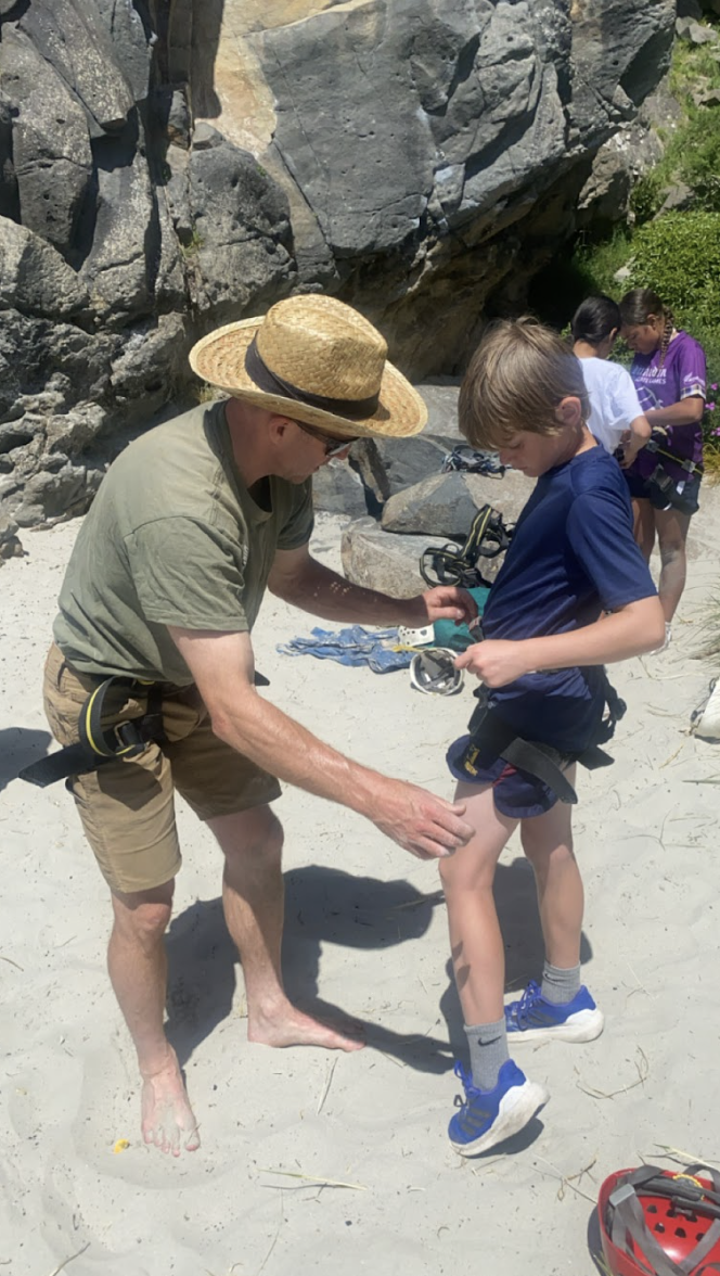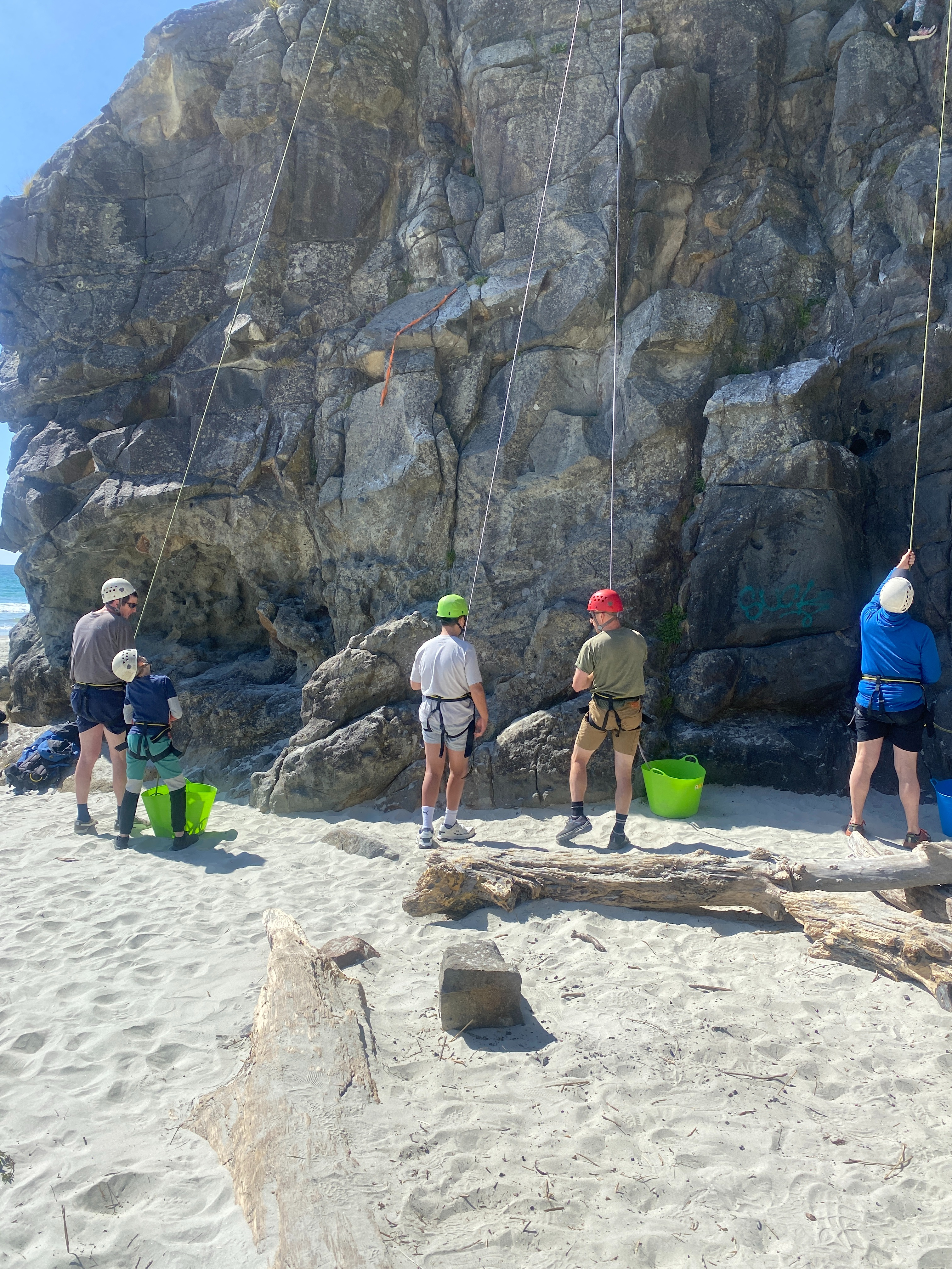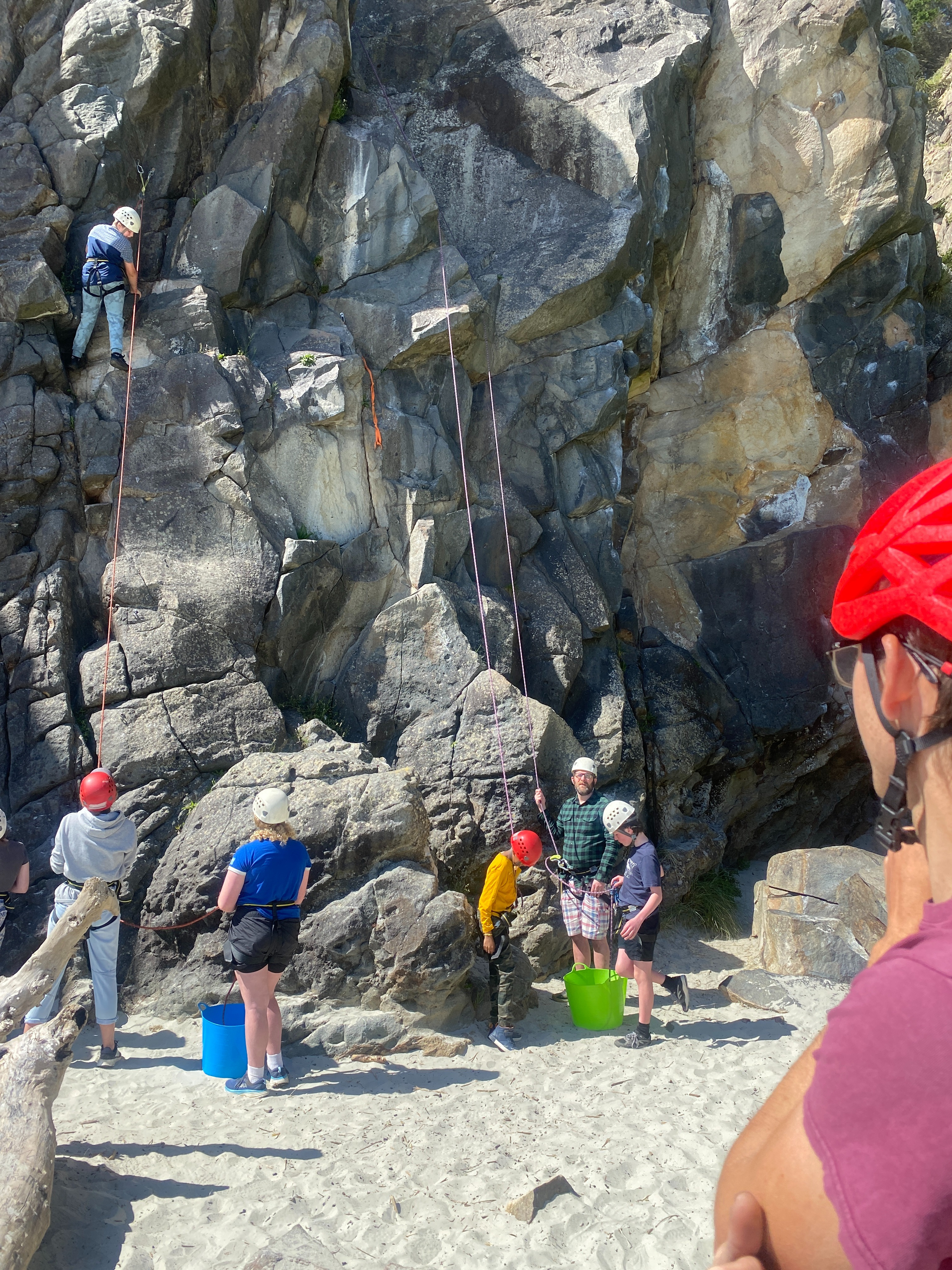 At Long Beach each class was split into three rotations. One group was on the Rock climbing under the tuition of Tim or Ben from Dunedin Adventures. They were trained for the safety aspects and fitted out with their harness and gear. There were five different rock climbing challenges and students had the opportunity to gain confidence with easier climbs before tackling more challenging ones. It was fantastic to watch the students succeed and push themselves on the rock wall.