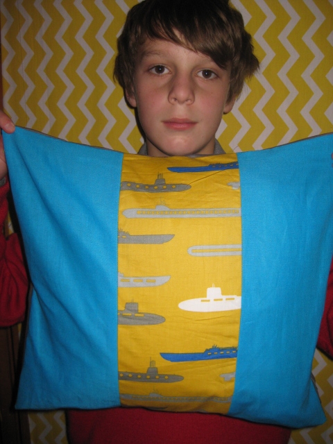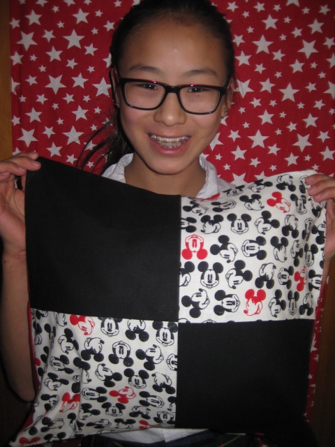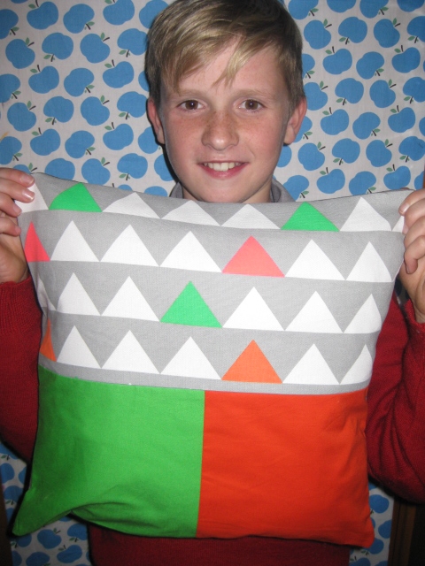 Year 7 groups learned how to use a sewing machine before passing a driving licence. They then designed and made an inner and an outer cushion using patches and/or stripes in their choice of plain and patterned fabric.