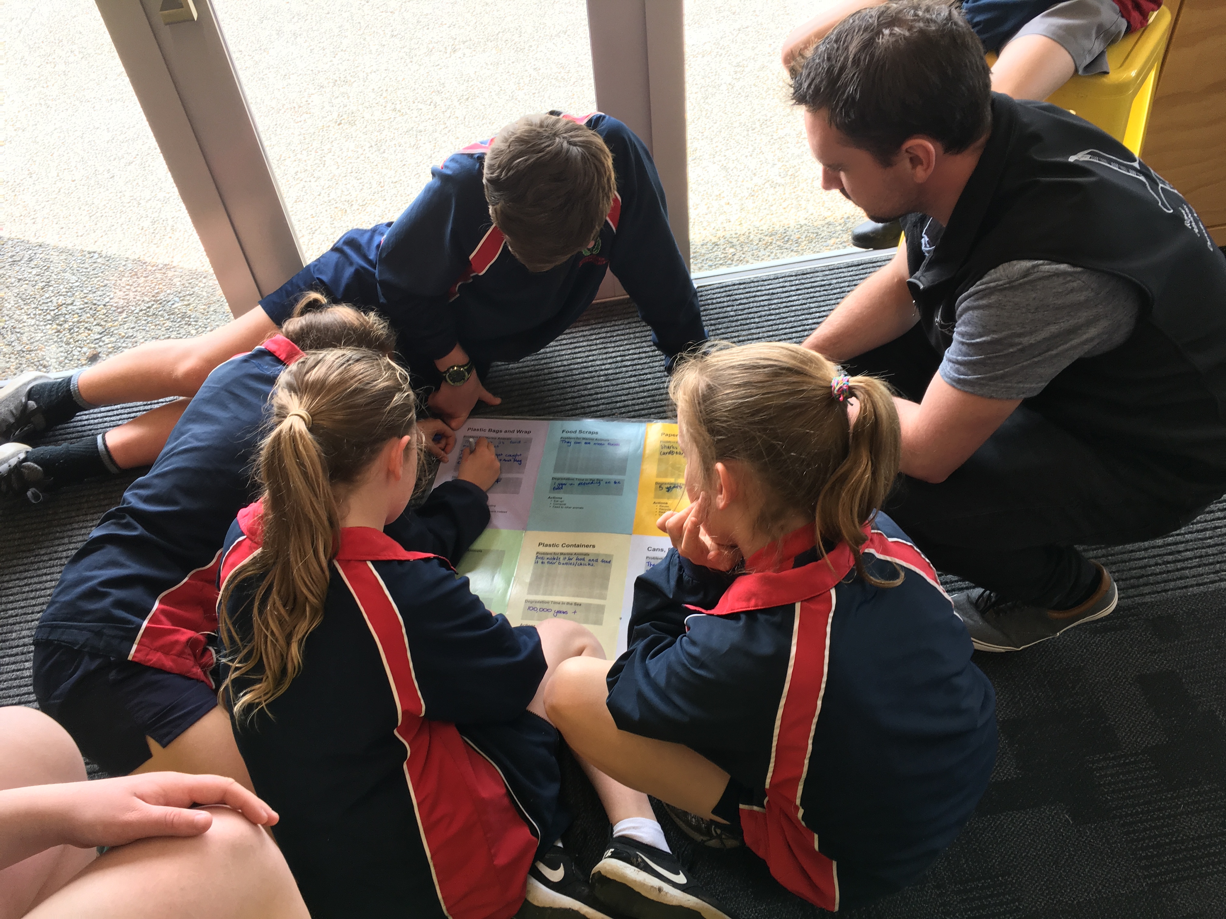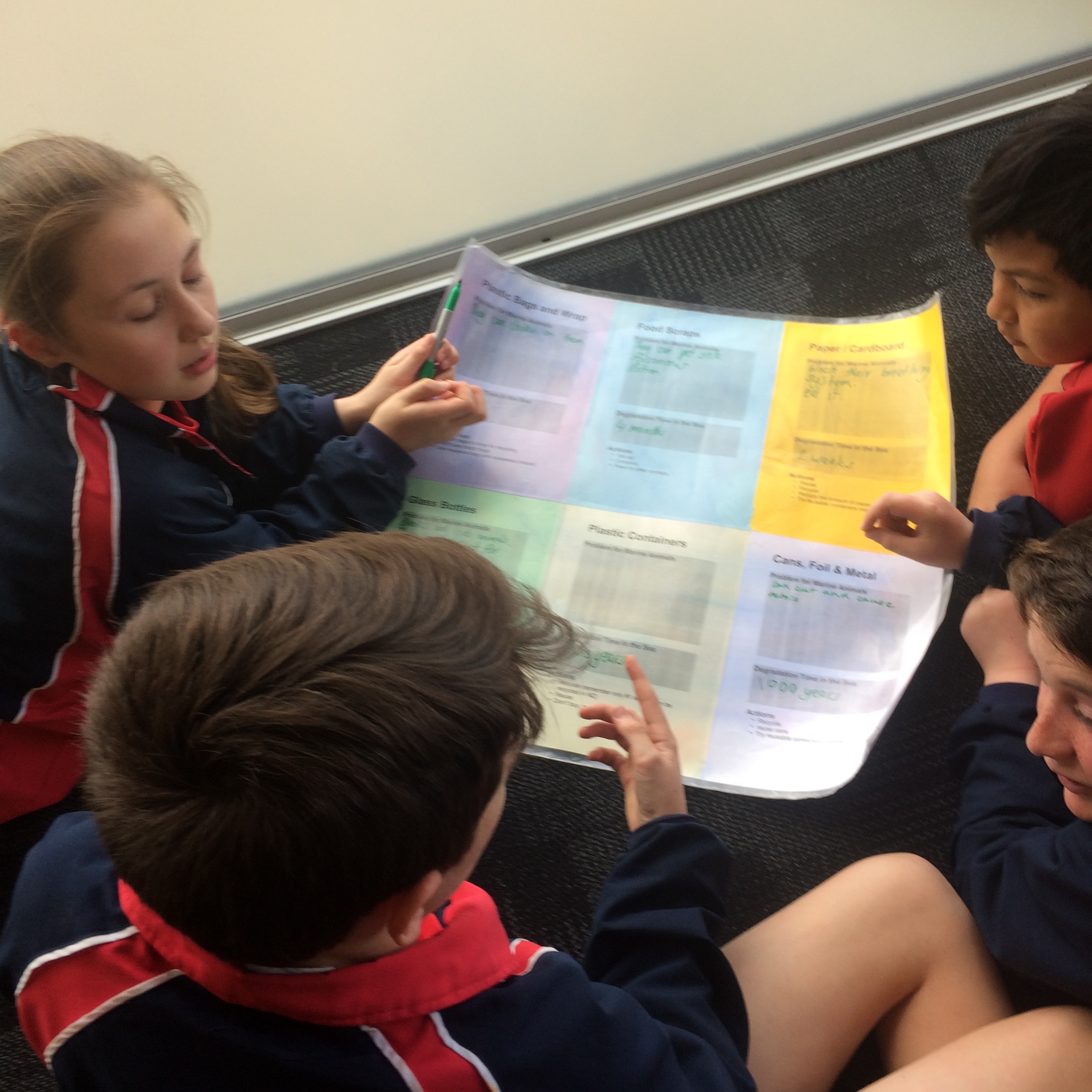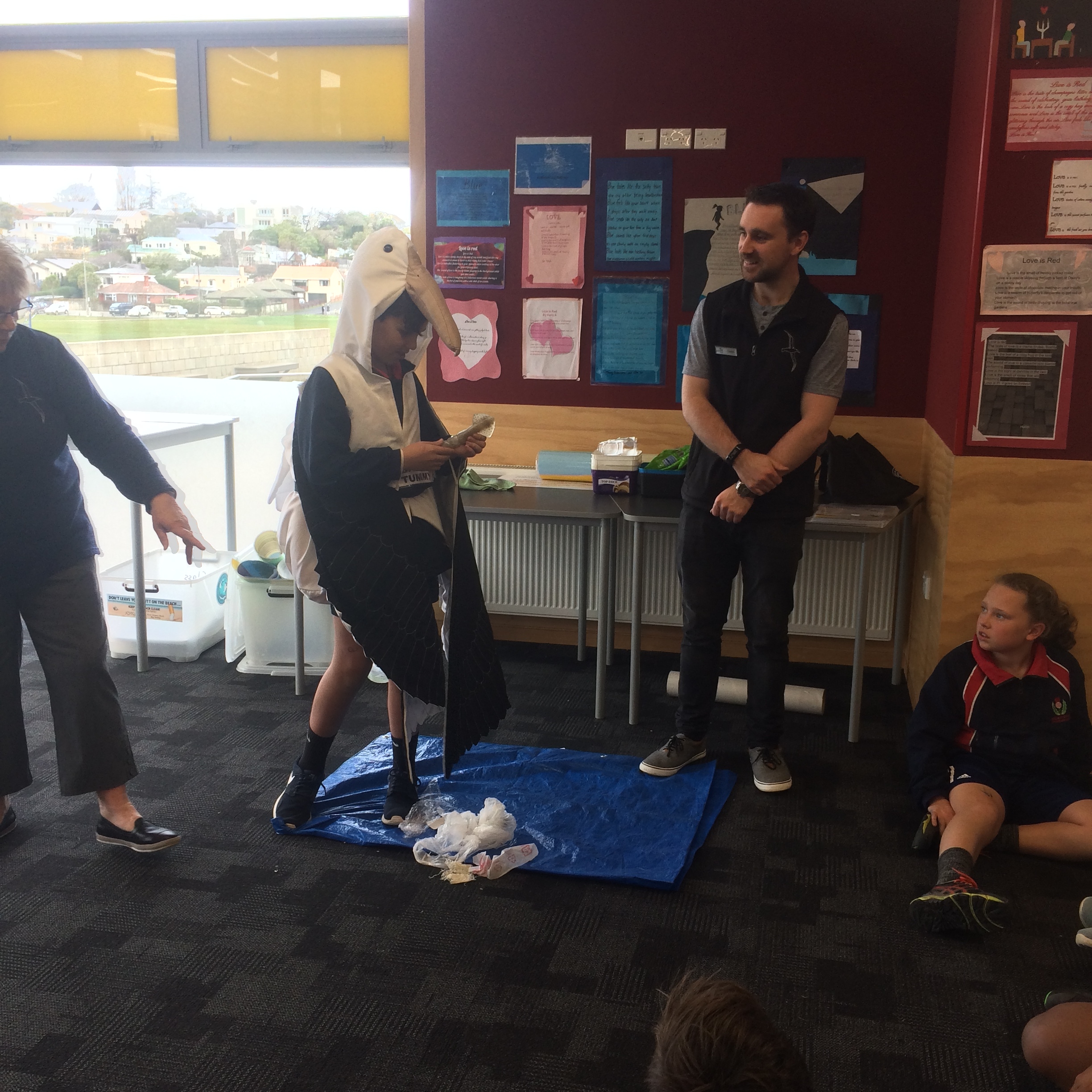 As part of our unit we have been looking at the IMPACT we have on our planet. One of our current discussions is around rubbish and plastics in our oceans. In class we have watched a very disturbing video on the Pacific Ocean Garbage Patch. The video was looking at the amount of plastic and other rubbish that we as humans discard every day that ends up in our oceans. The video focused on Midway Ocean- in the middle of the Pacific Ocean - that has become a rubbish dump where currents drag our rubbish thousands of kilometres. The Impact this has on wildlife such as albatross, seals, penguins, fish, turtles and other wildlife who mistake this rubbish as food, fed to their young, and causing at the extreme death. We discussed this further with the educators who looked at different products and how long they take to decompose in the water. They role played an albatross bird who mistakes plastic floating in the ocean as it's usually dinner of squid.