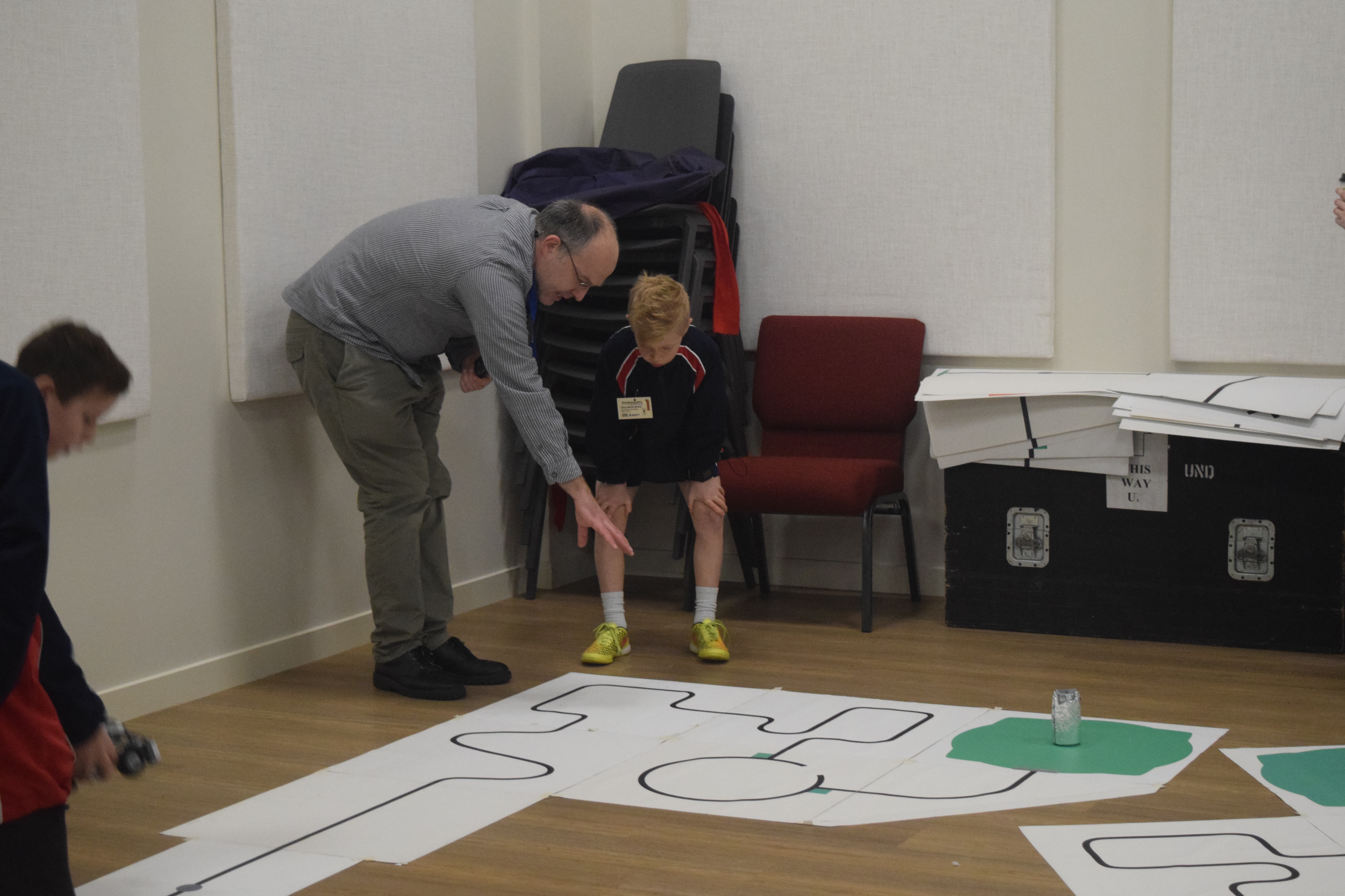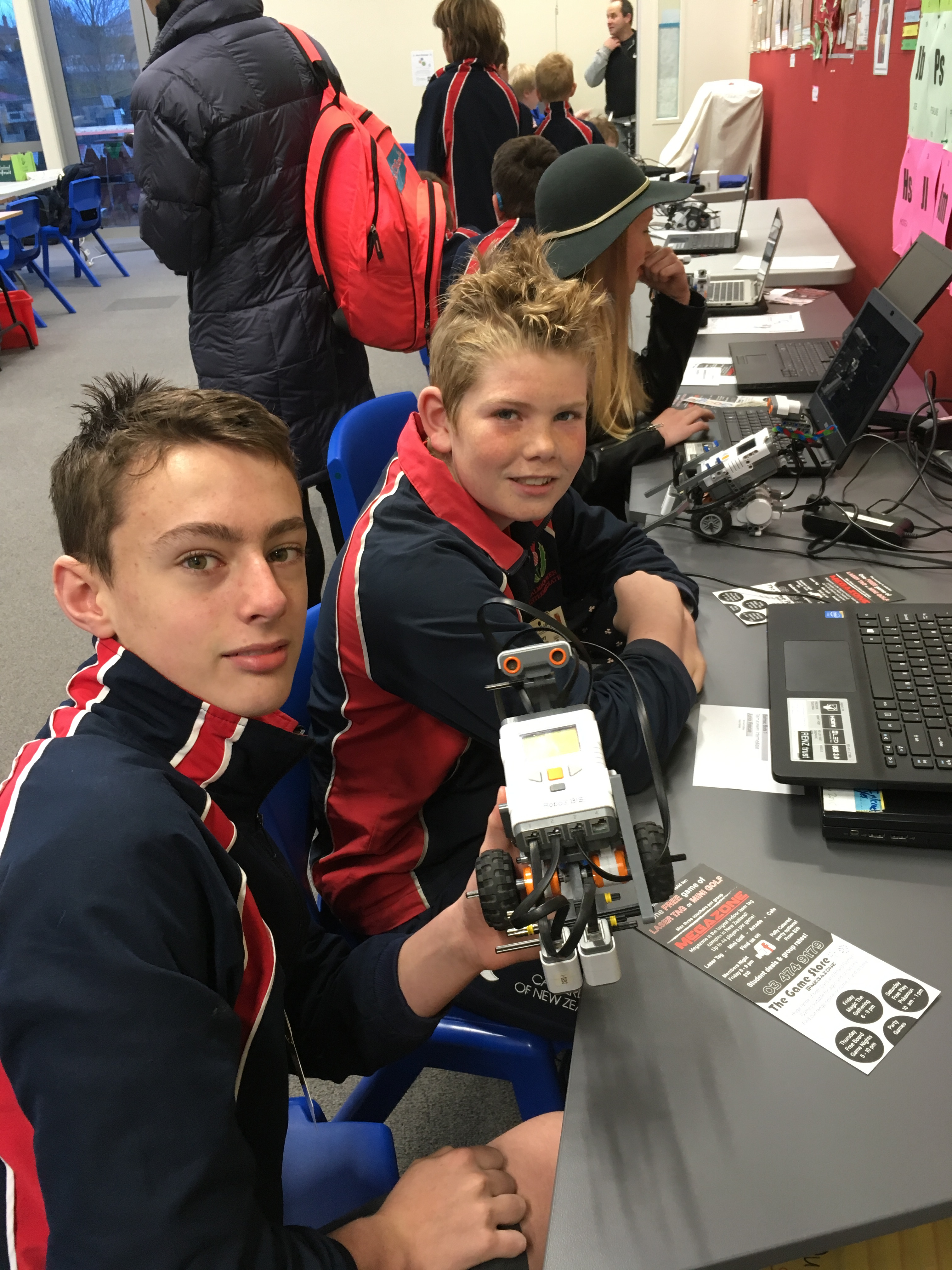 The Junior Search and Rescue involved programming a robot to follow a line around a course to push a can out of "the toxic waste". All four groups had a great experience and learnt lots. It was good to see a mixture of Year 7 and 8's taking part.
