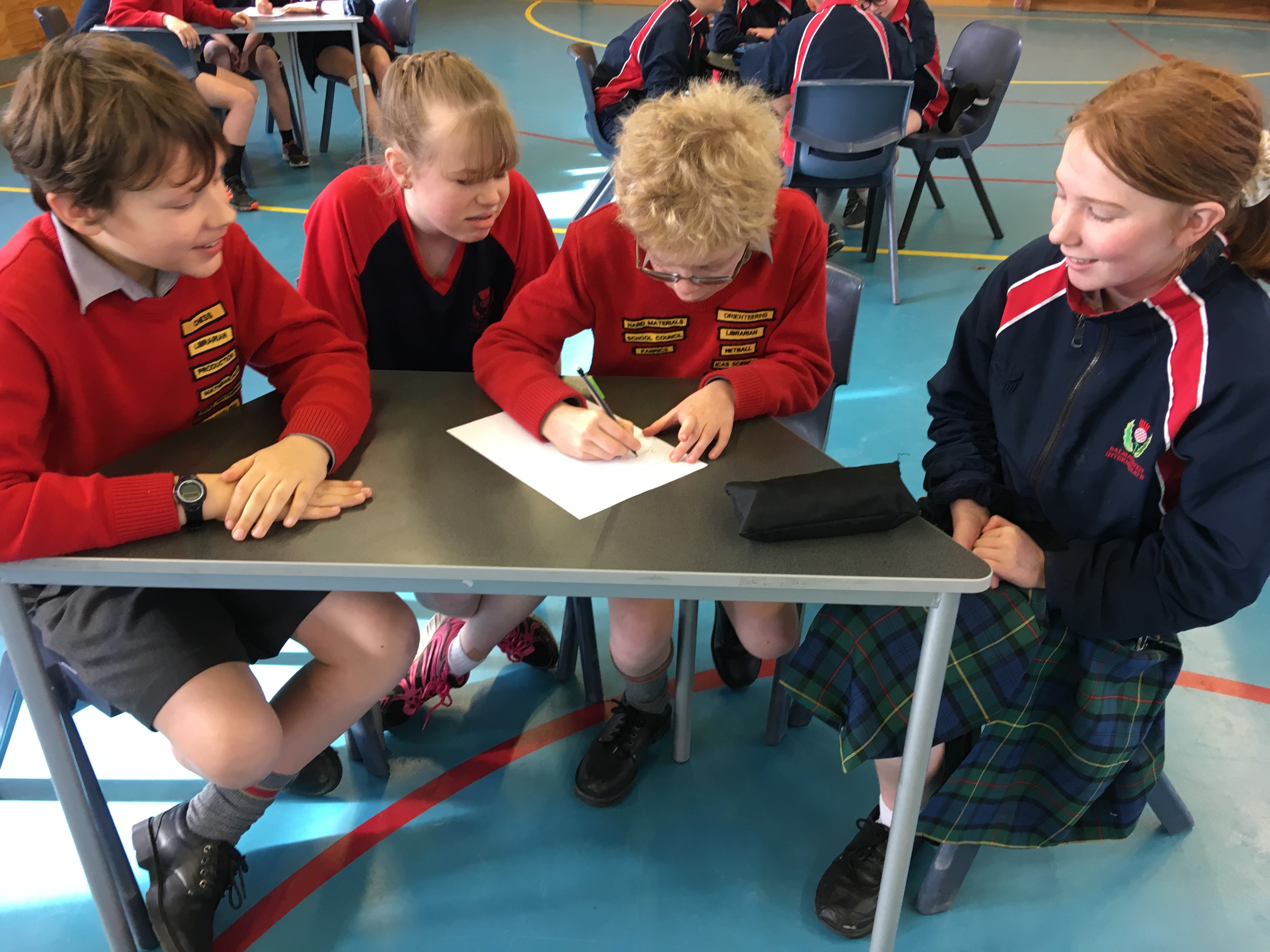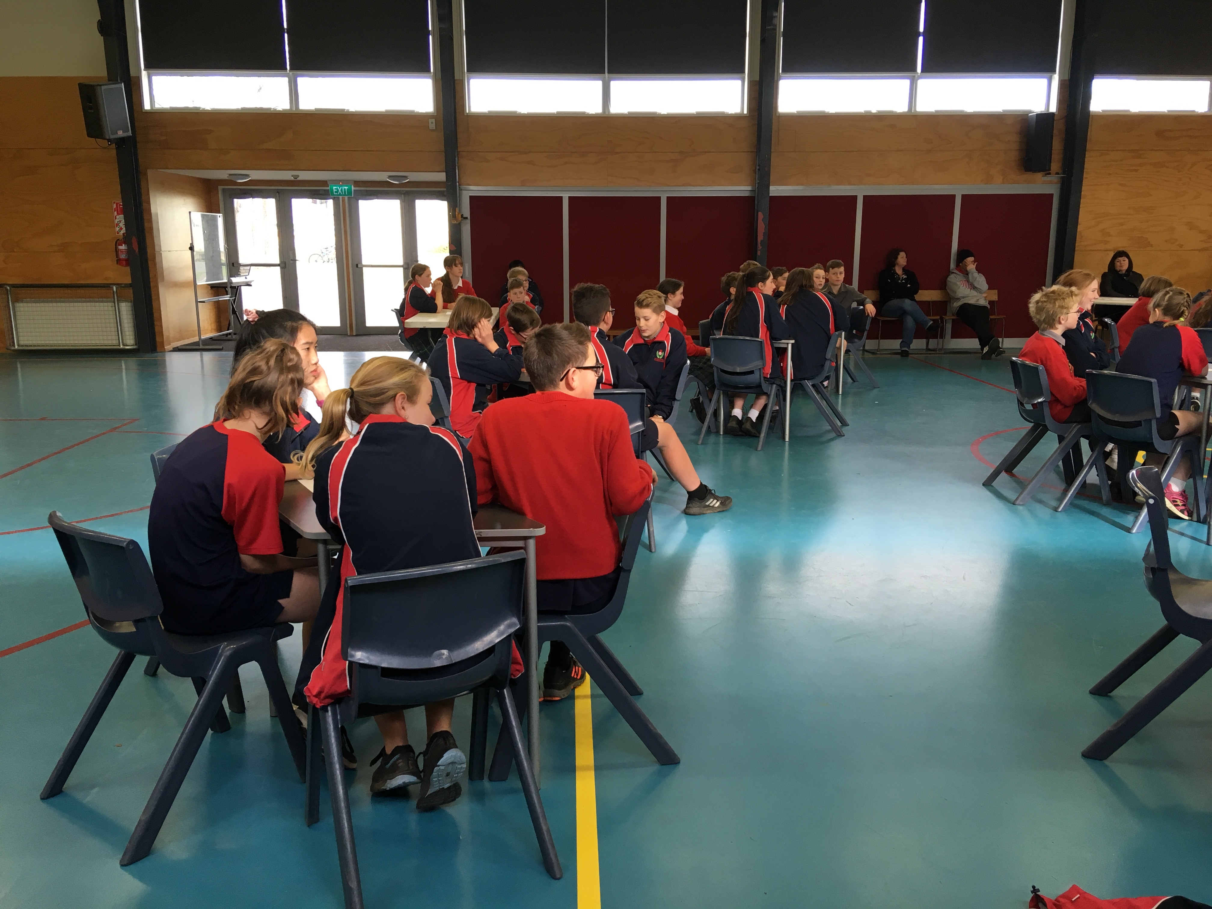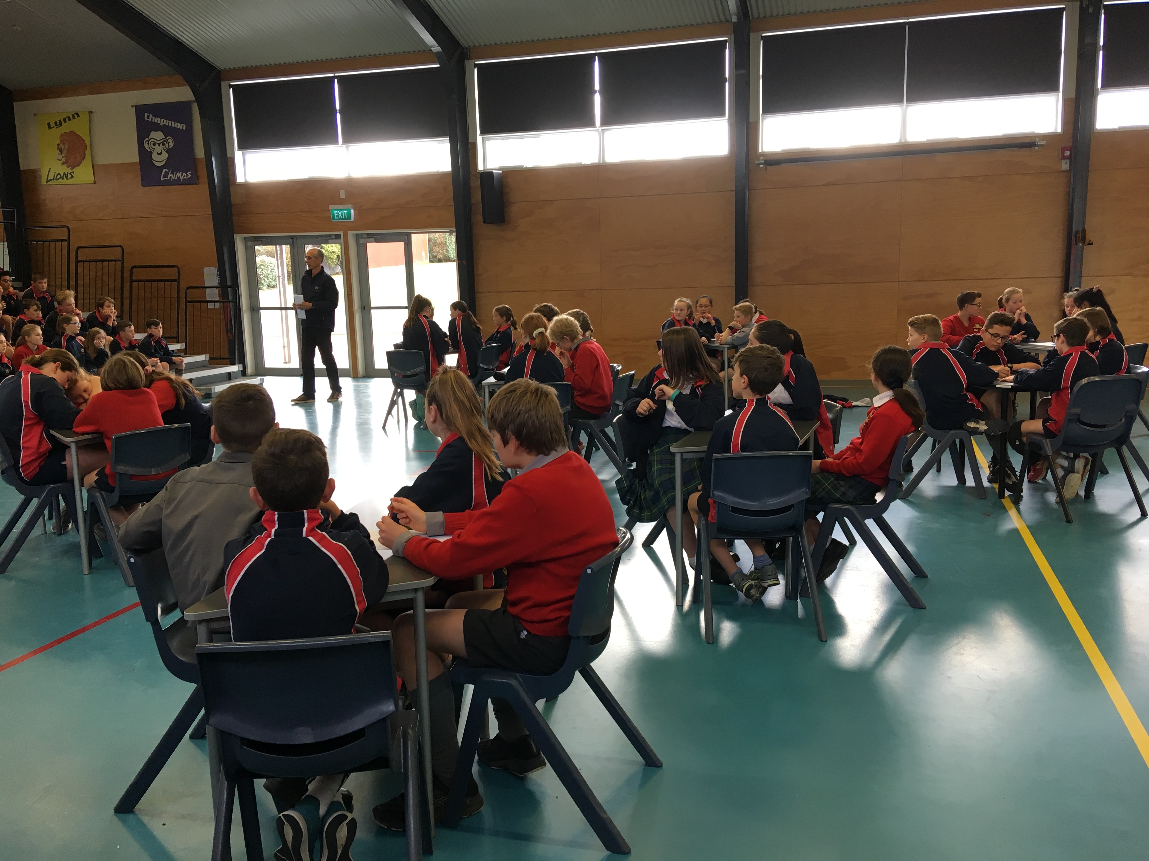 We were lucky to receive a prize pack from the University Book Shop for each of the four students in the winning team. Competition was fierce and the audience also enjoyed questions and spot prizes for answering correctly. Congratulations go to the winning team, The Bookworms from Room 8 with 17/20 points, Kaitlin, Simon, Nathan and Kali. Second were Pinkity Drinkity from Room 14 with 16.5 points, Lachie, Pippa, Katherine and Callum, and third were Lightning from Room 24, with 13 points, Maia, both Olivia's and Maria.