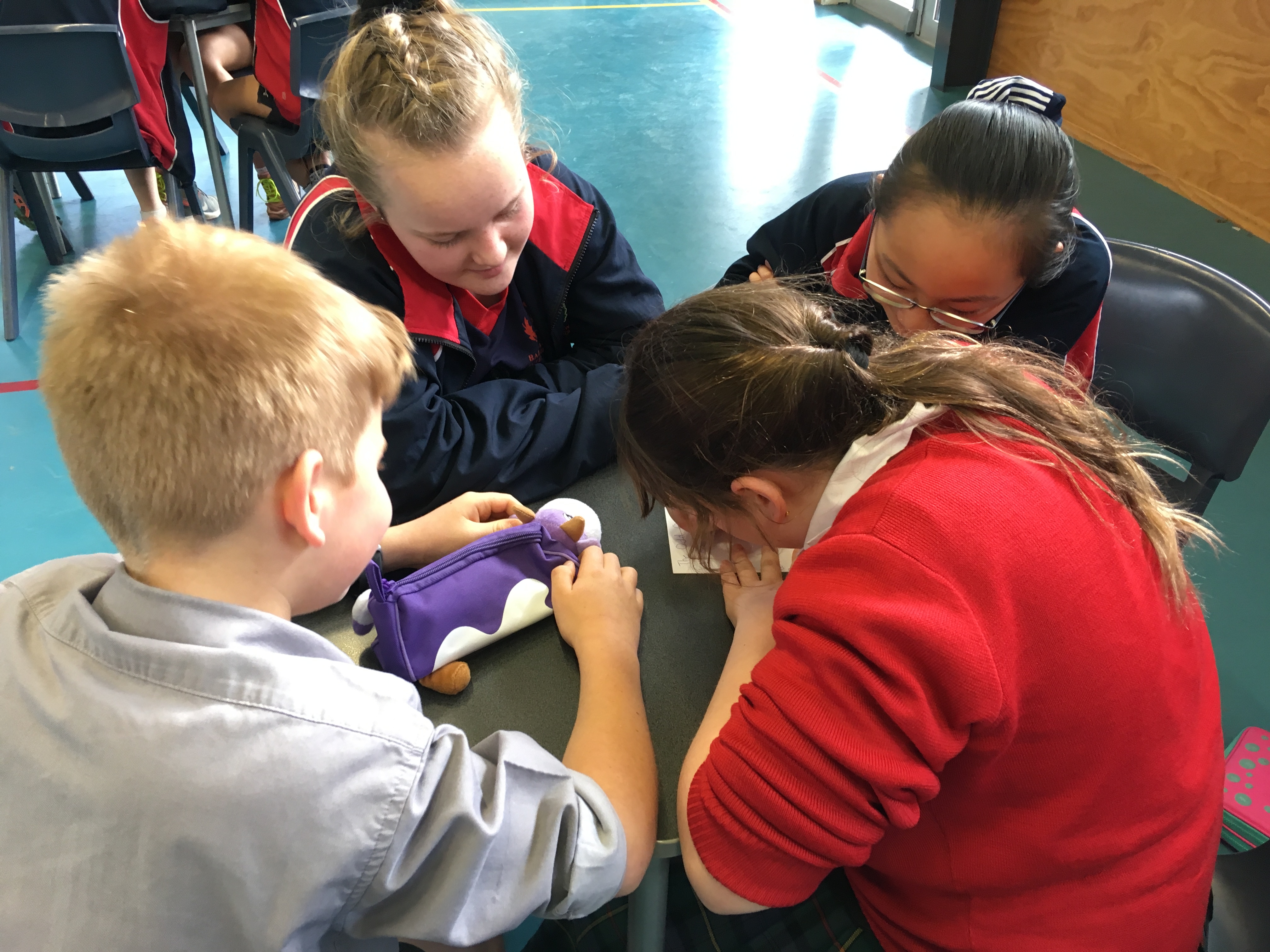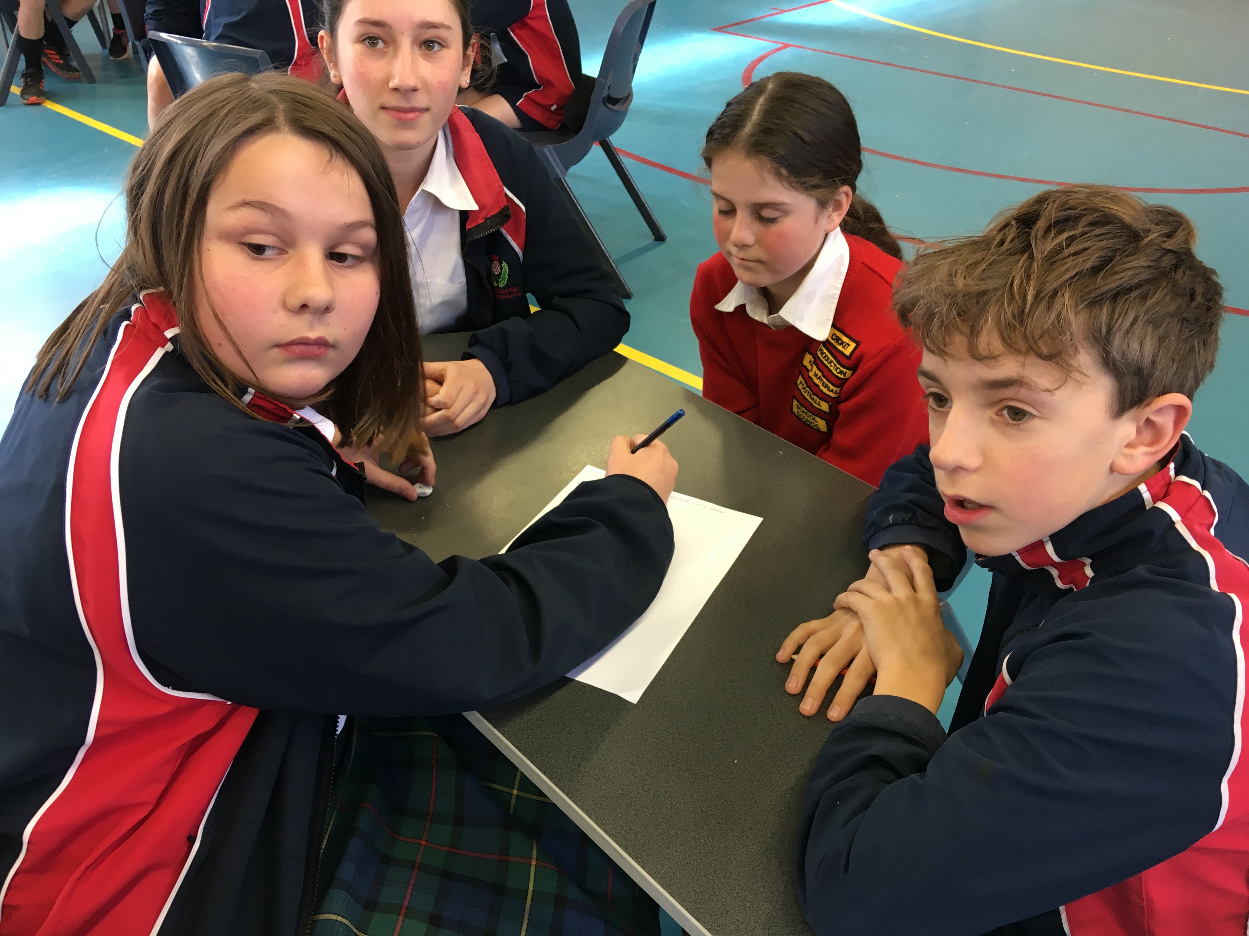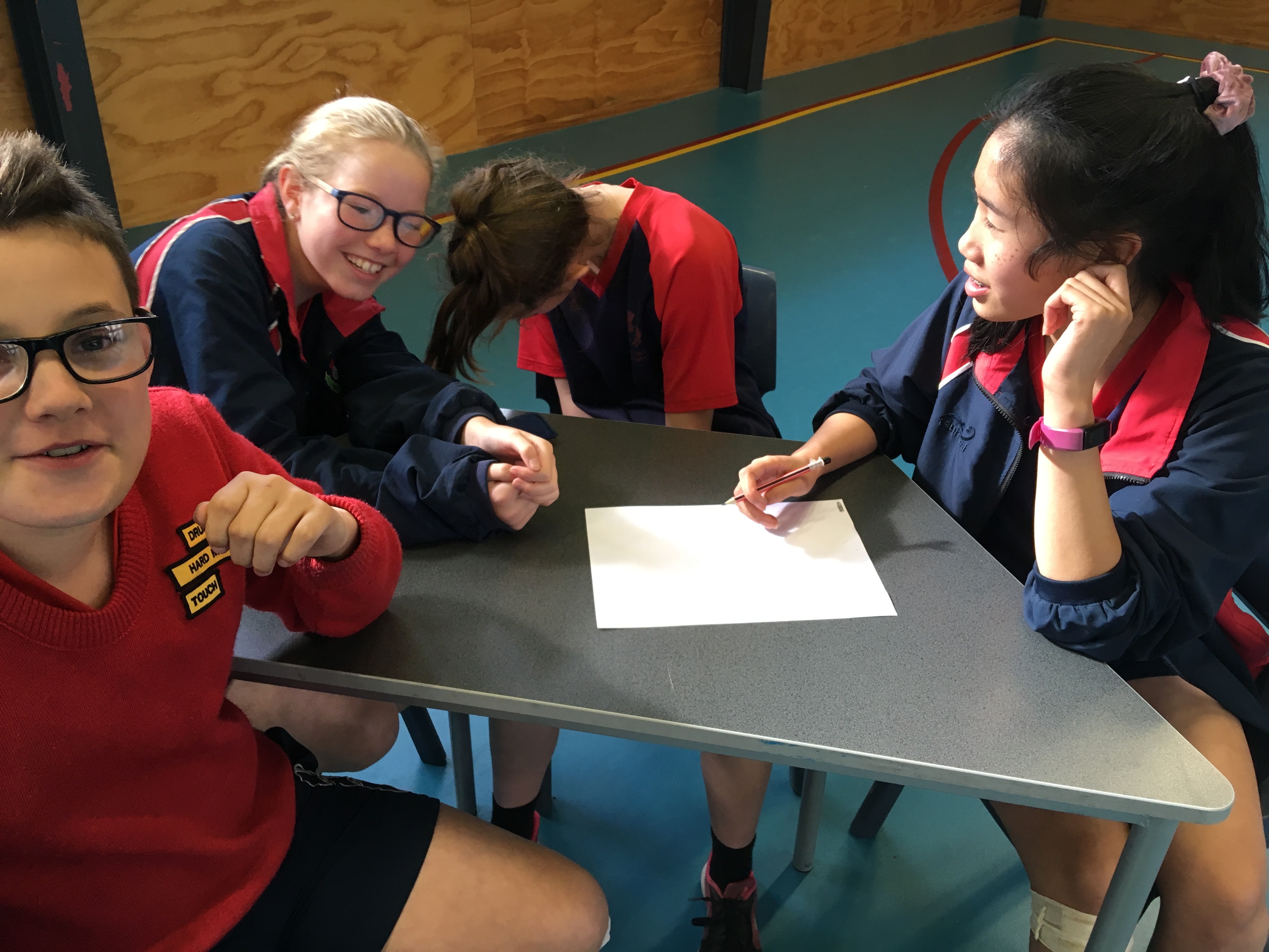 We were lucky to receive a prize pack from the University Book Shop for each of the four students in the winning team. Competition was fierce and the audience also enjoyed questions and spot prizes for answering correctly. Congratulations go to the winning team, The Bookworms from Room 8 with 17/20 points, Kaitlin, Simon, Nathan and Kali. Second were Pinkity Drinkity from Room 14 with 16.5 points, Lachie, Pippa, Katherine and Callum, and third were Lightning from Room 24, with 13 points, Maia, both Olivia's and Maria.