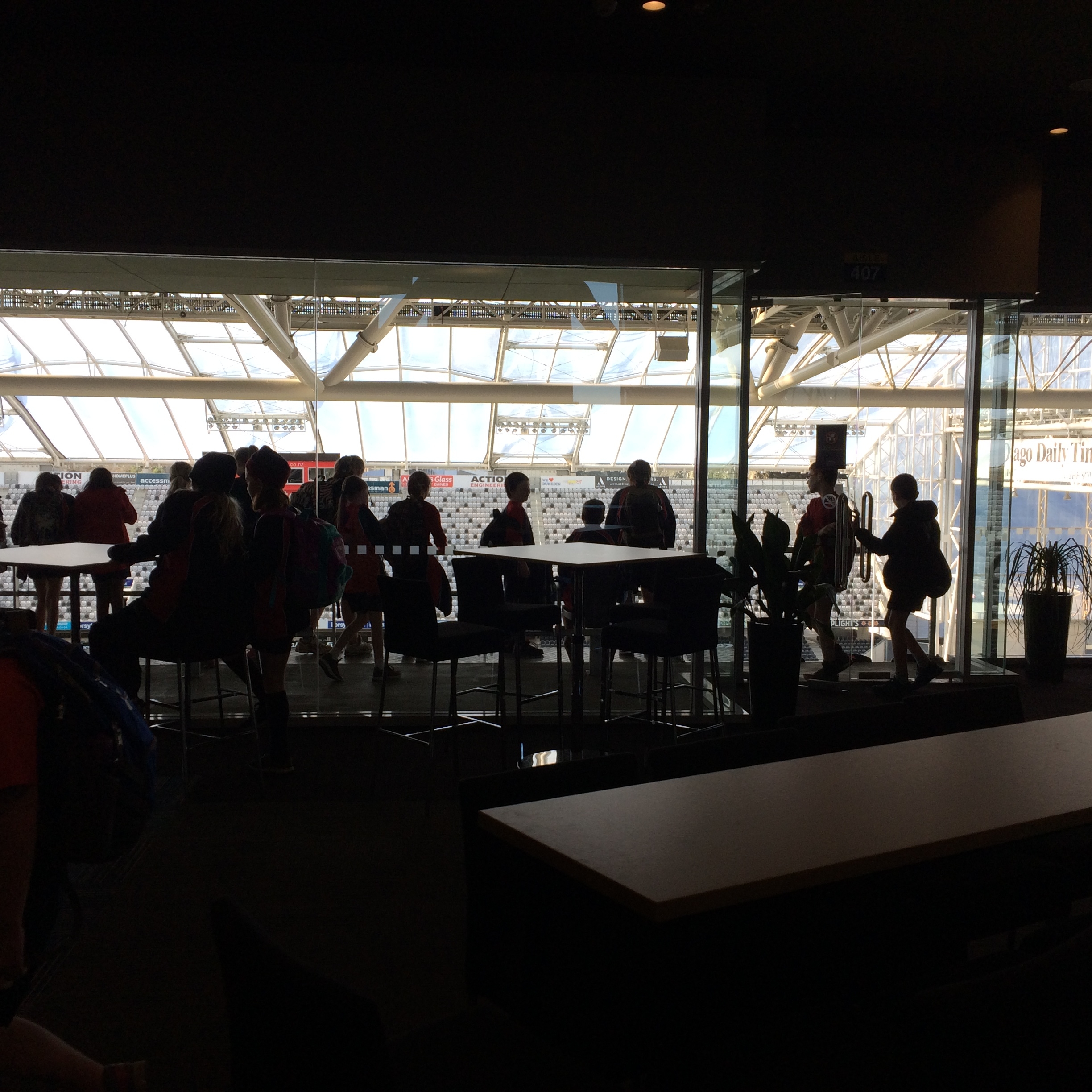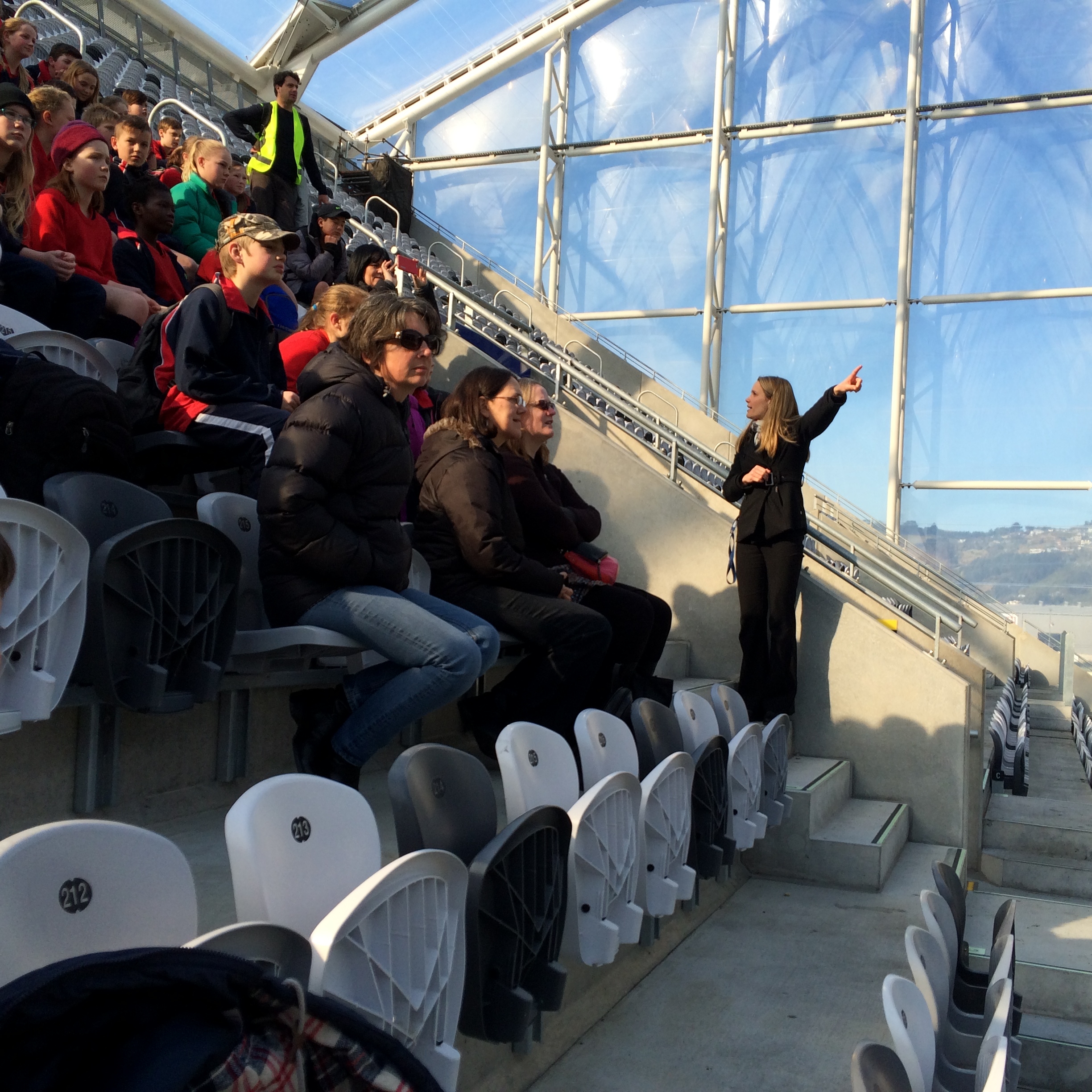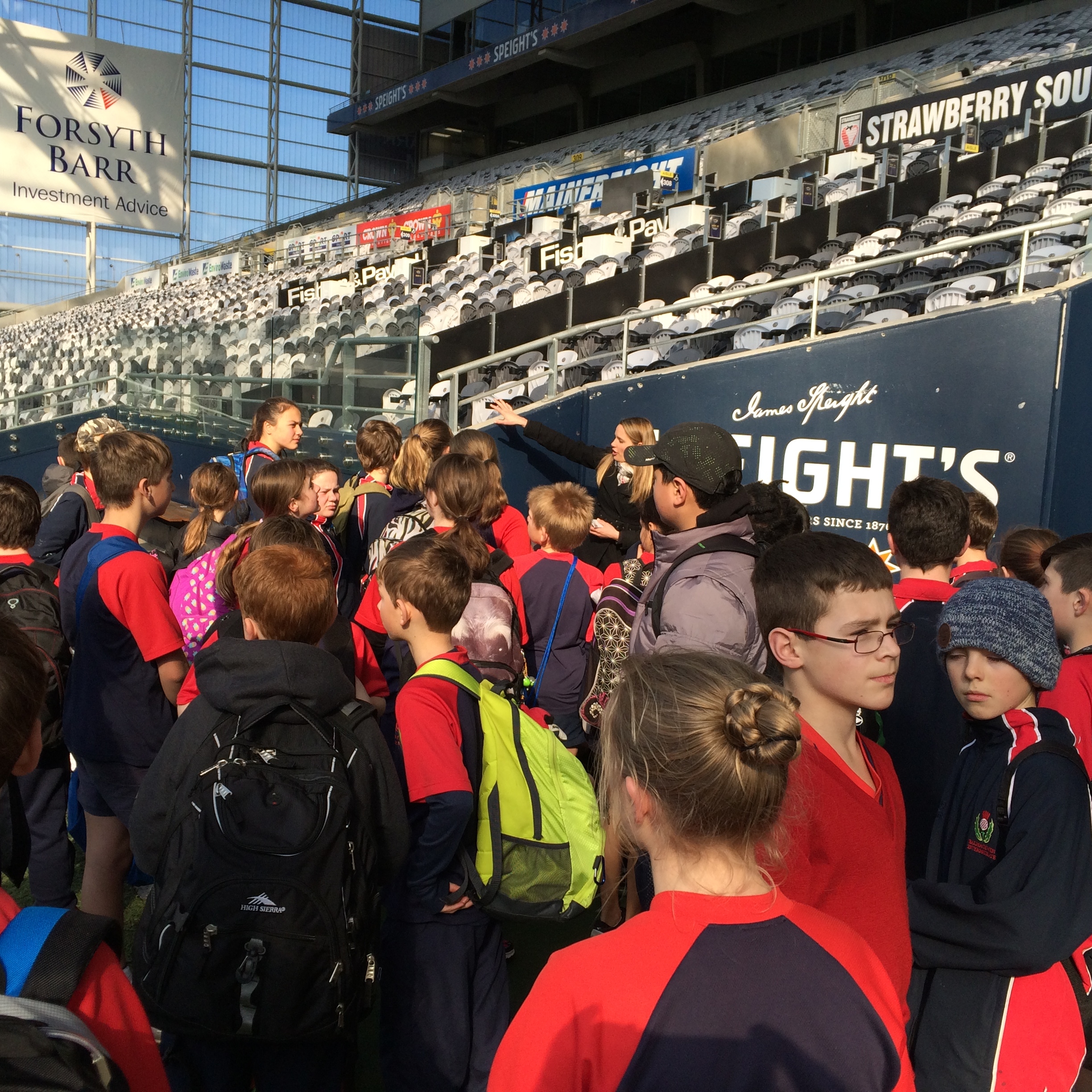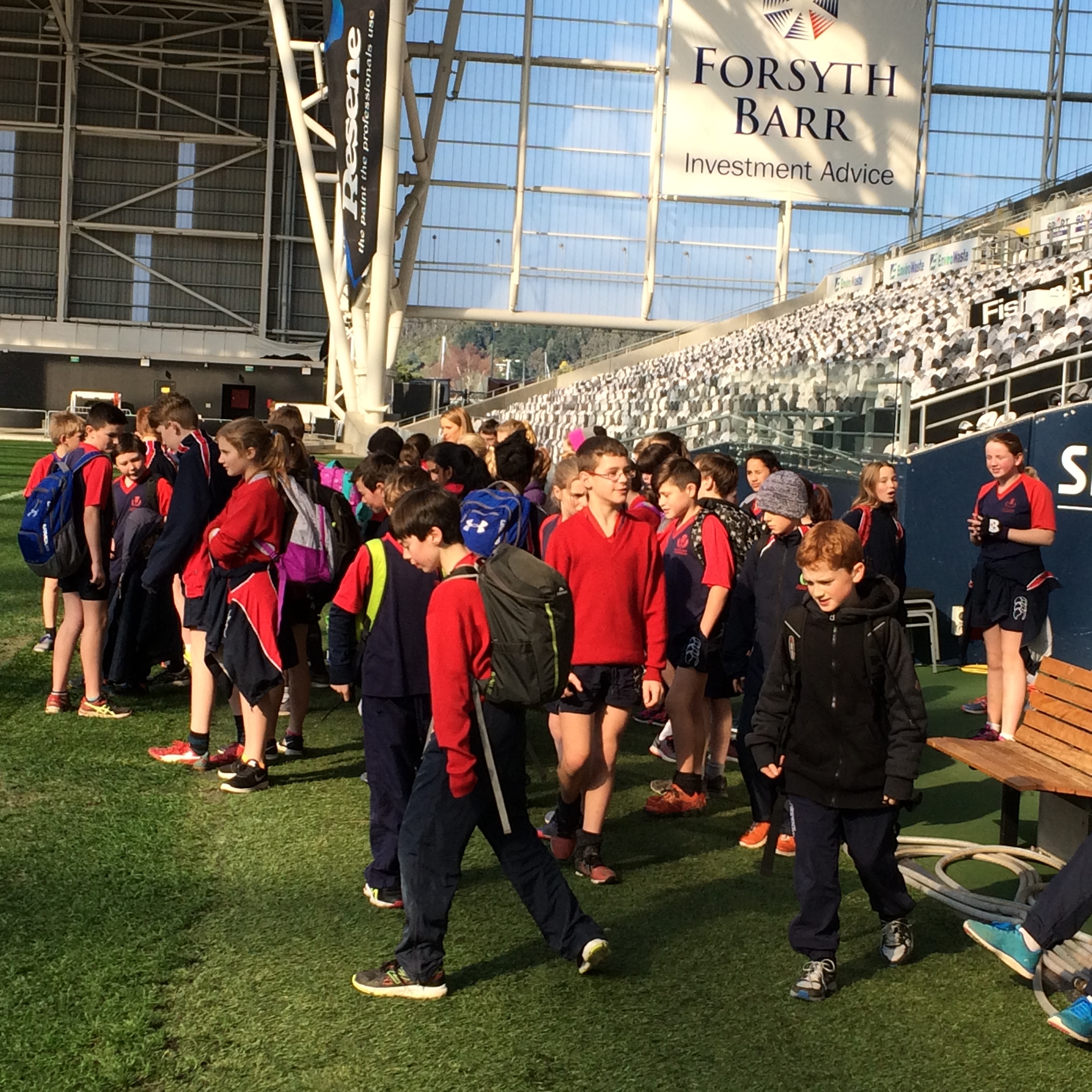 We then walked through the University of Otago to Forsyth Barr Stadium. Thanks to Sabine for taking us on a tour of this wonderful stadium. We got to sit in the changing rooms and take the walk that the All Blacks take. We got to go into the control room and the fancy corporate boxes.