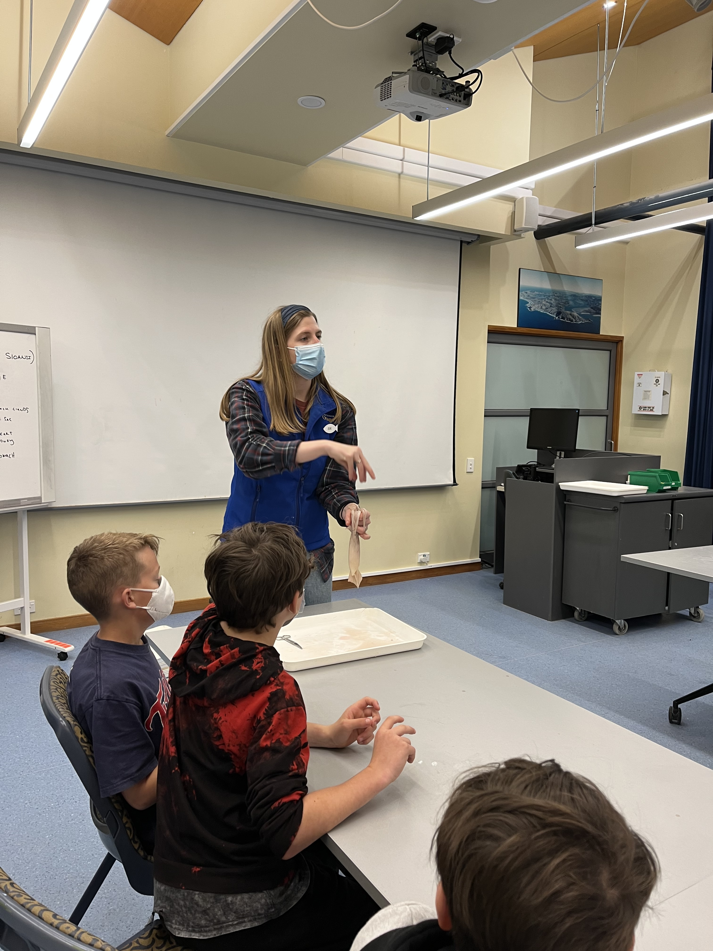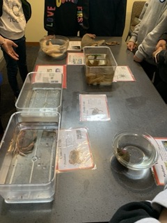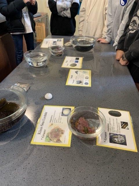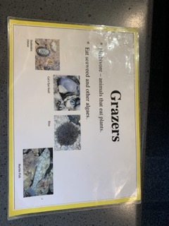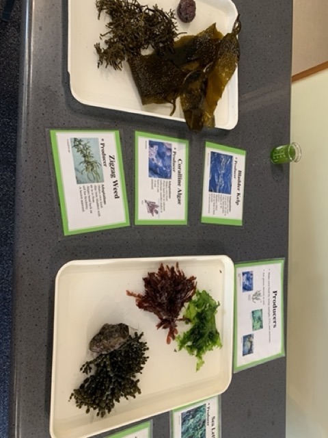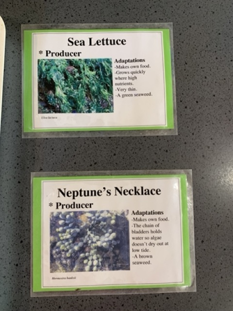 At the Marine centre the two expert educators Elle and Zoe worked with our students through two programmes. The first was called "Supper in the Sea" and it looked at the food web and the different levels of the chain from producers - seaweeds and phytoplankton, Grazers, Filter feeders, Predators and Scavengers of the Rocky Seashore.