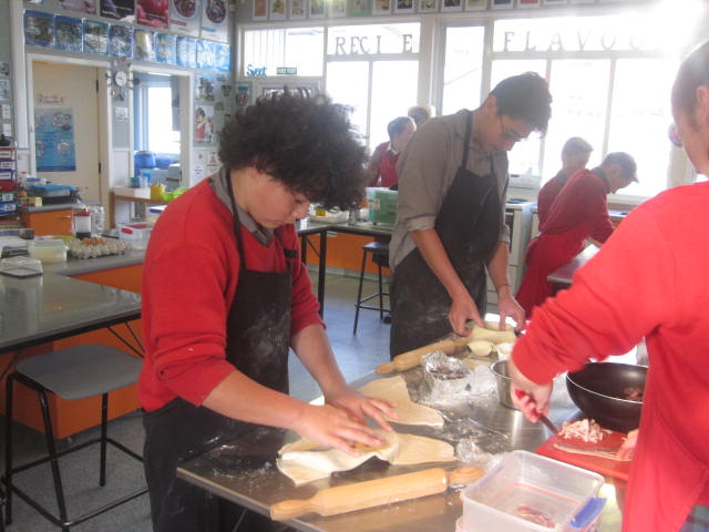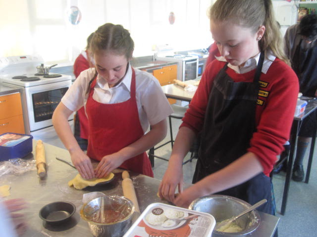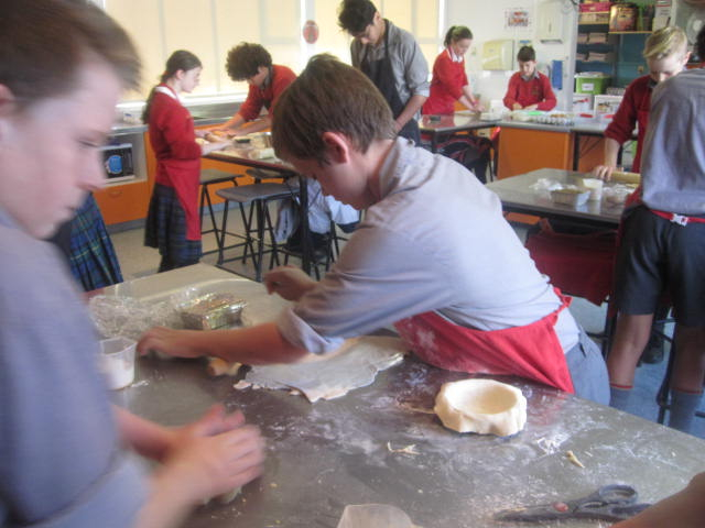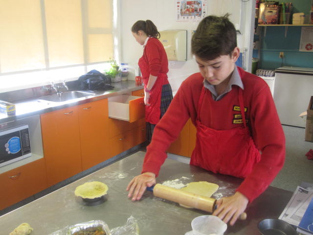 With a great working atmosphere the class worked collaboratively and efficiently. The partners designed their own flavour combinations, made their puff or short pastry, chopping, cooked, tasted their fillings before making their final pie. One partnership even made their own BBQ sauce and had leftovers for home. Some yummy smells were wafting around the room. Hopefully some made it home in one piece!