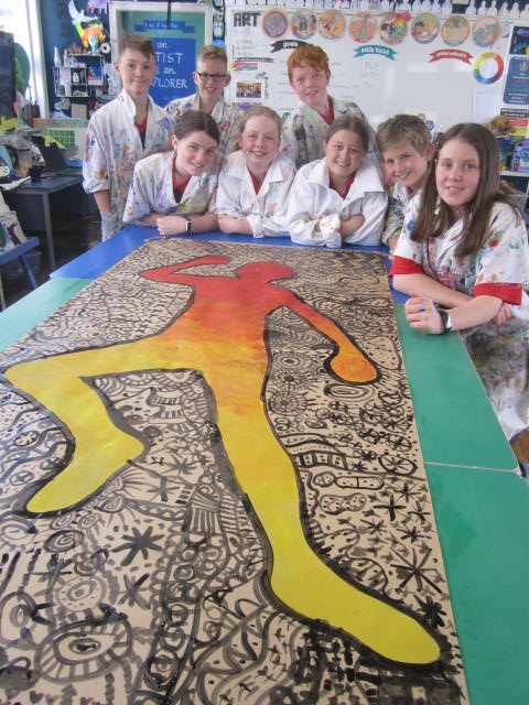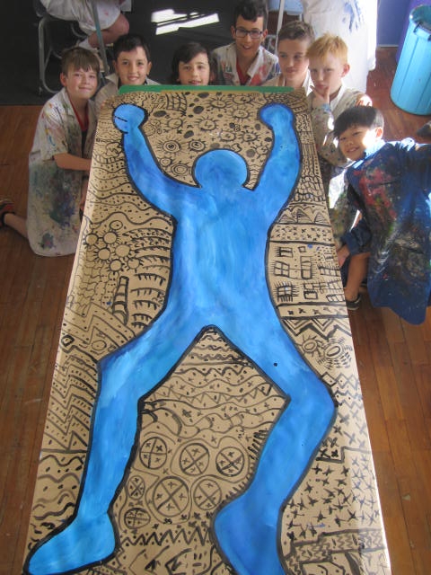 Every now and then a group might just have one session left. One crew focused on working collaboratively and was inspiring by Keith Harring's body outlines. The other group focused on being creative and designing personified food characters.