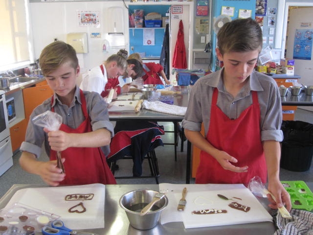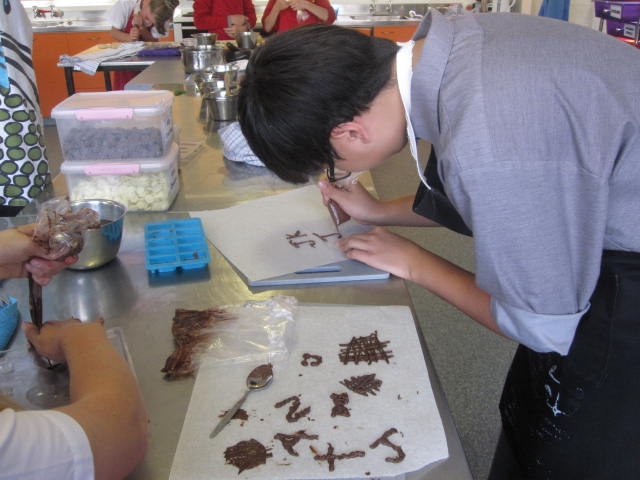 The ice-creams were a big hit with most liking another group's flavour. Mango was a popular choice as was caramel this term. Some interesting combinations were made as the students were choosing their flavours. We also played with chocolate, learning how to mould and pipe chocolate.