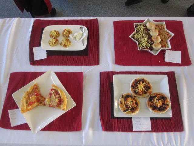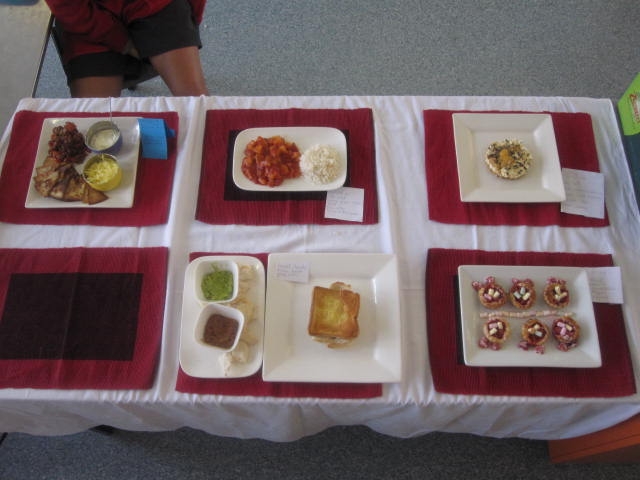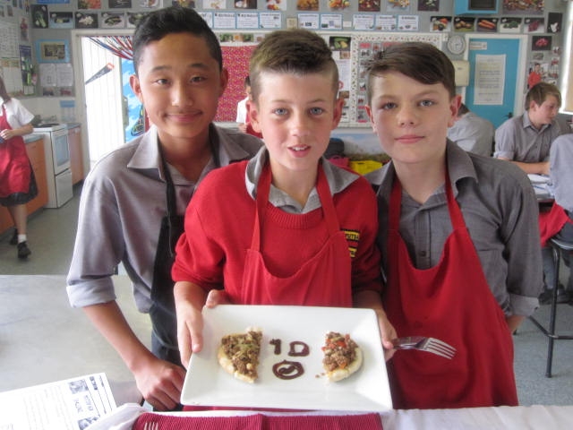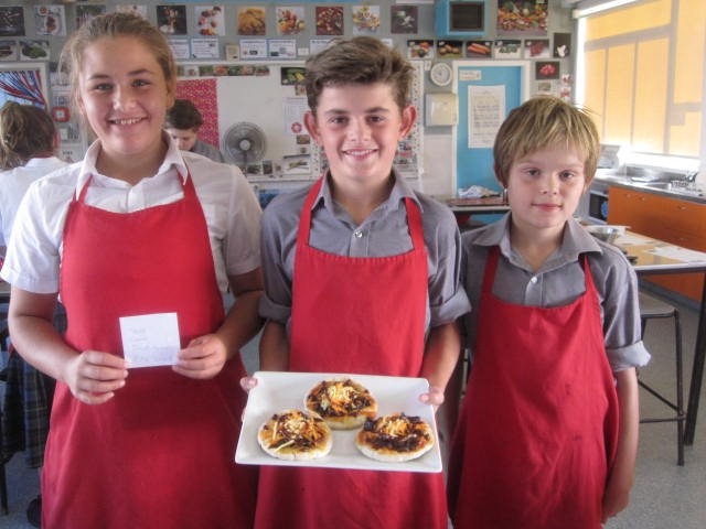 But the best was yet to come with the Mystery Box. Students picked a table number from the hat so all partnerships were split up and the food was randomly spread out. Each table group got a carbohydrate and protein, and vegetables or fruit depending on whether they had a savoury or sweet option. Decisions were made and 1 hour later they produced a plate of food. Cheesecake, tarts, pizza, tacos and steak stack were all made. The teachers had some tough choices to make!