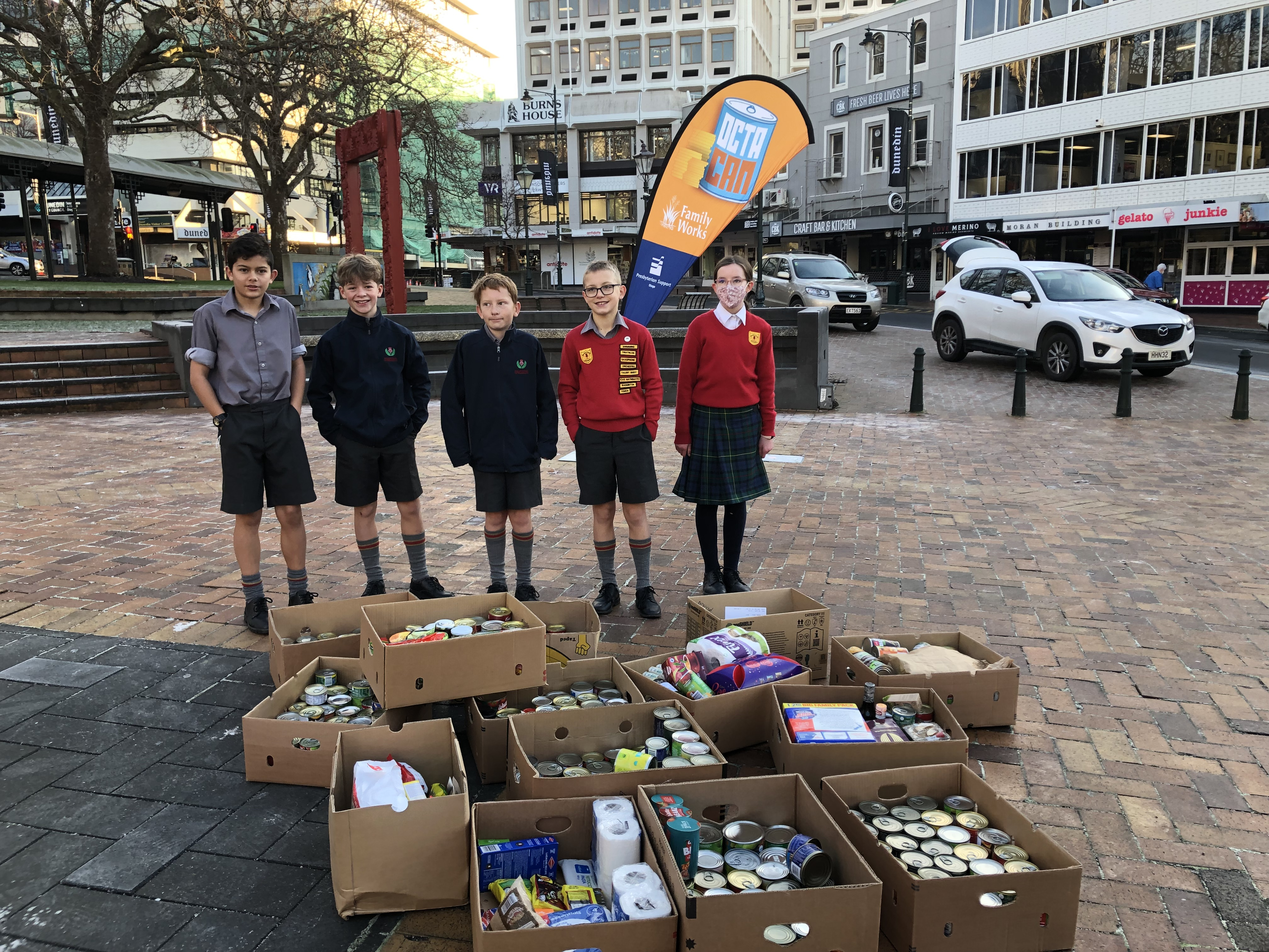 We also ran a House competition for Octacan which is where people donate cans or non-perishable food items to help our local food banks. This year it was run in conjunction with Matariki which is traditionally a time where people come together to celebrate and share kai. We collected food items over 2 weeks at school then a group of councillors went to the Octagon to make the donation on behalf of our school community. The cans were arranged in the shape of the 9 stars of Matariki.
