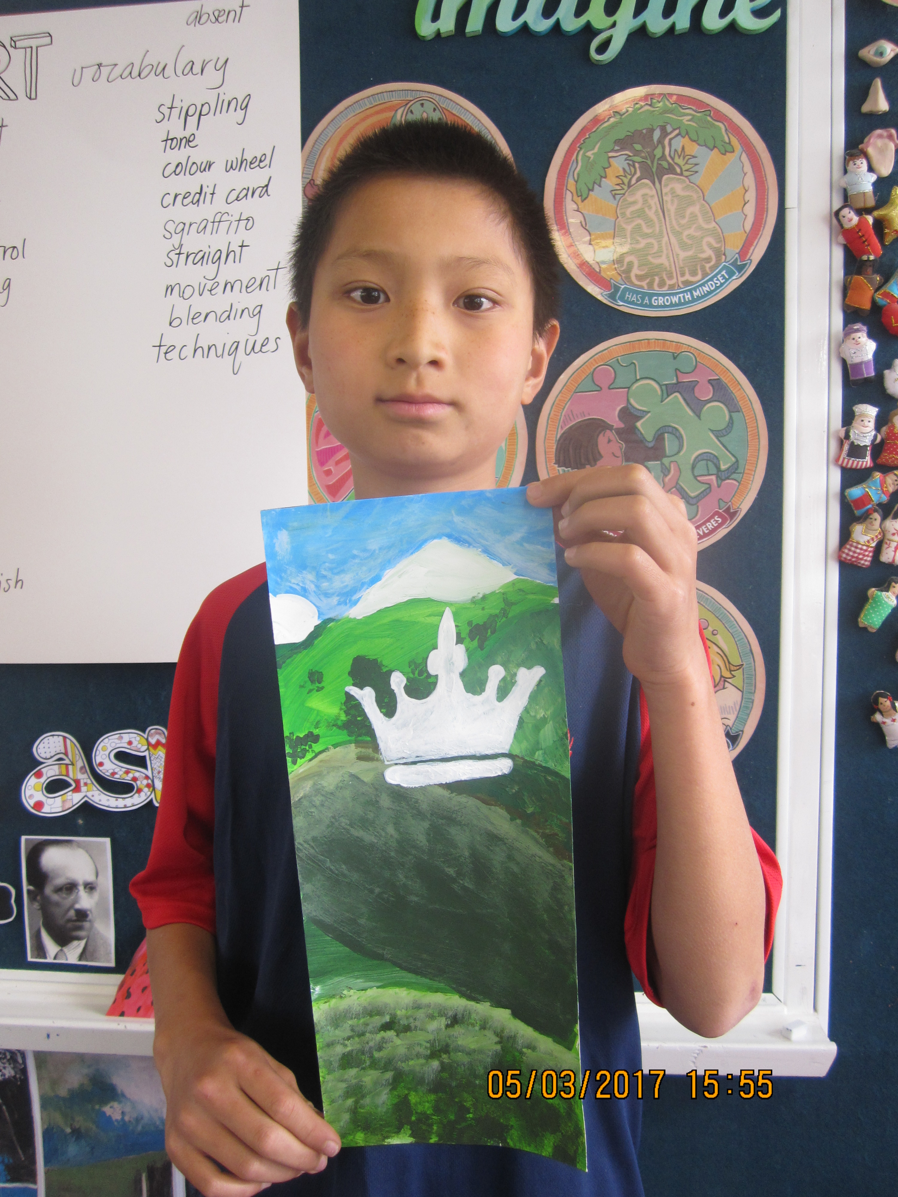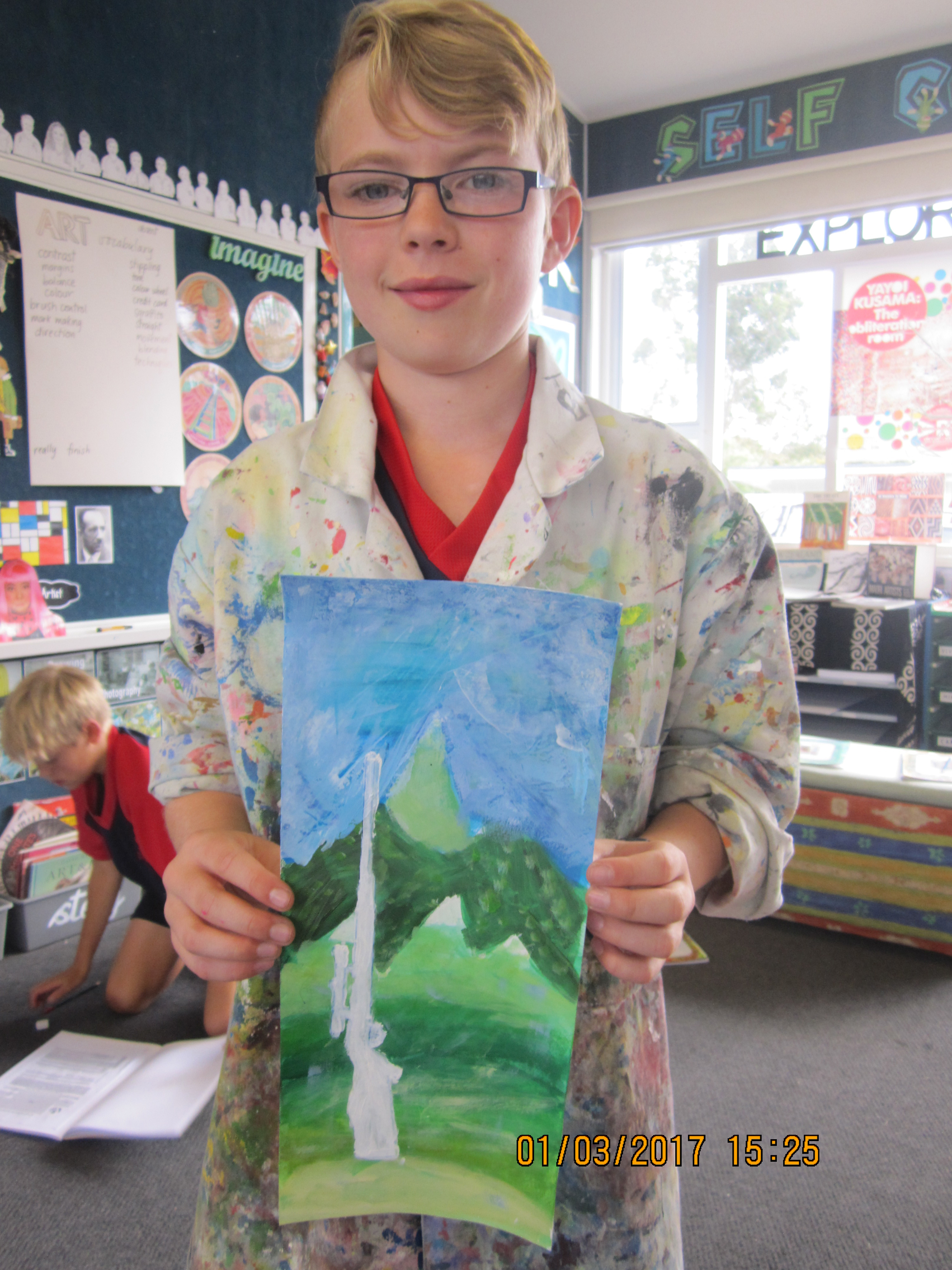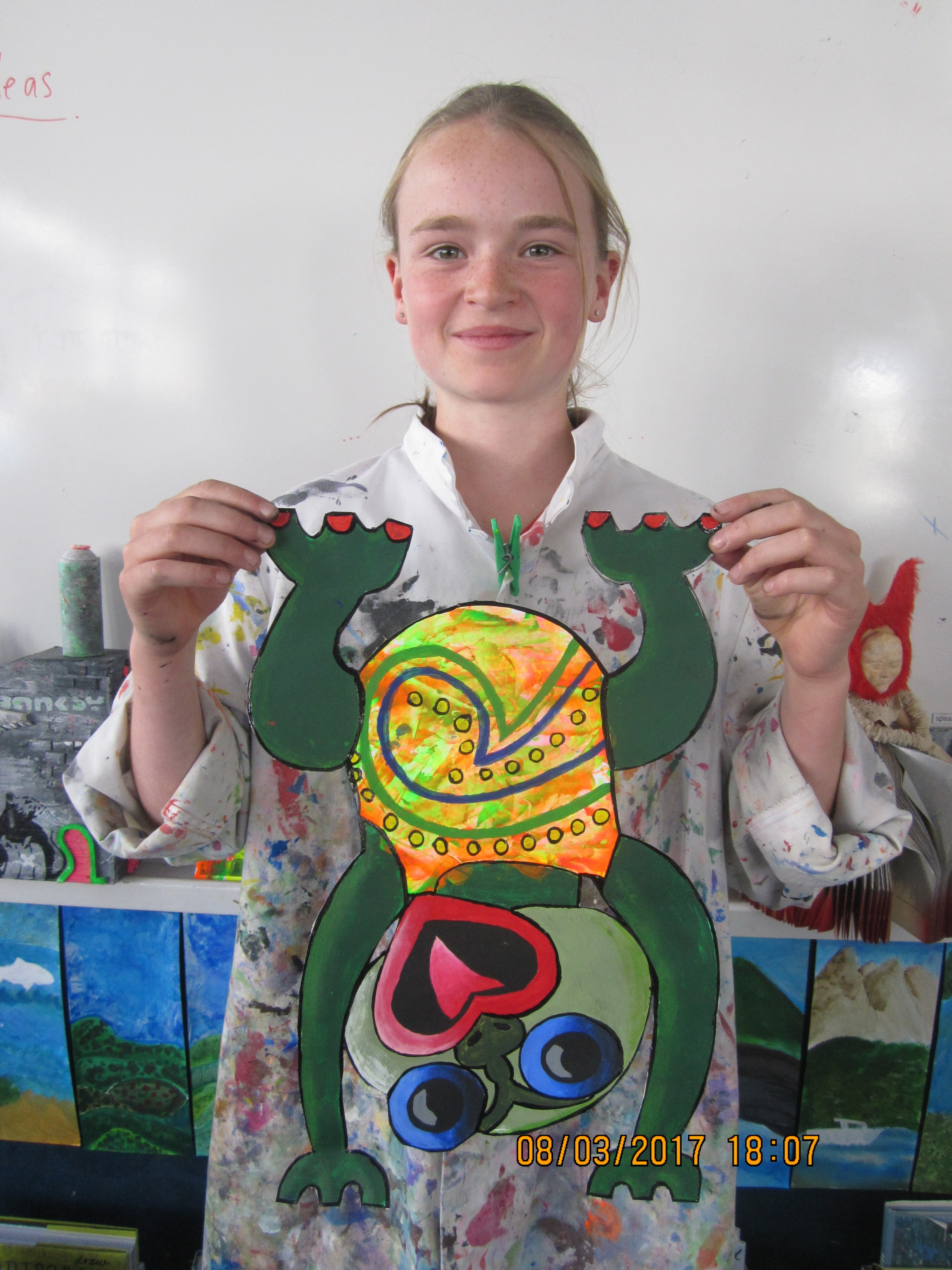 The Year Seven students have been initiated into art by learning a variety of painting techniques which is reflected in their painted flowers. All three group had different painting units: Contemporary Hei Tiki, Occupational Cats and Turangawaewae Panels inspiried by Colin McCahon