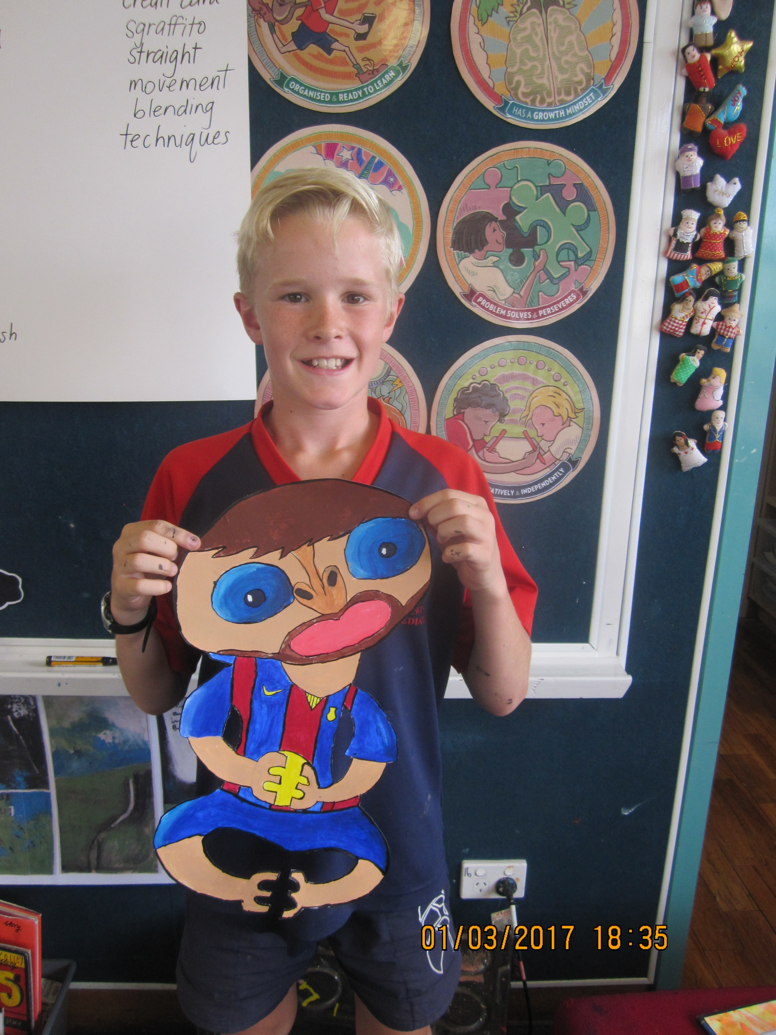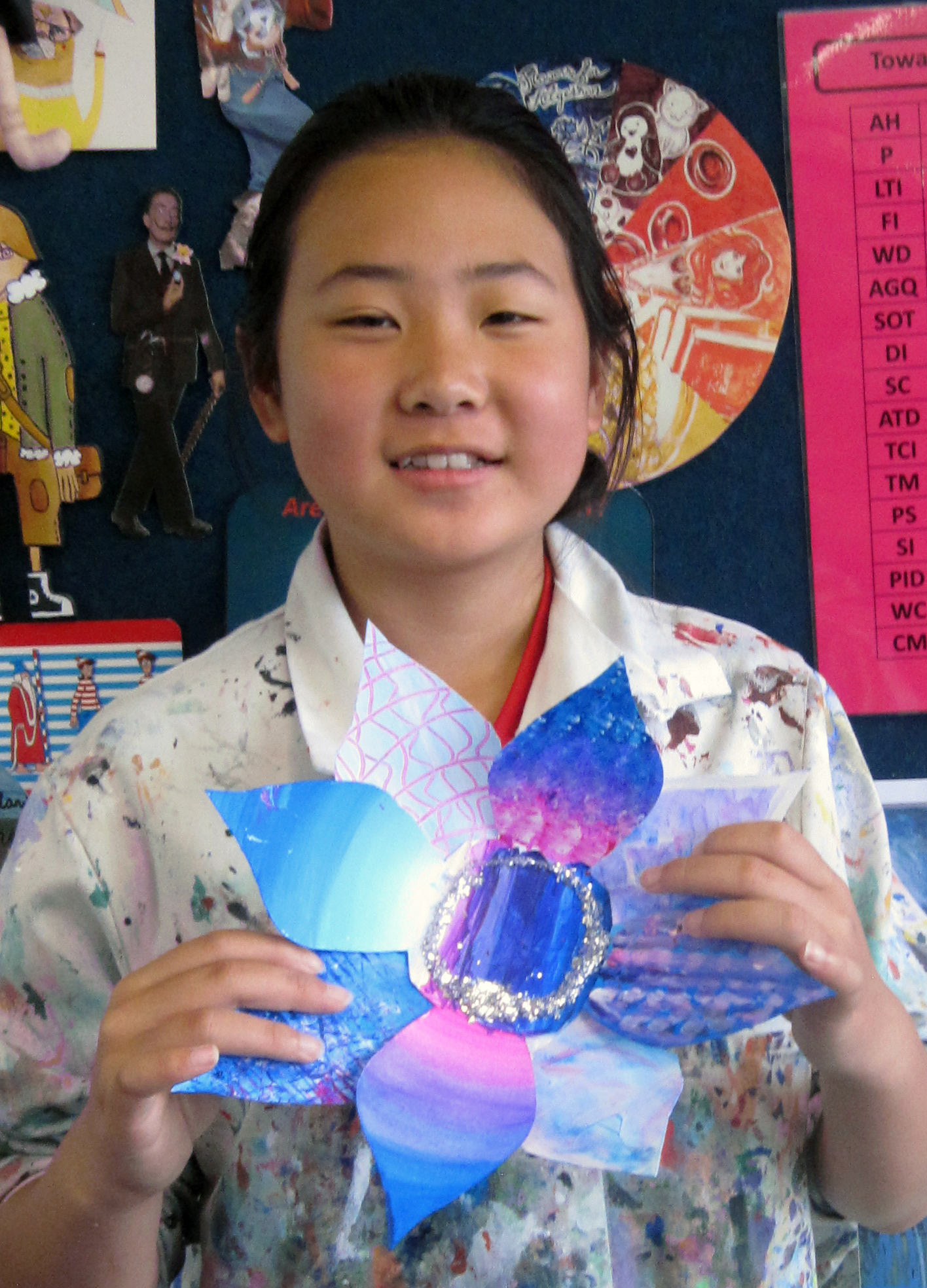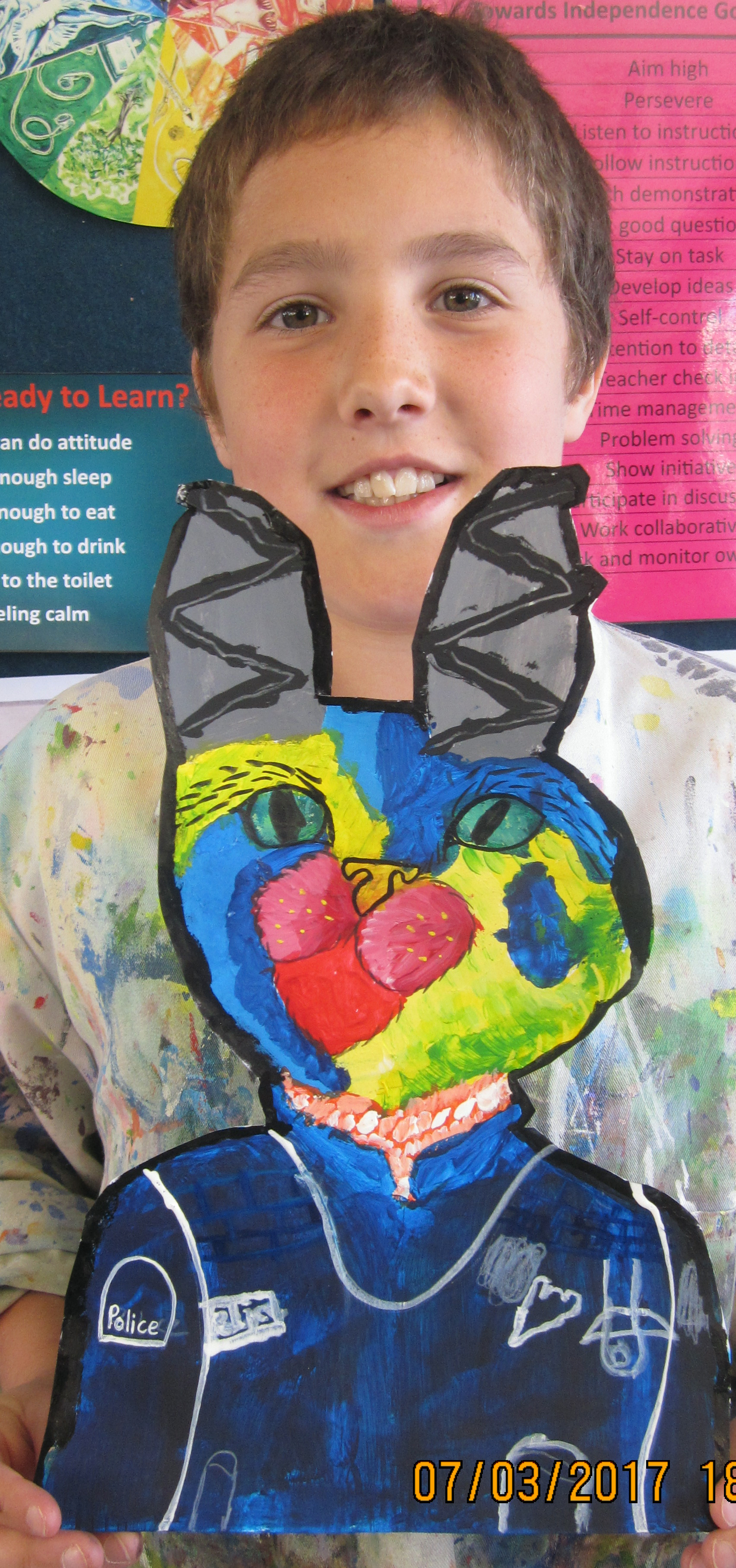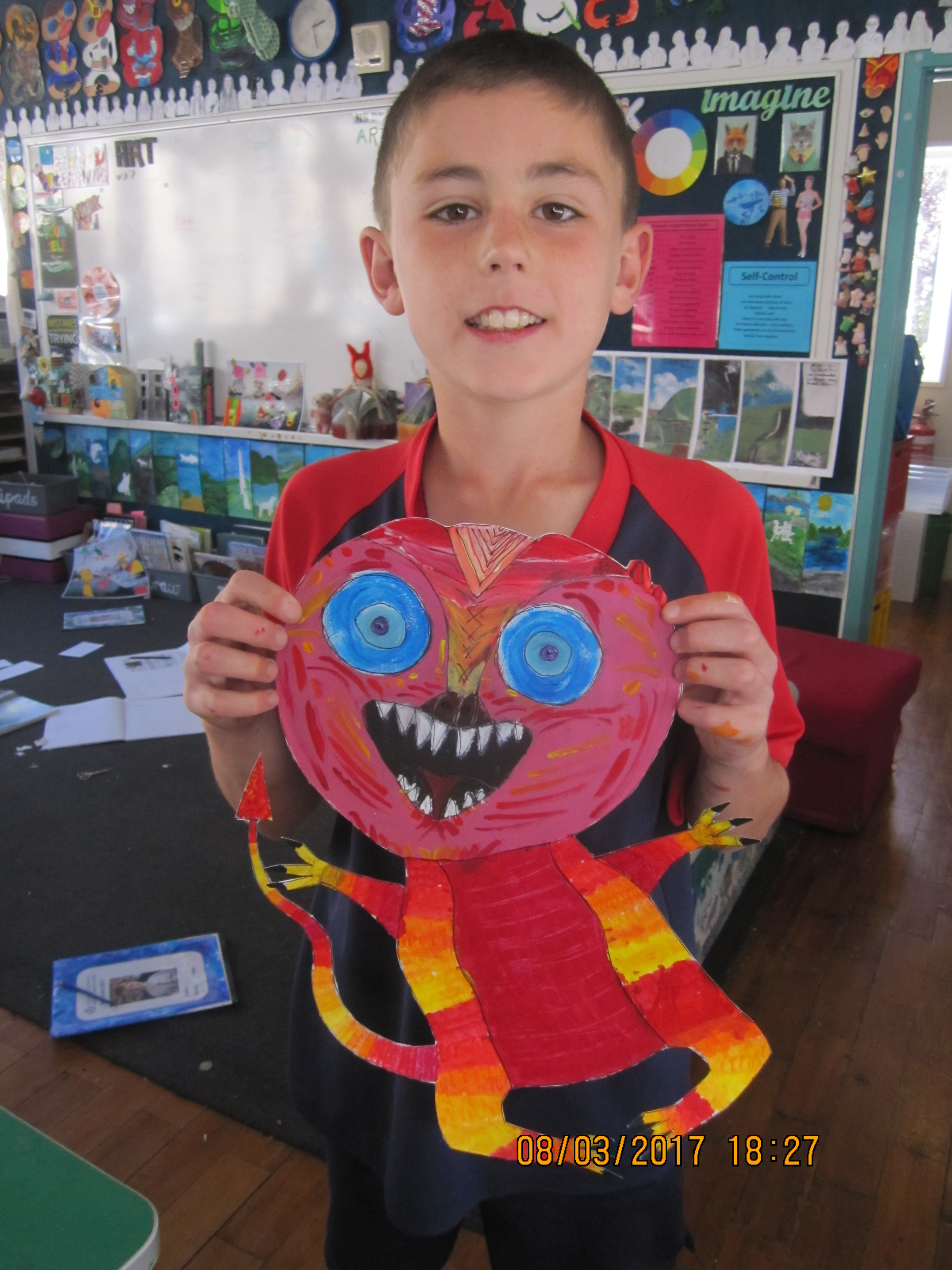 The Year Seven students have been initiated into art by learning a variety of painting techniques which is reflected in their painted flowers. All three group had different painting units: Contemporary Hei Tiki, Occupational Cats and Turangawaewae Panels inspiried by Colin McCahon
