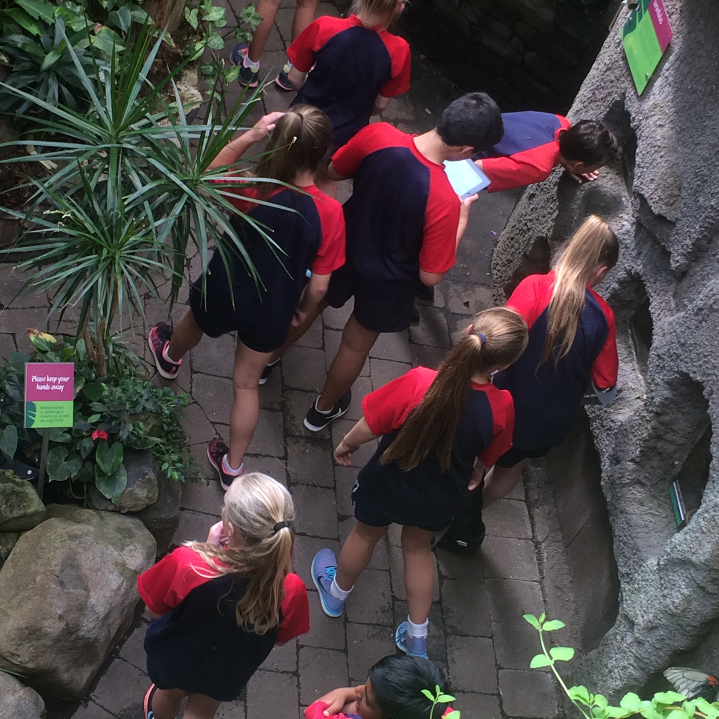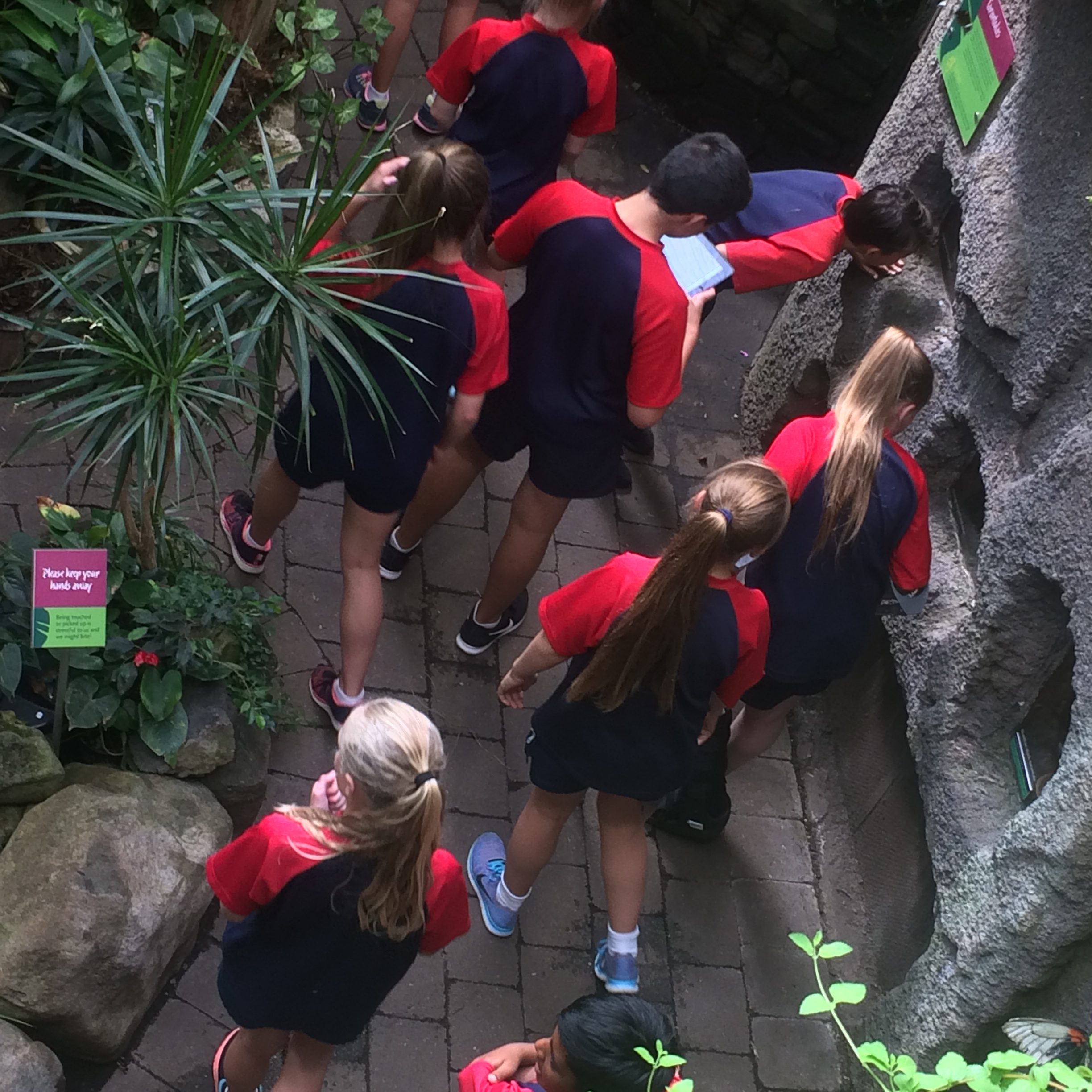 The second session was in the Tropical Rainforest ecosystem where we looked again at the habitats and conditions within the Rainforest and what animals and plants lived there. Each group was given a task to look at - Animal adaptations, Plant adaptations, Food webs and Relationships. We had the opportunity to explore, ask questions and investigate different areas and observe the butterflies.