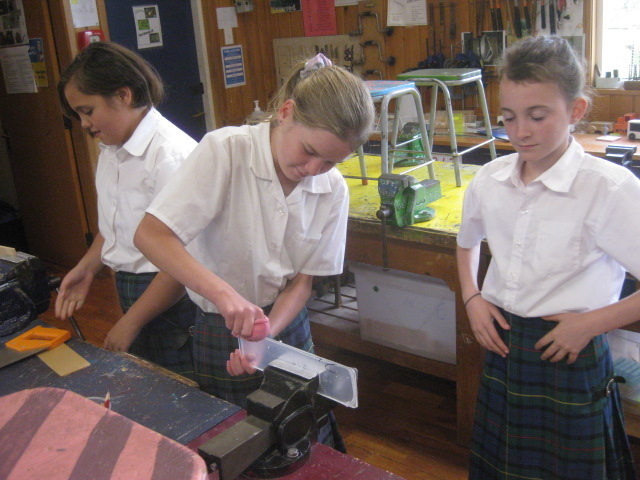 Year 8 students are building model waka. Year 7 students are working with plastic.