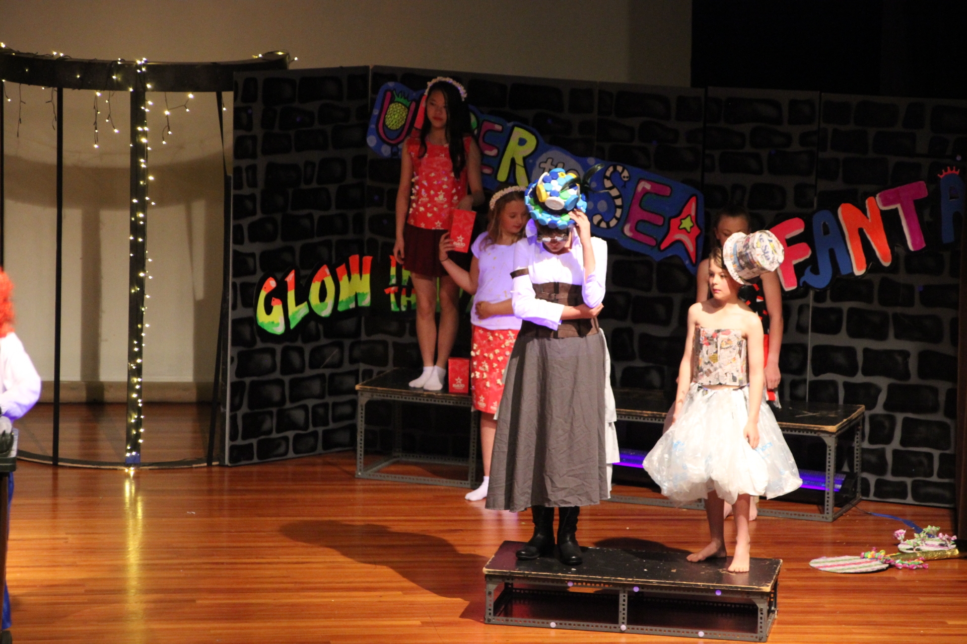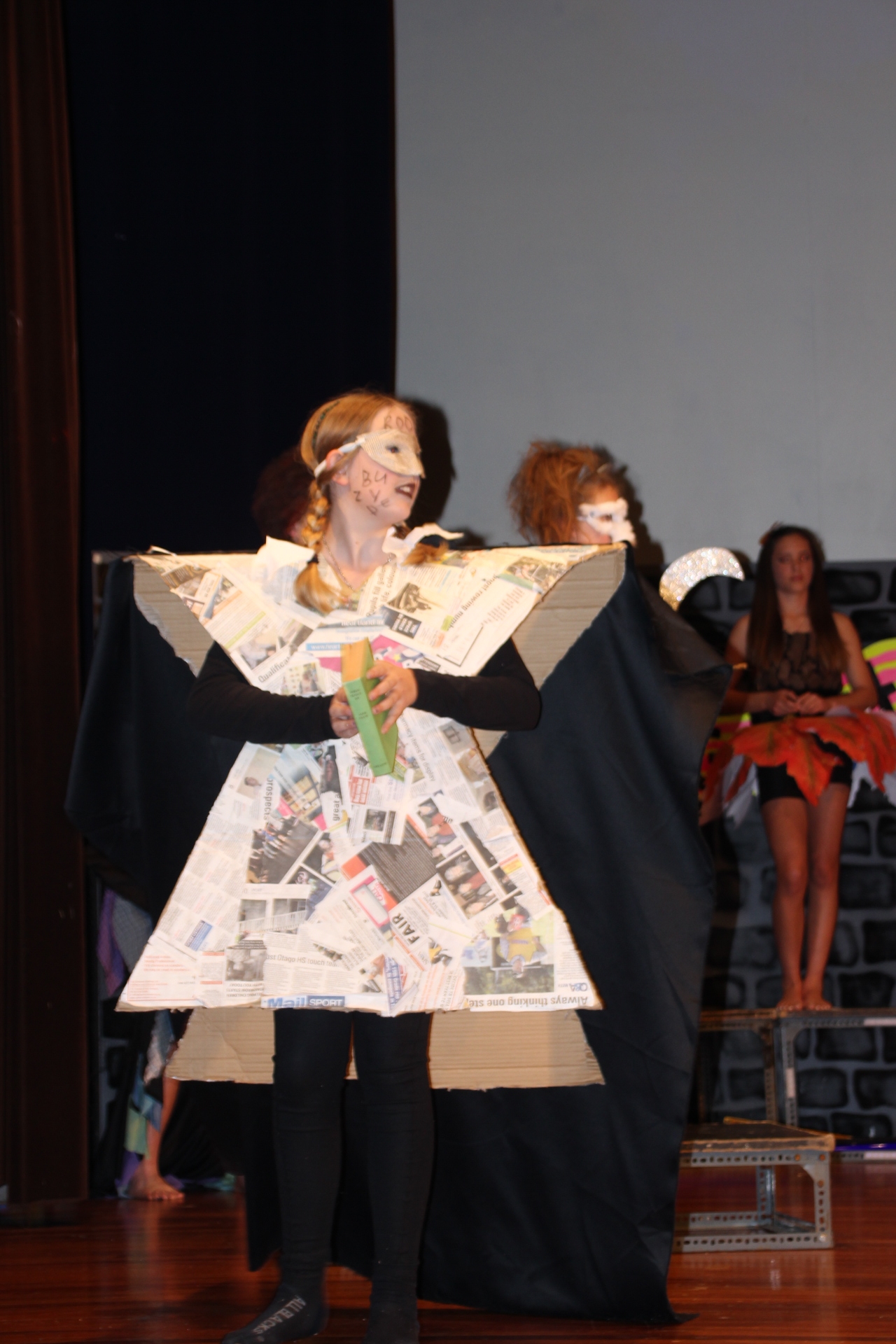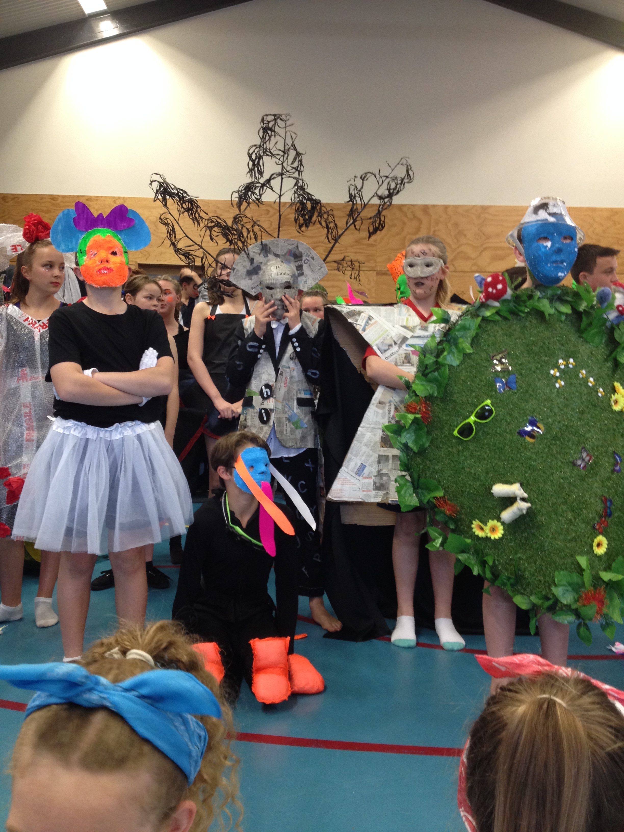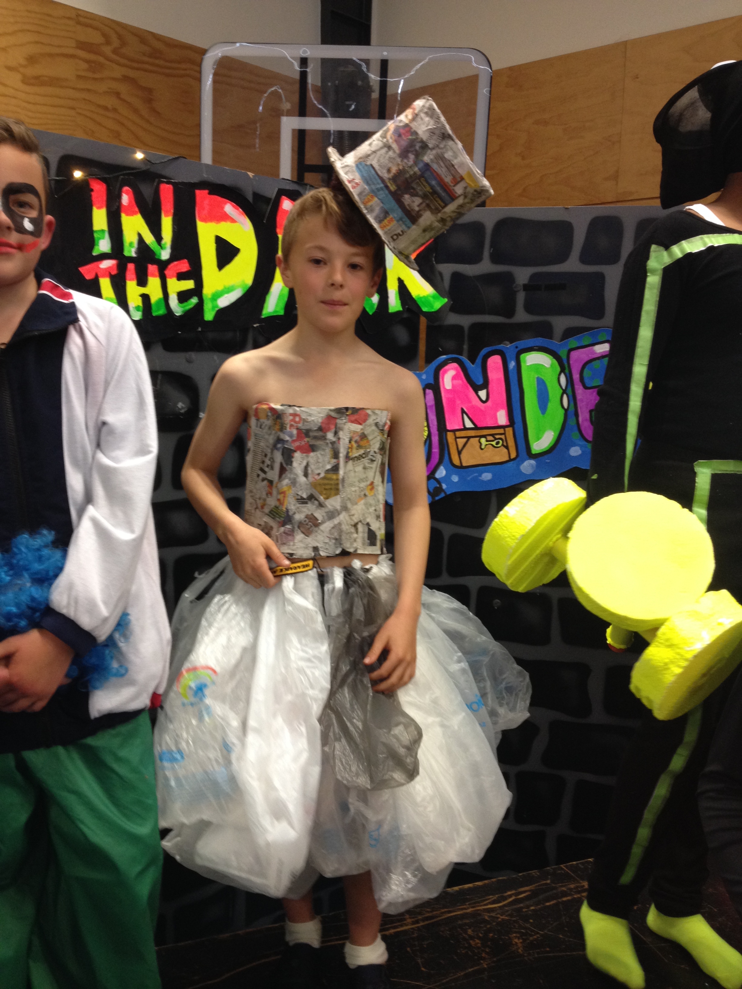 On Wednesday, week 2 of term 4, over 150 students, including a handful from Room 5, left Balmacewen and went down to Otago Boys to perform none other than the Balmacewen Wearable Arts Show™. We had our four hip hoppers, Amelia, Cherrie, Katelyn and Sophie. We then had Matthew Bolter modeling his recycled dress, Liam and Lucy as children of the book and Zoey Brown showing off her eighties style. Everyone had put a lot of effort into their designs and there were some truly amazing outfits.