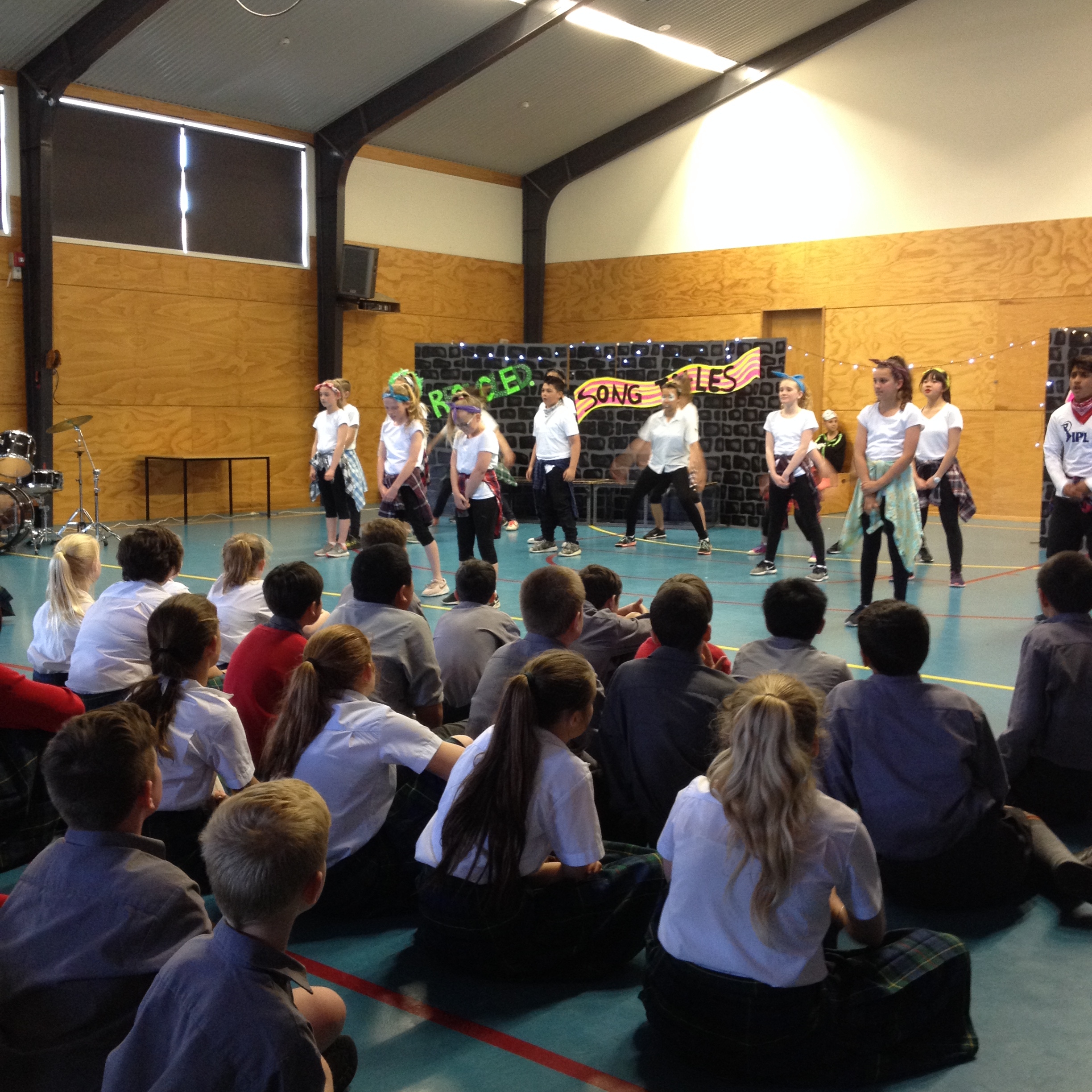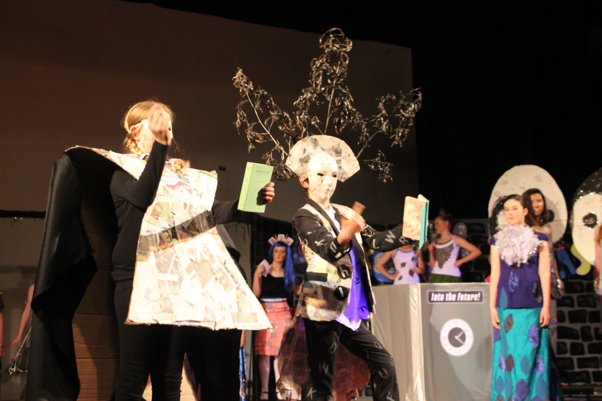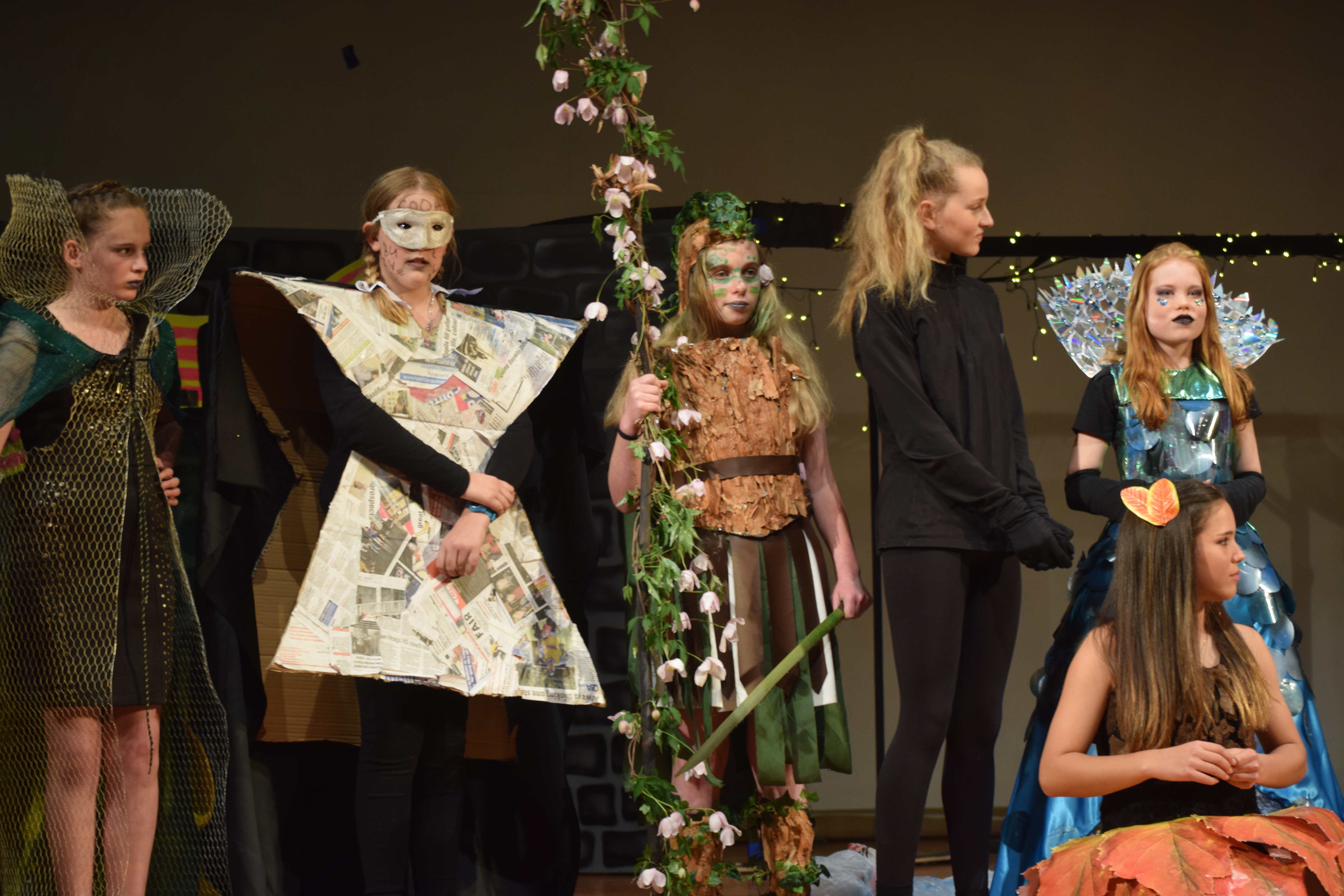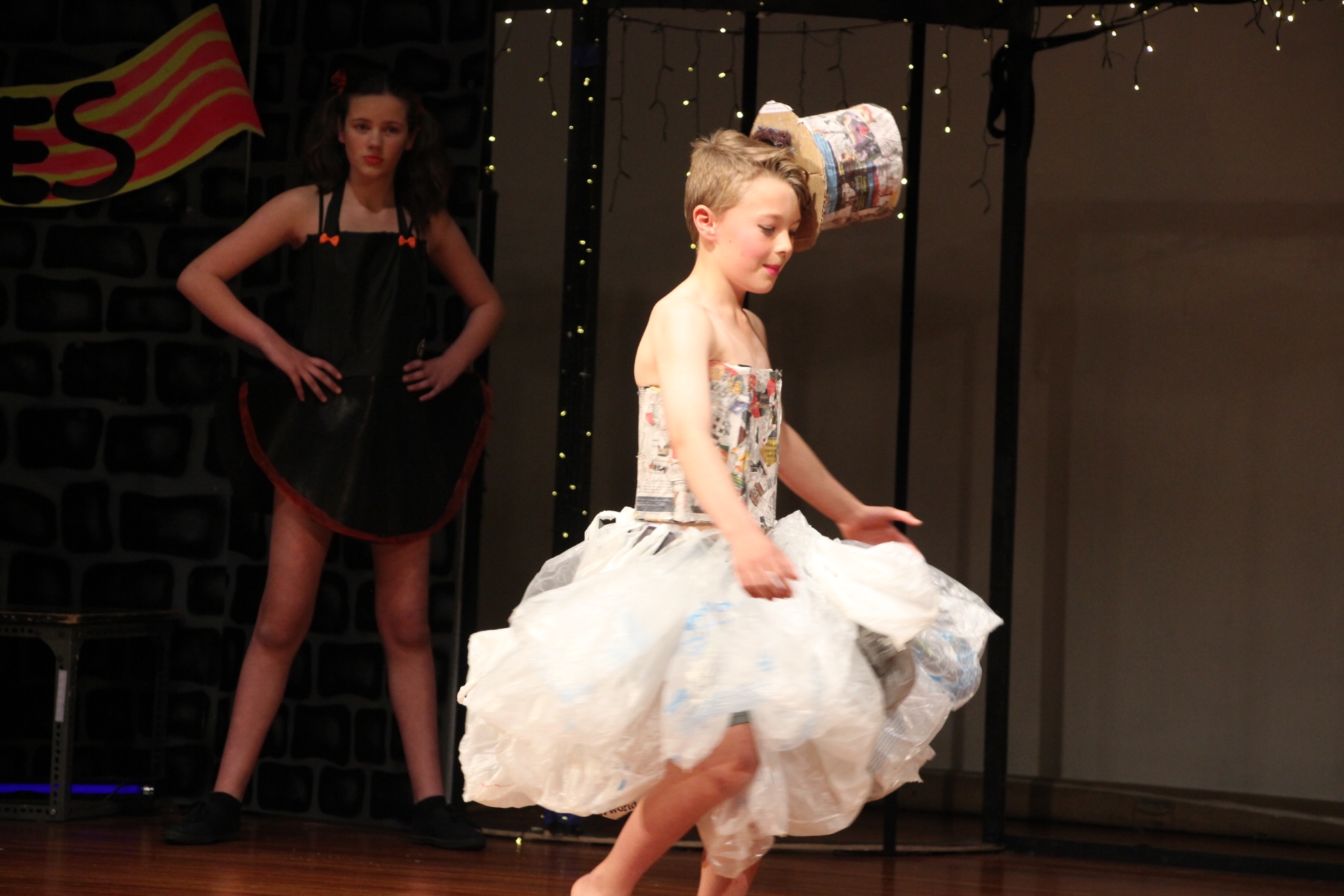 On Wednesday, week 2 of term 4, over 150 students, including a handful from Room 5, left Balmacewen and went down to Otago Boys to perform none other than the Balmacewen Wearable Arts Show™. We had our four hip hoppers, Amelia, Cherrie, Katelyn and Sophie. We then had Matthew Bolter modeling his recycled dress, Liam and Lucy as children of the book and Zoey Brown showing off her eighties style. Everyone had put a lot of effort into their designs and there were some truly amazing outfits.