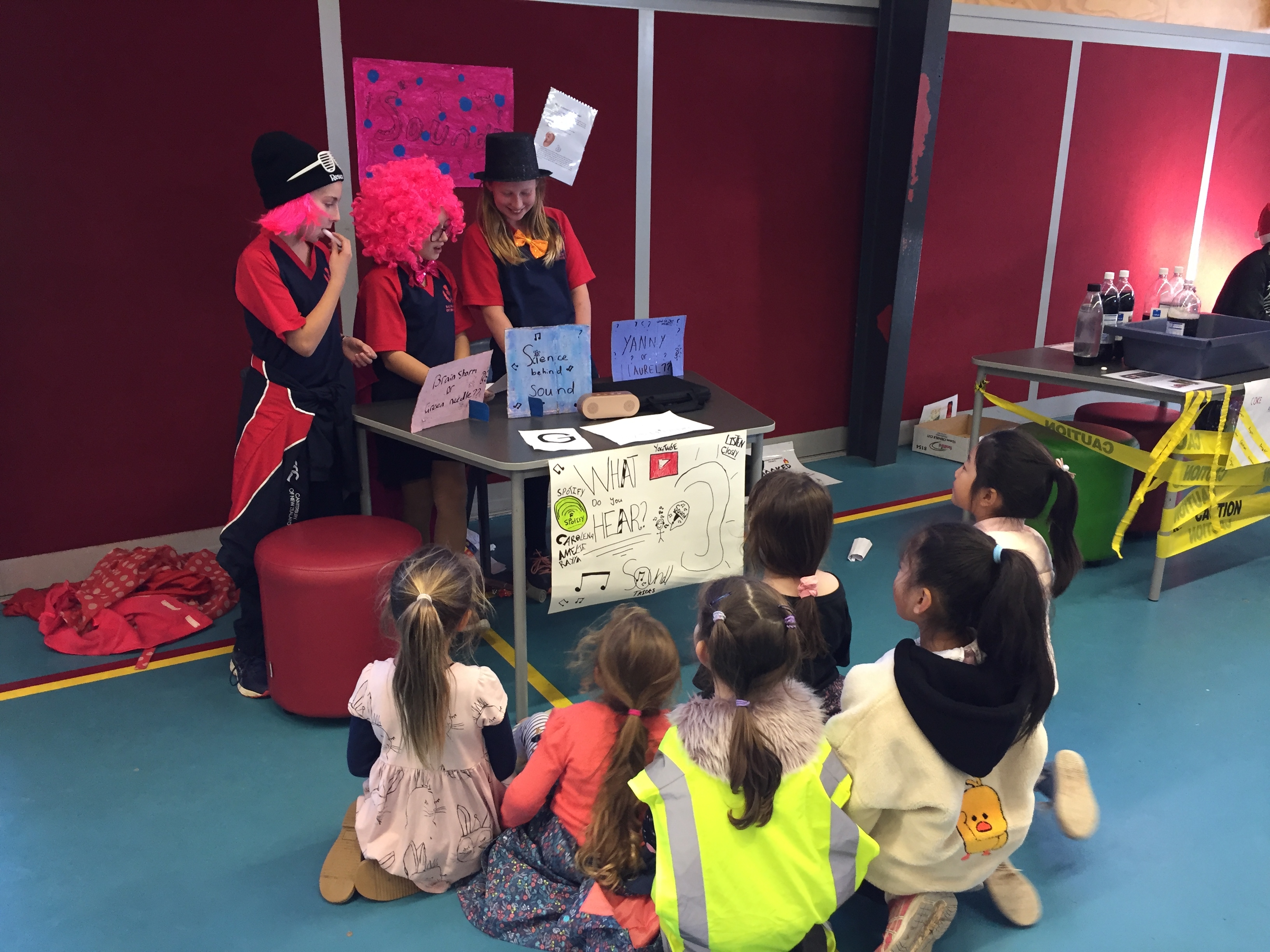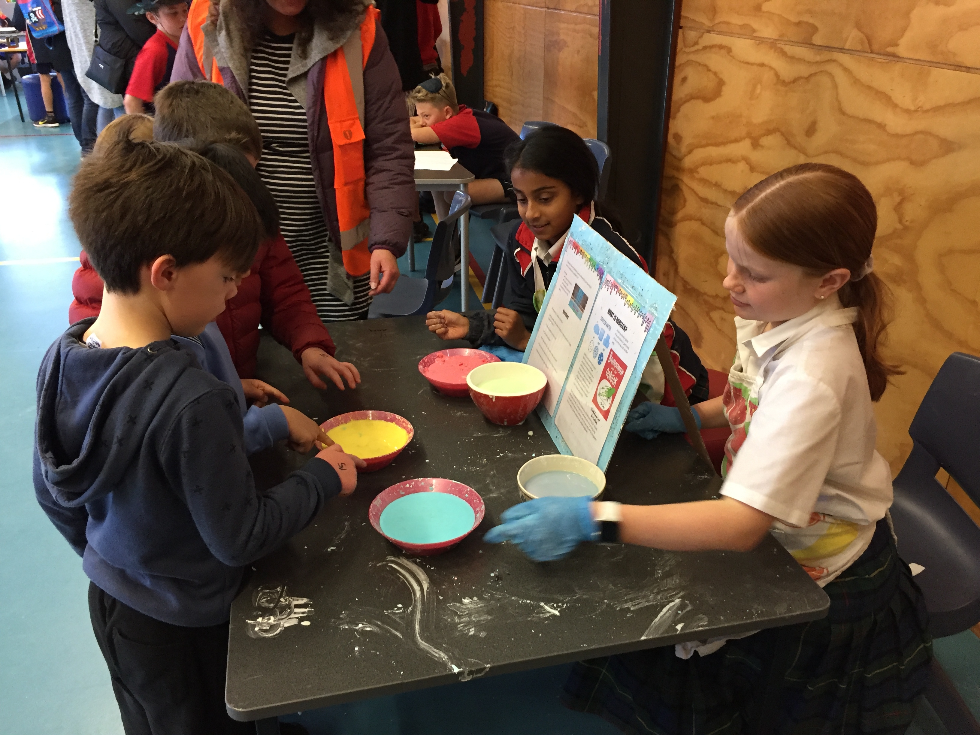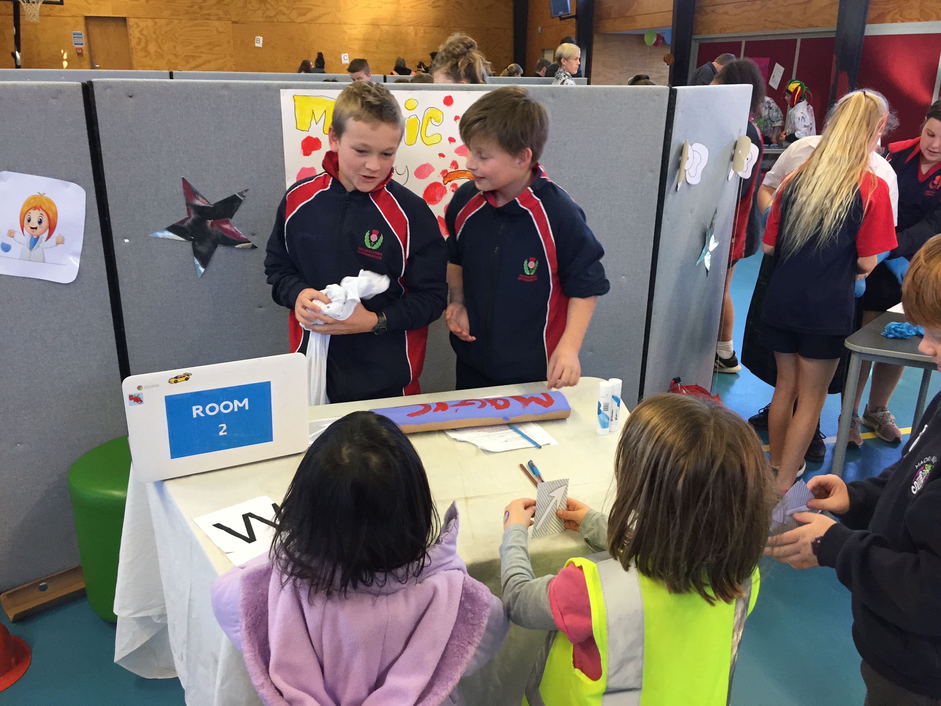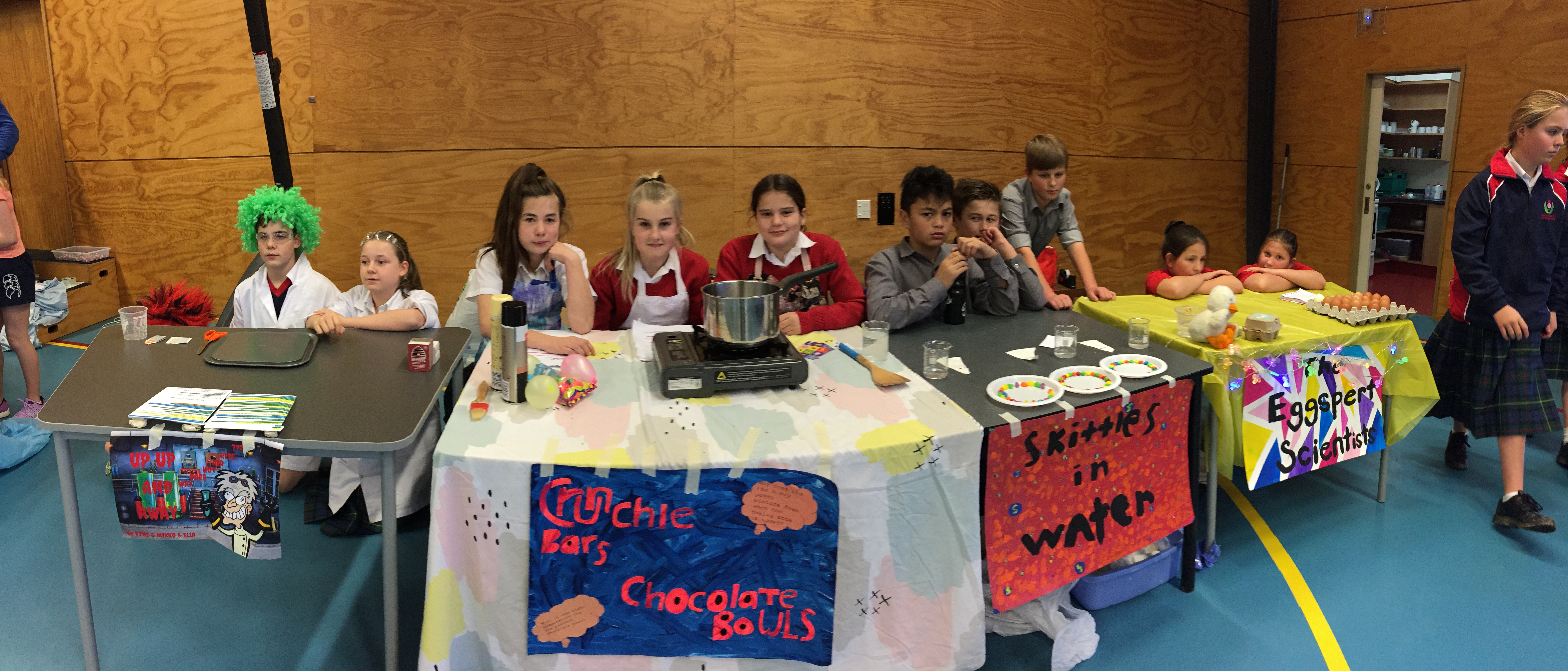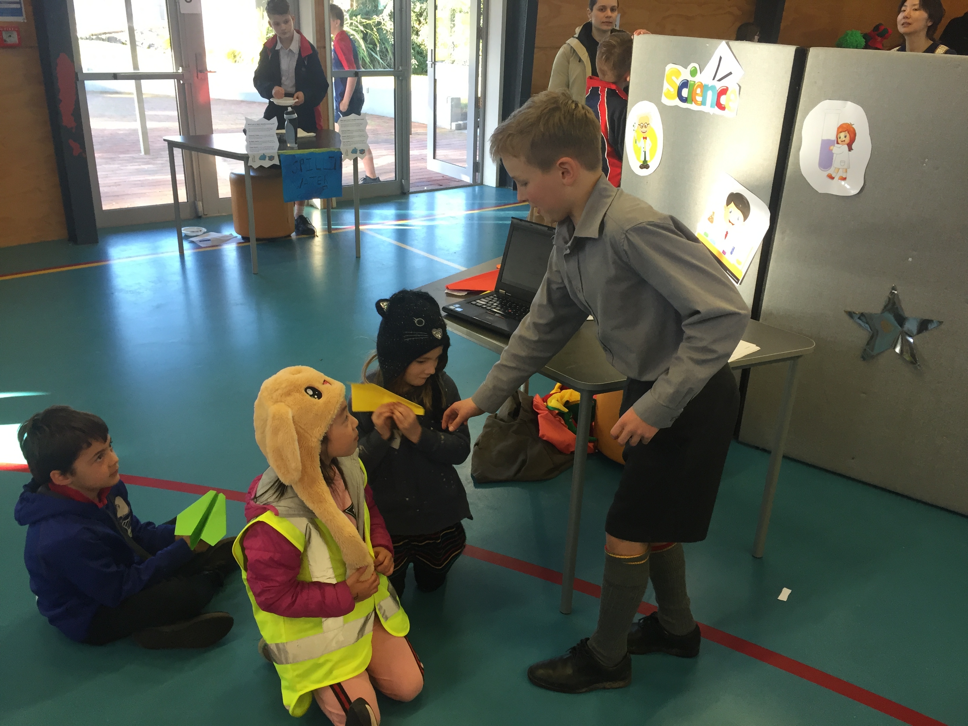 Early in the term we visited the Junior Syndicates at Wakari, Maori Hill and Kaikorai Schools. We interviewed the students about science. About what they thought a scientist was and what they liked about science. With these findings our Year 7 students set to work to design a show case of science.