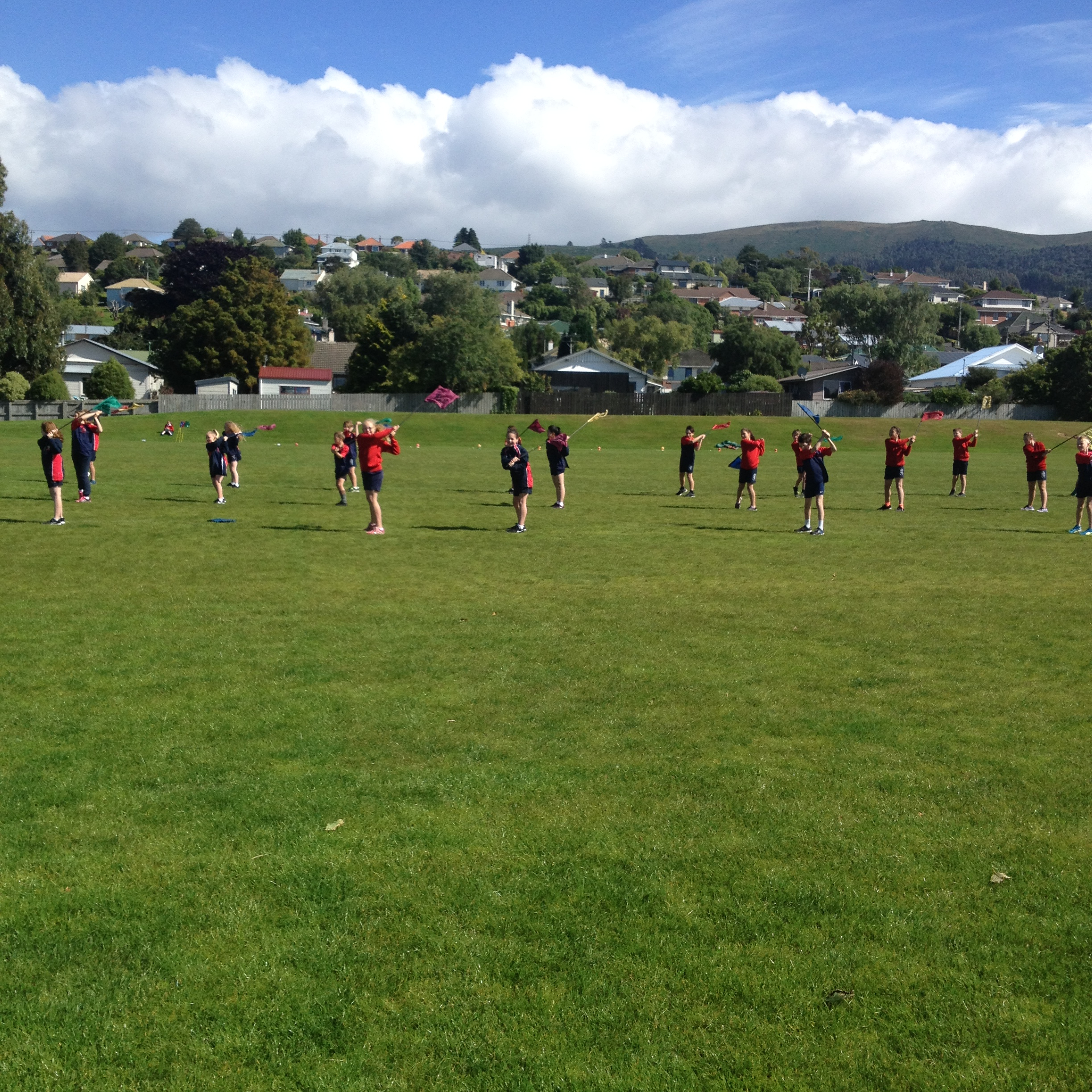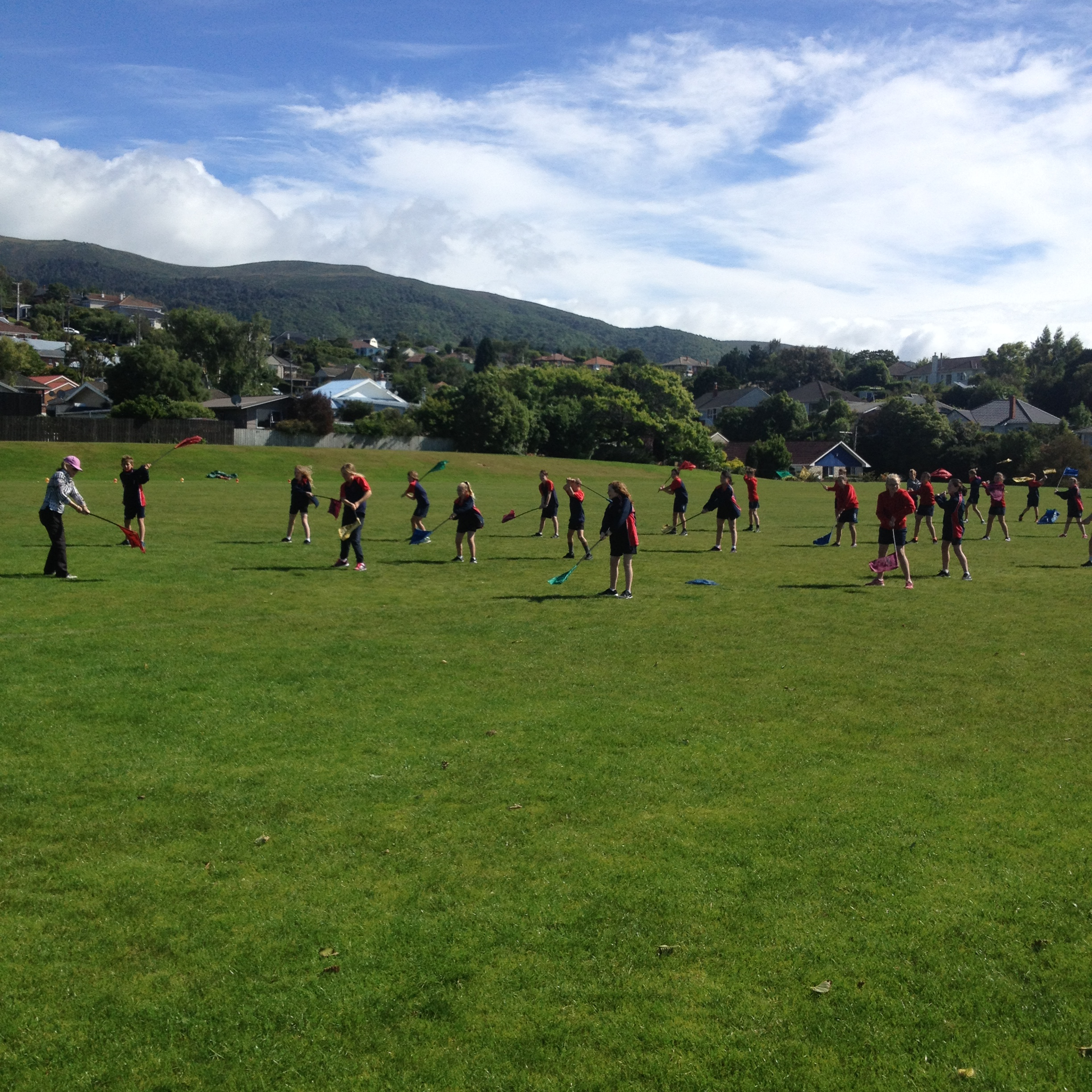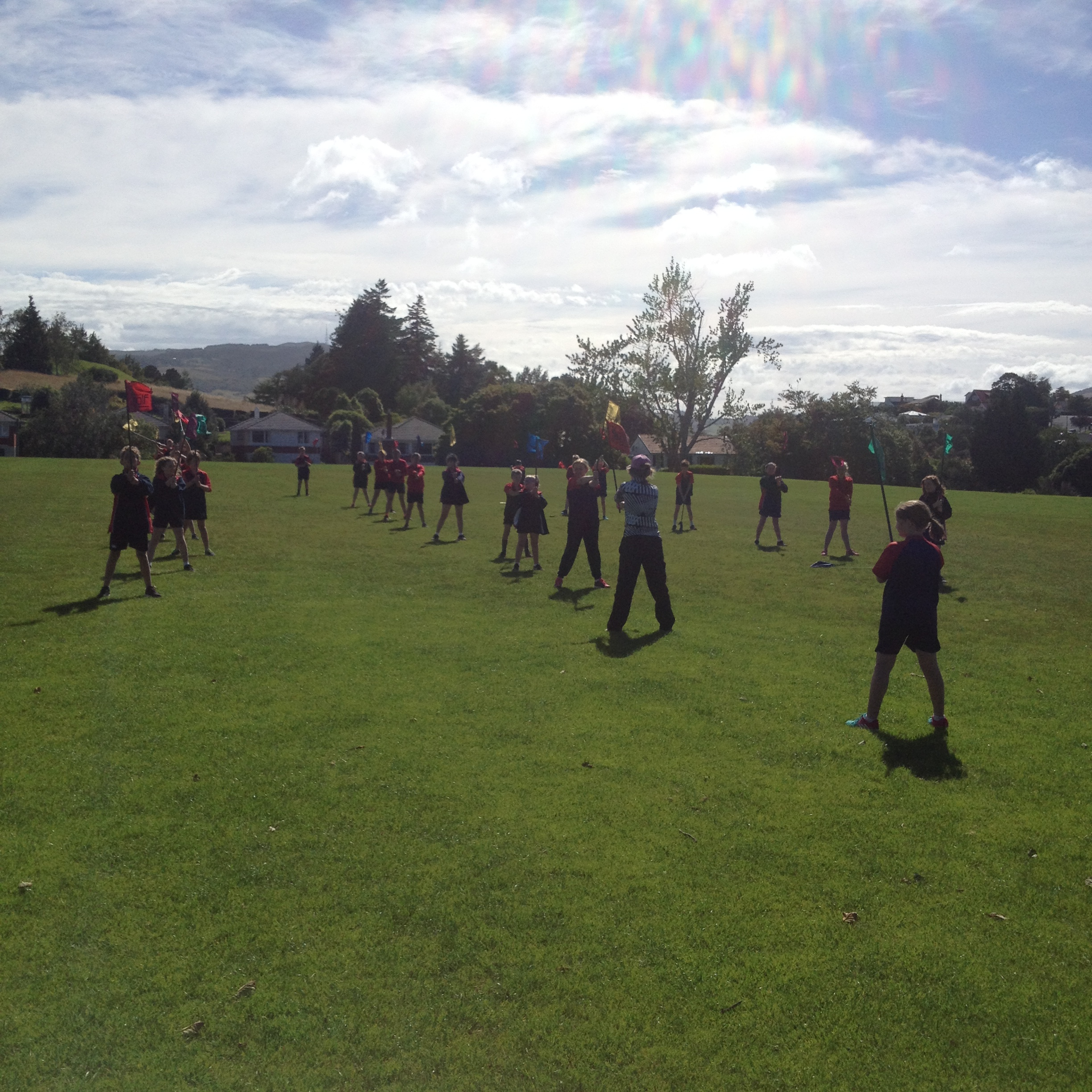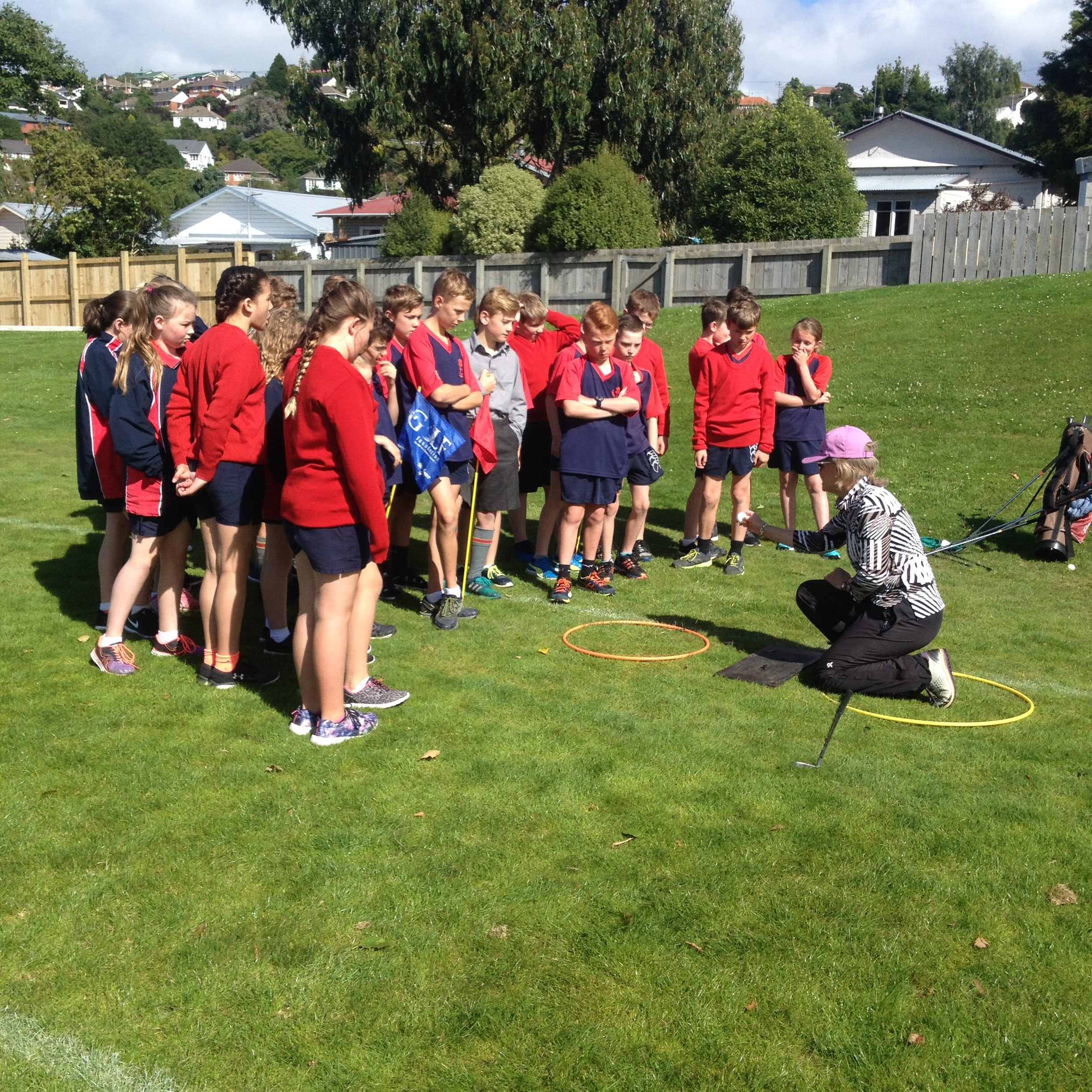 Today Room 5 had Kiwi Golf with Melanie Harper from Balmacewen Golf Club. We learnt how to hit a golf ball. We also played a game where we had to hit the ball as far as we could toward our team-mates in the distance. Then the person in front would run and get the ball and the person that hit the ball would also run to the next spot.