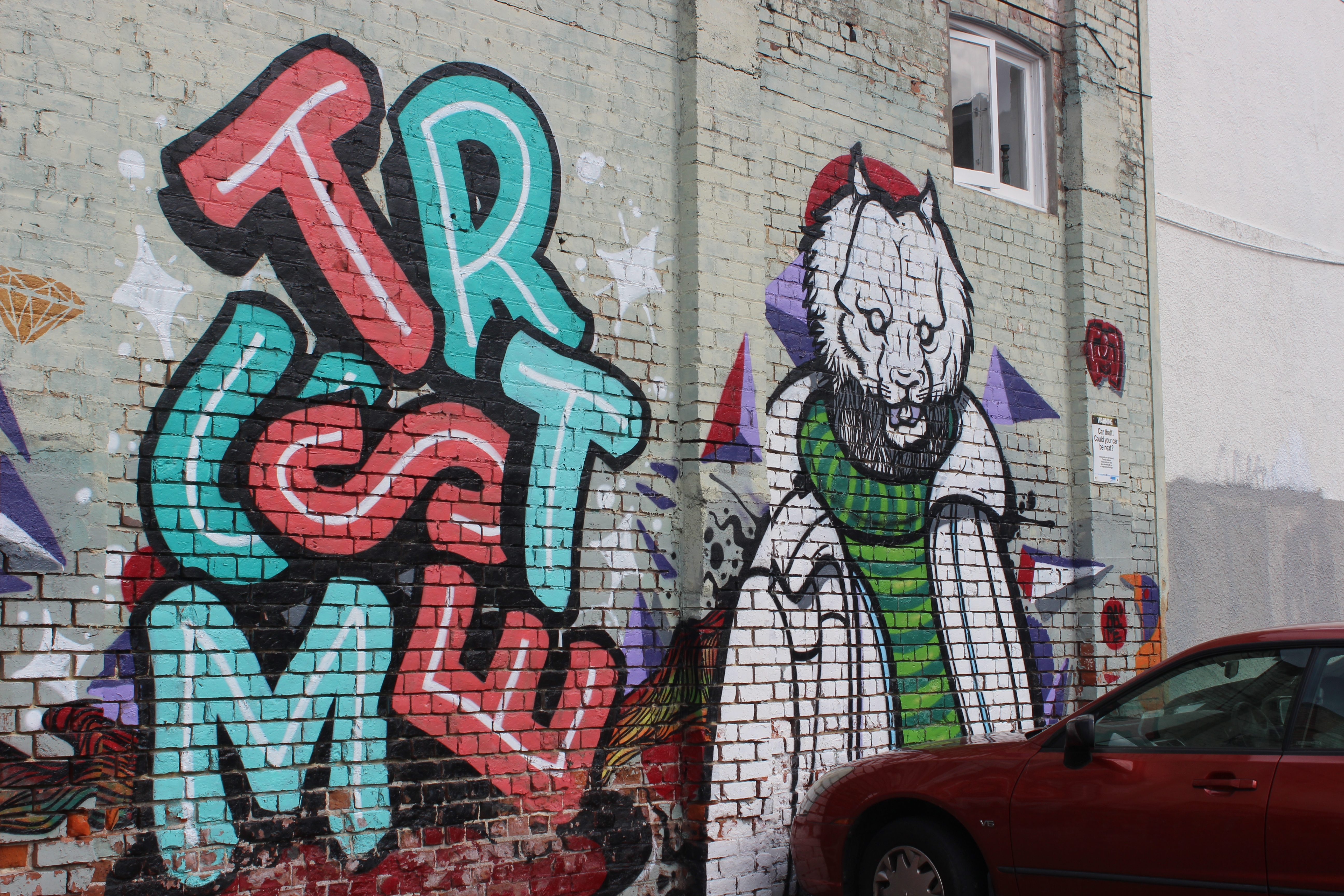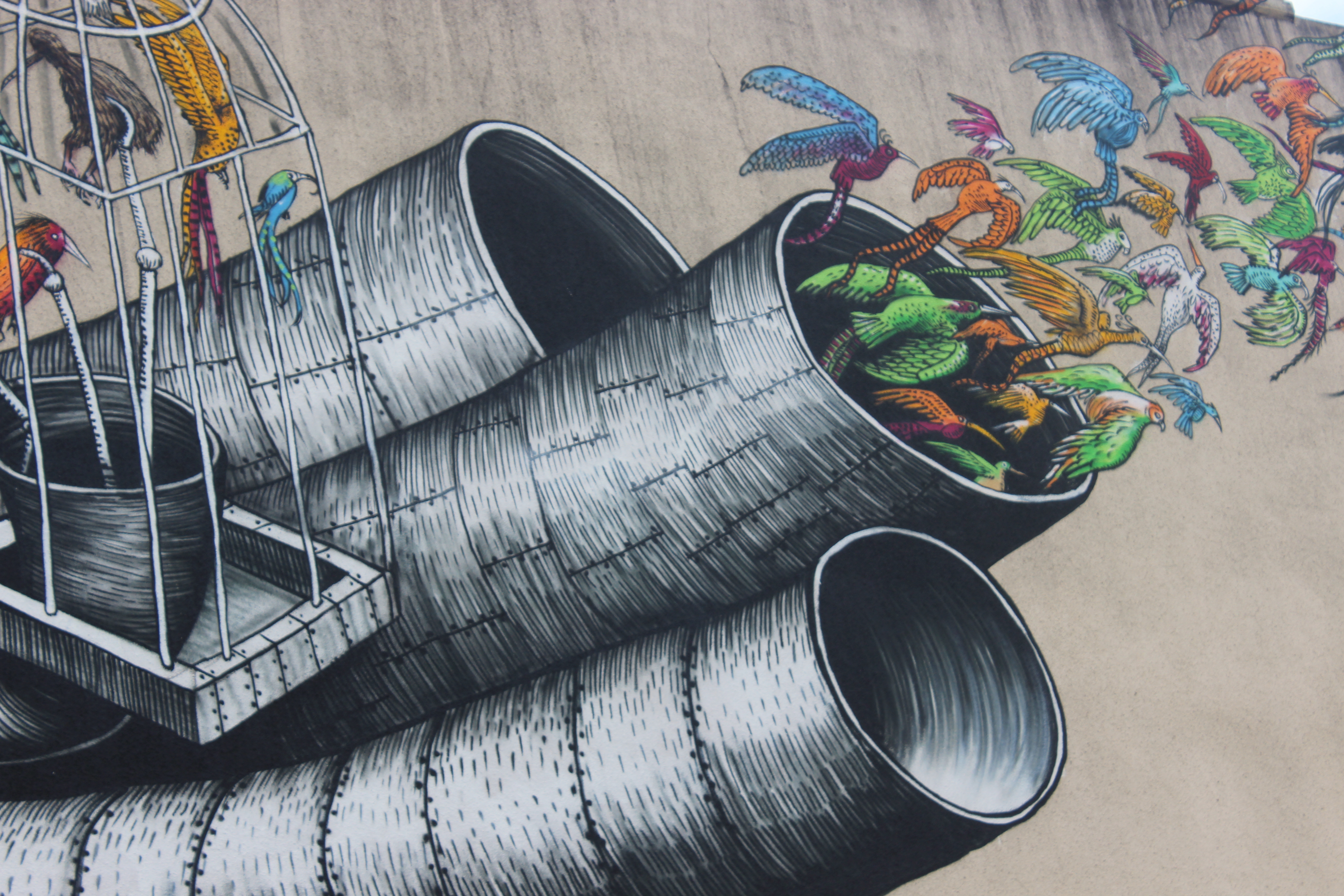 I chose this piece because I really like the contrast of colour, the messages that came up in my mind and also just where it is placed. The messages that came up in my mind consisted of things like freedom. I also love the way the artist shades and paints his pieces.