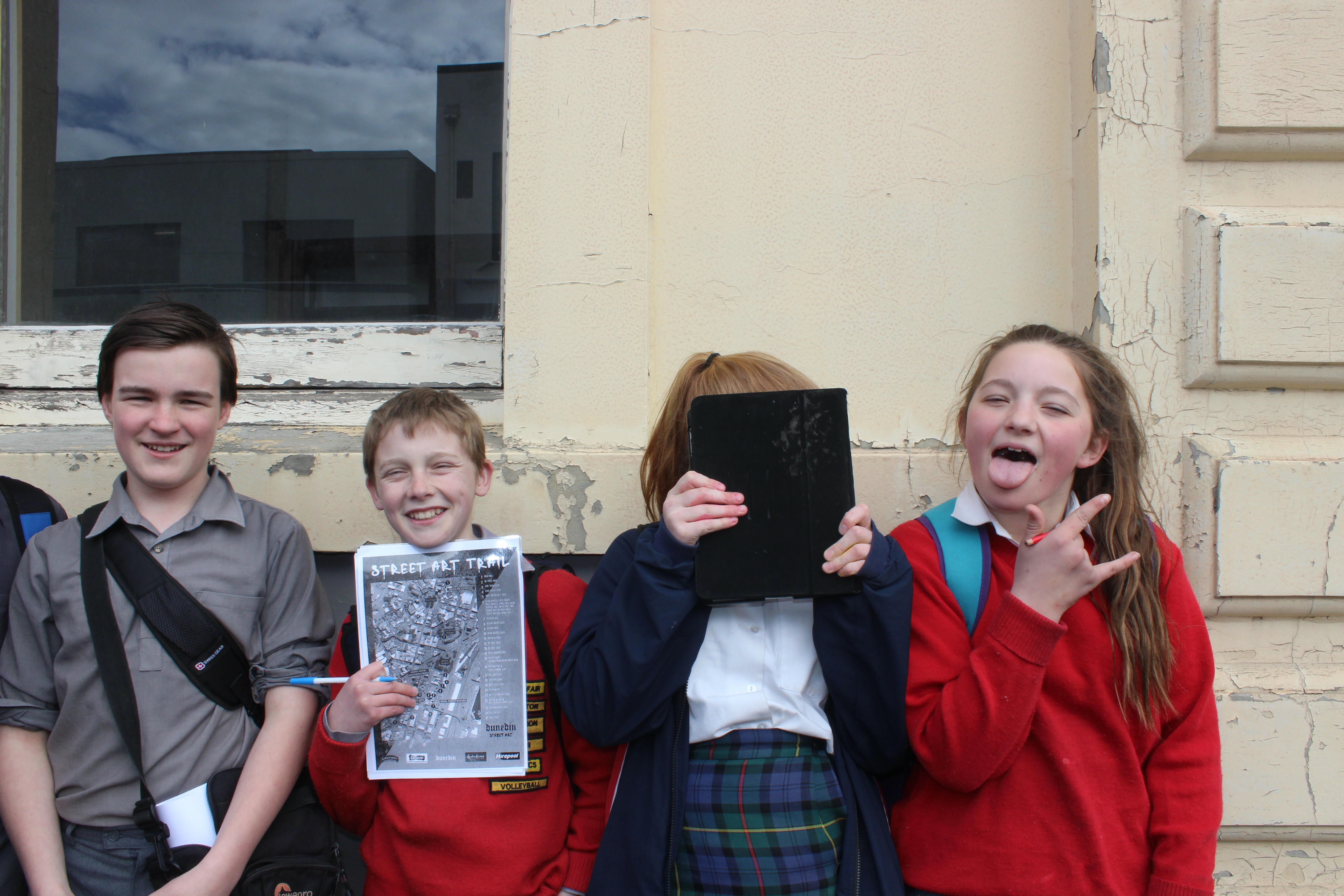 On a beautiful Spring afternoon, Room 14 headed off to town to follow the Dunedin Street Art trail for an up close look at the diverse range of street art hidden in and around buildings and alleyways in our inner city.