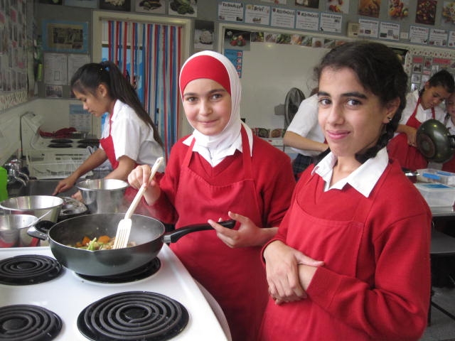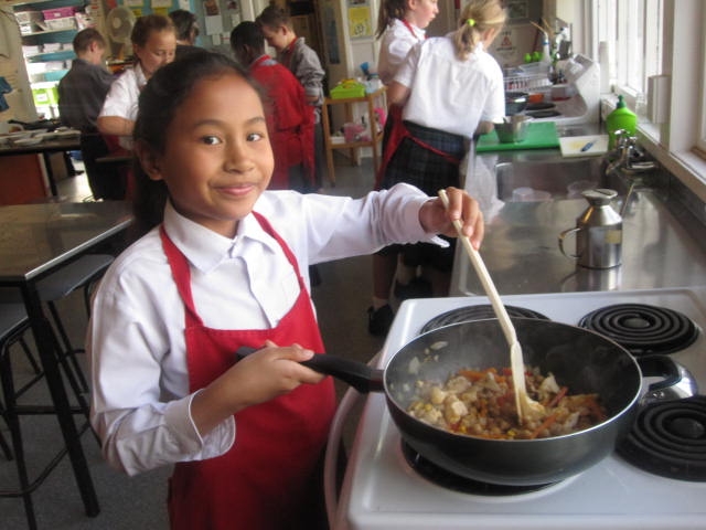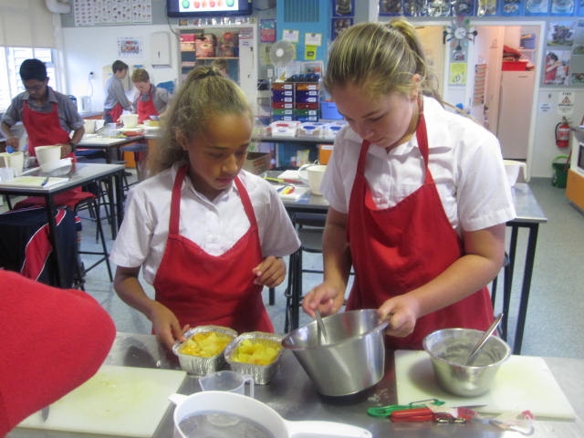 The third group of Y7's are now having a go at cooking. We started with Smoothies, then moved on to scones, pizza, muffins, stir-fry and fruit crumble. With the cooler weather we have varied our fruits and vegetables and are talking about seasonal impacts on our diets. The muffins were an instant hit with them all.